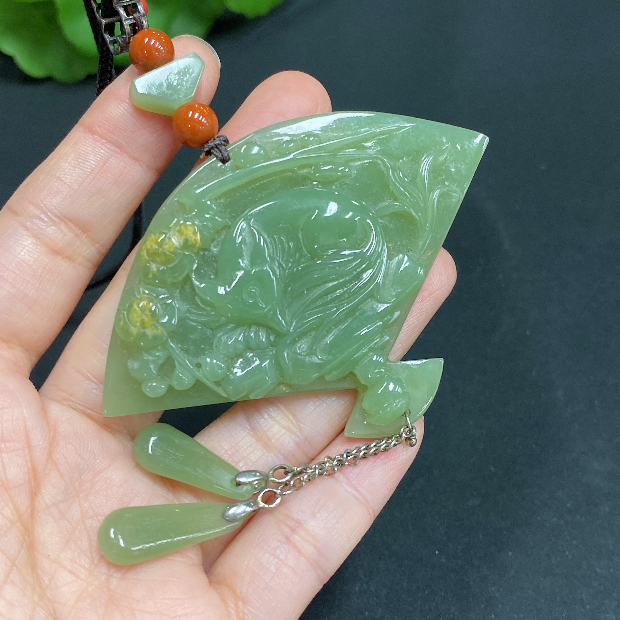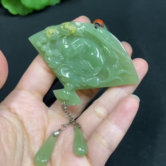 Hetian Jade Pendant, Immortal Fox, Non-Gold Inlaid