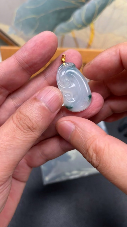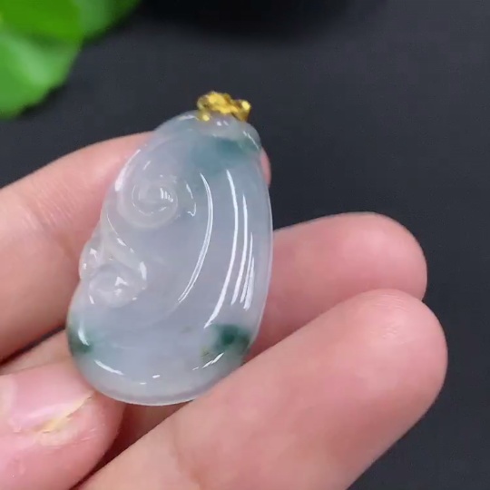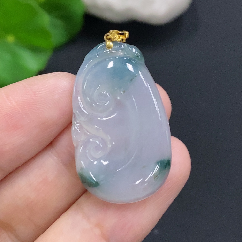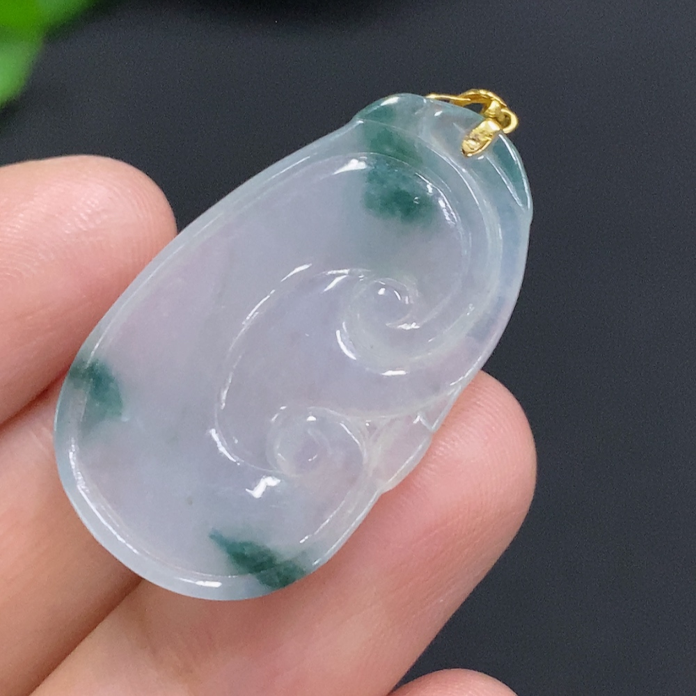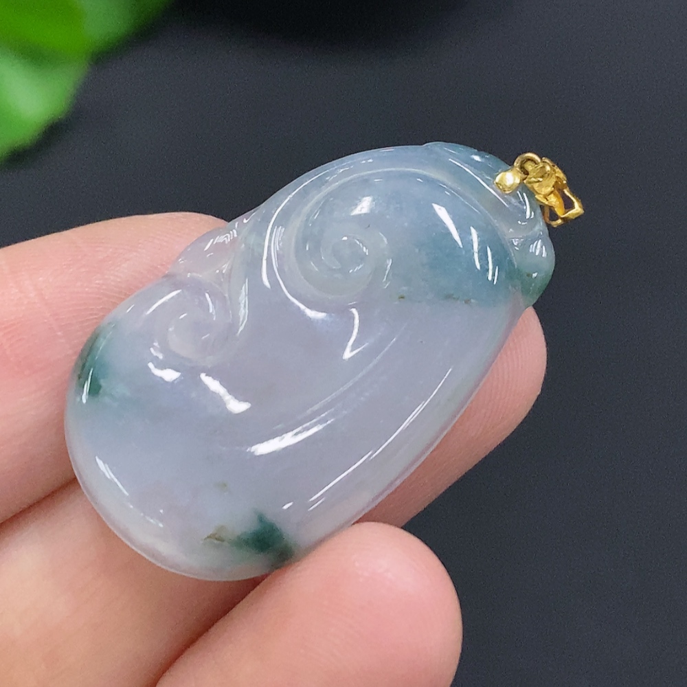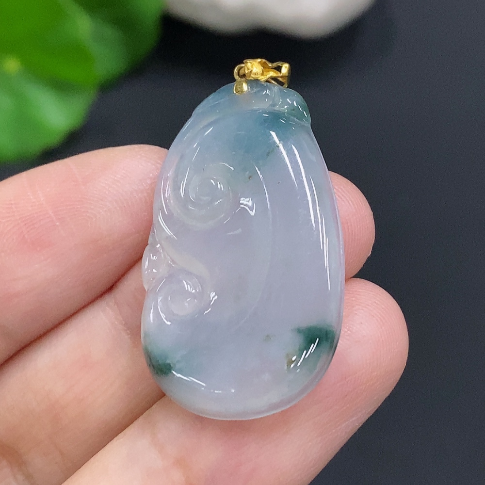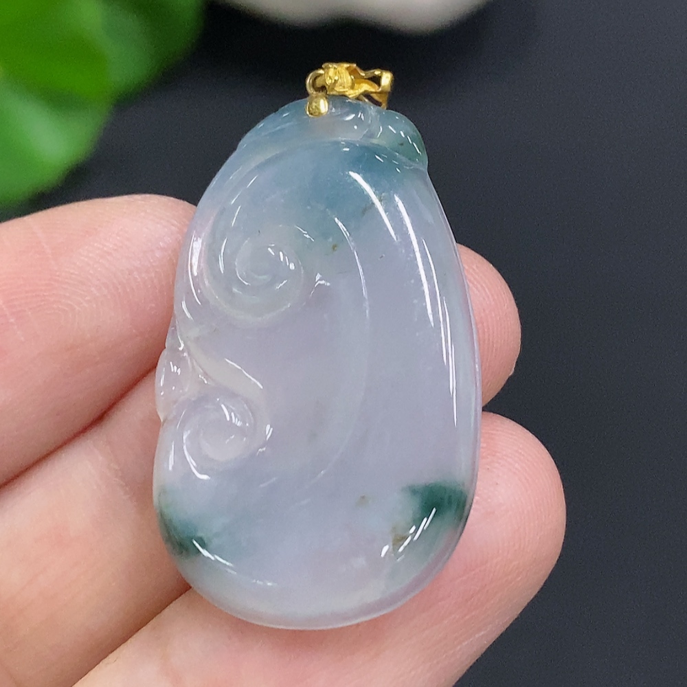 Jadeite Ruyi Pendant with 18K Gold Bezel, Total Weight Approx. 4.2g