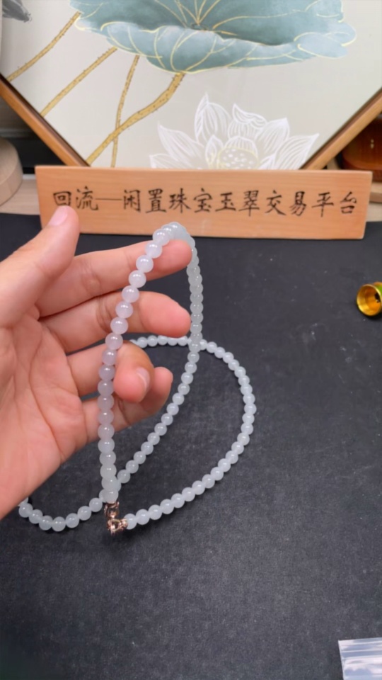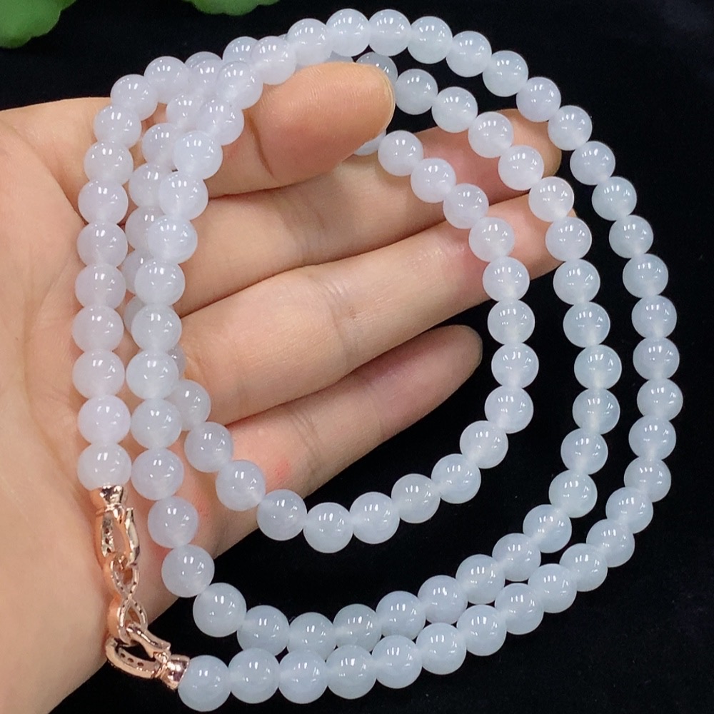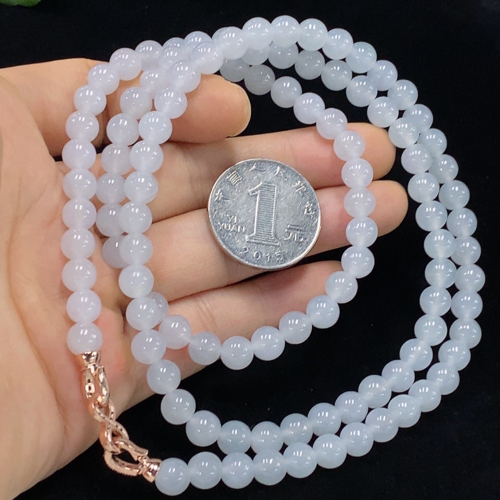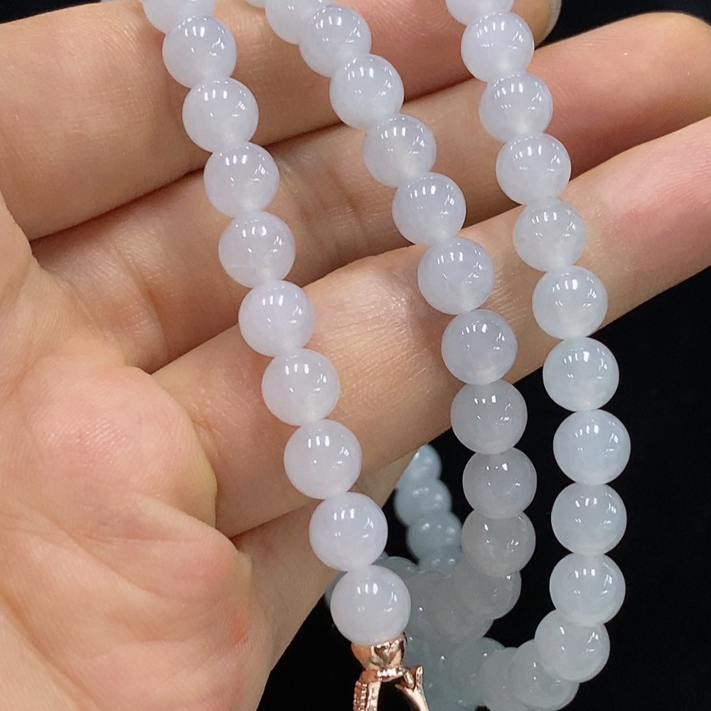 Jadeite Bead Necklace approximately 6.6mm, total weight about 58.75 grams, non-gold