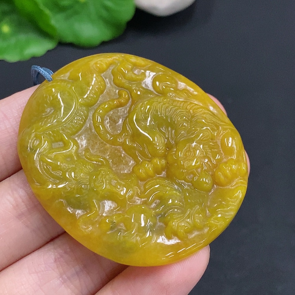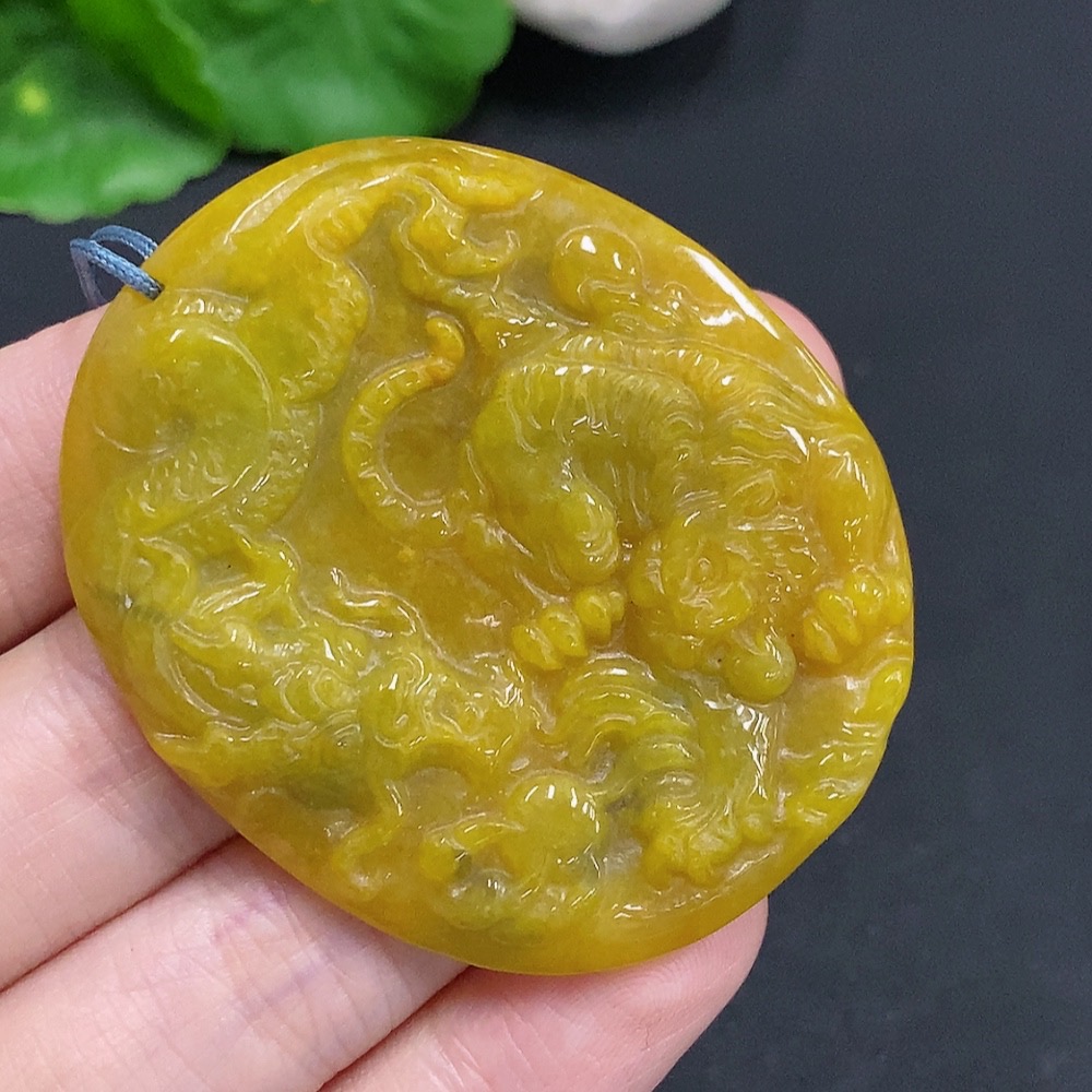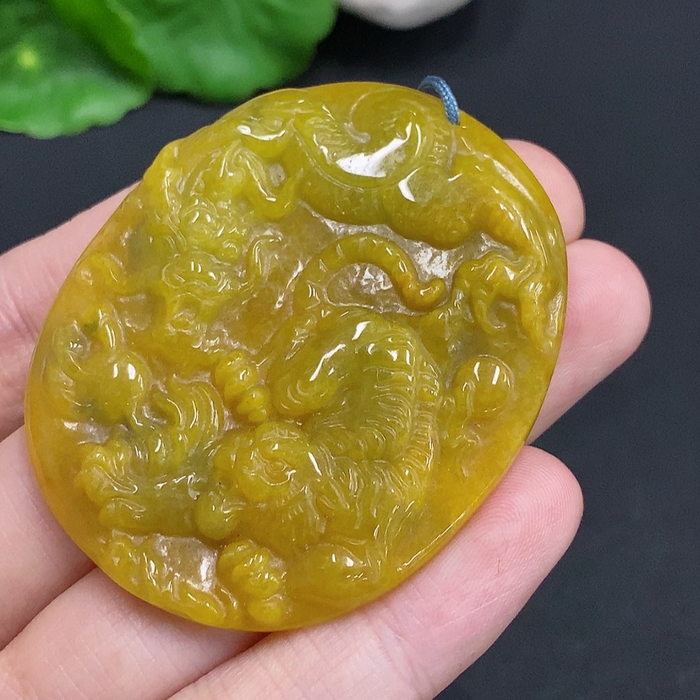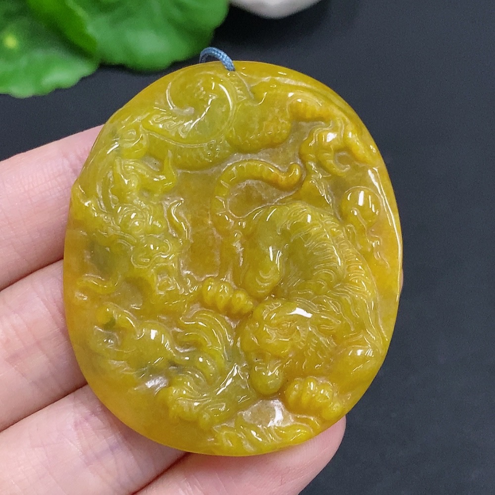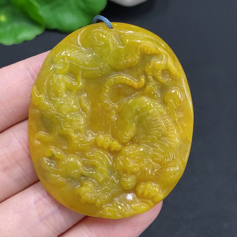 Jadeite Soaring Dragon and Leaping Tiger Pendant