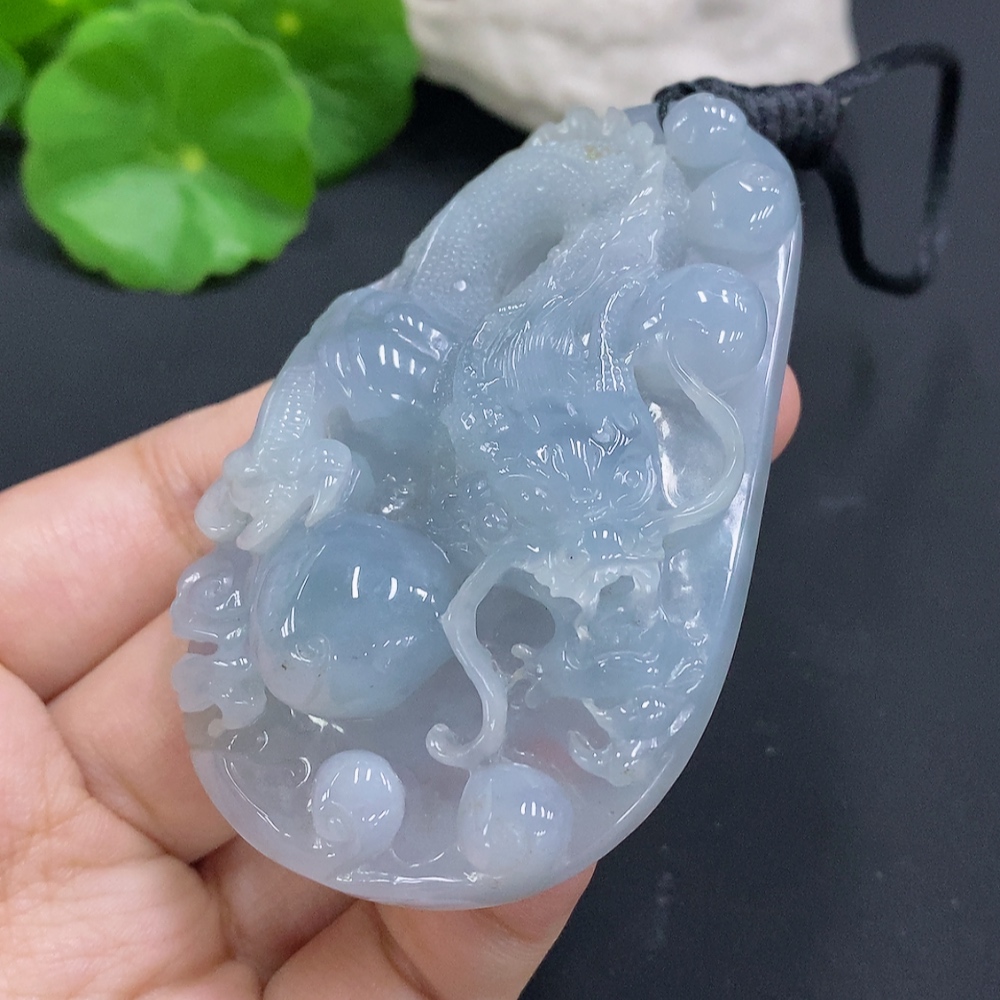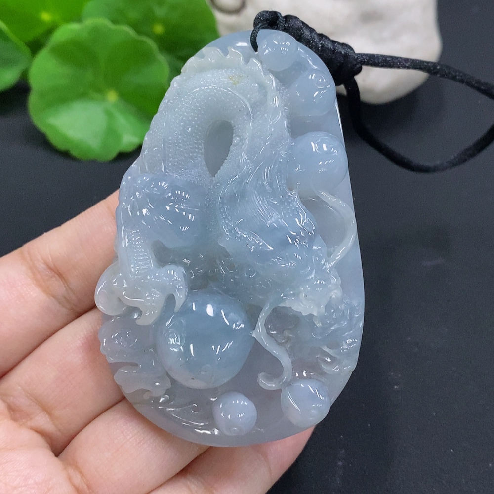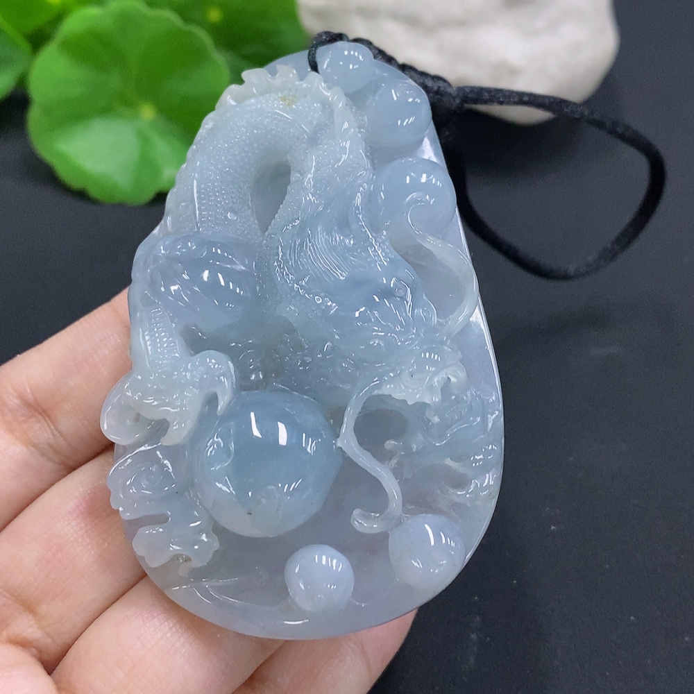 Jadeite Dragon Pendant with Cord, Total Weight Approx. 84.2g