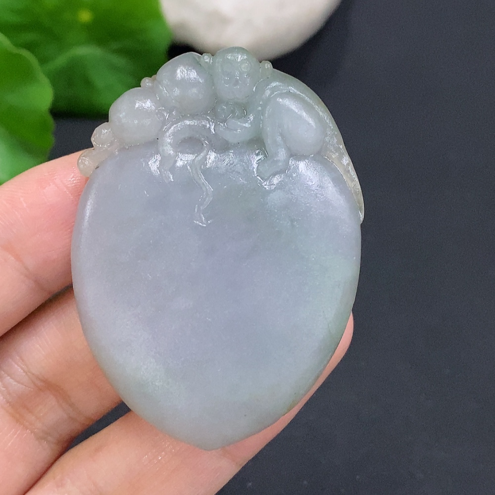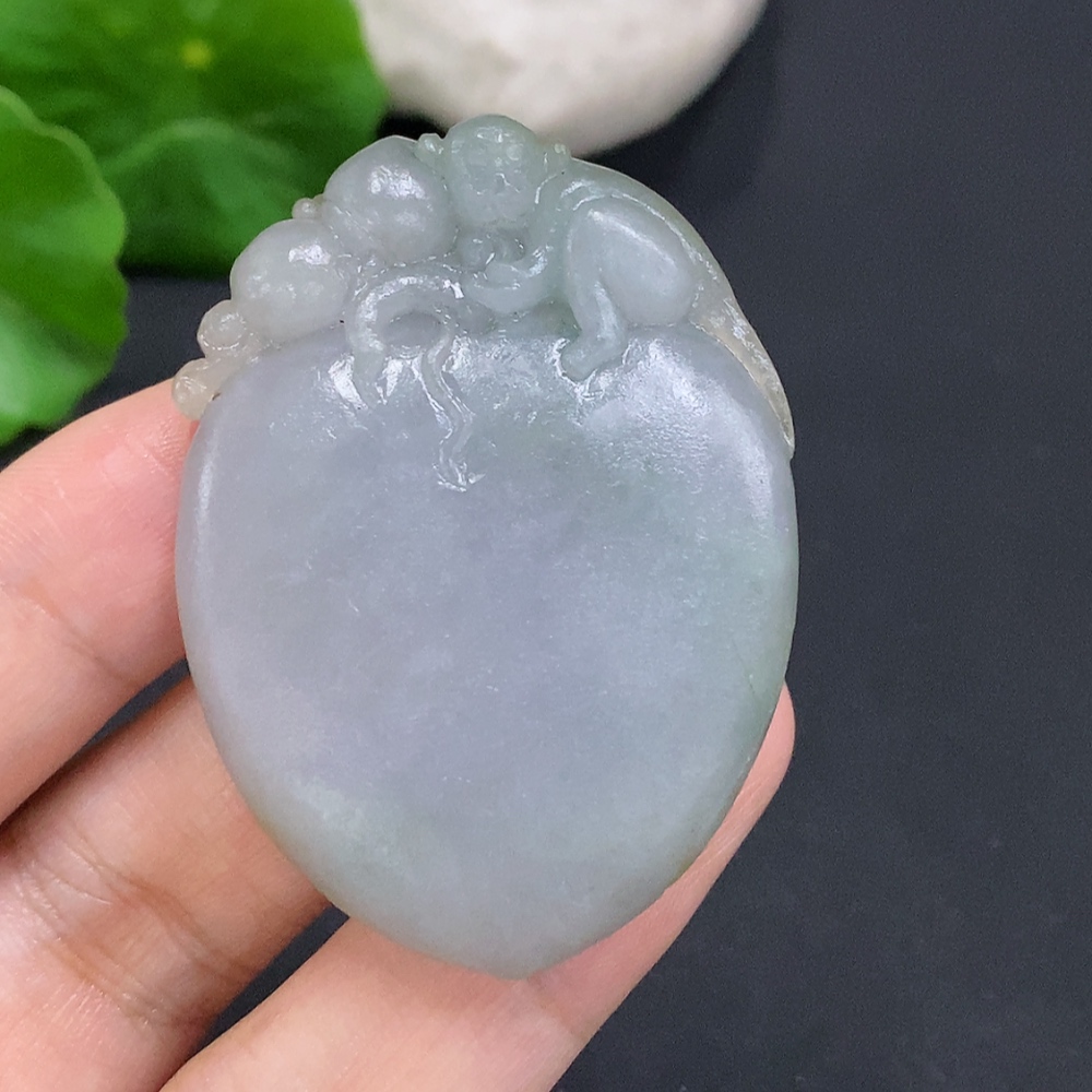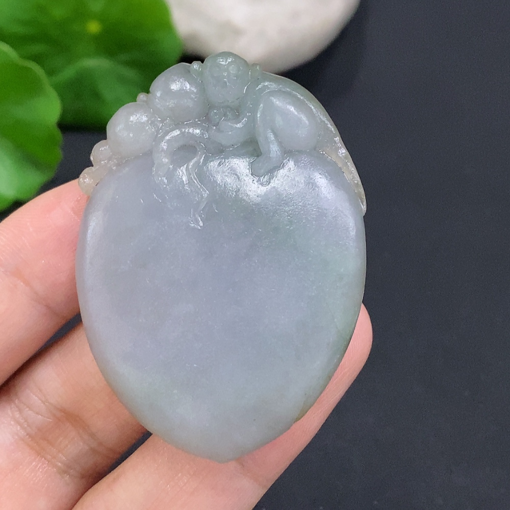 Jadeite Rough Carving Pendant of Monkey Offering Longevity, Total Weight About 33.6g