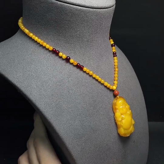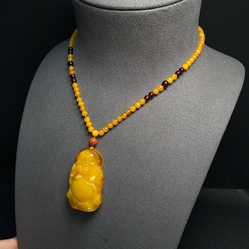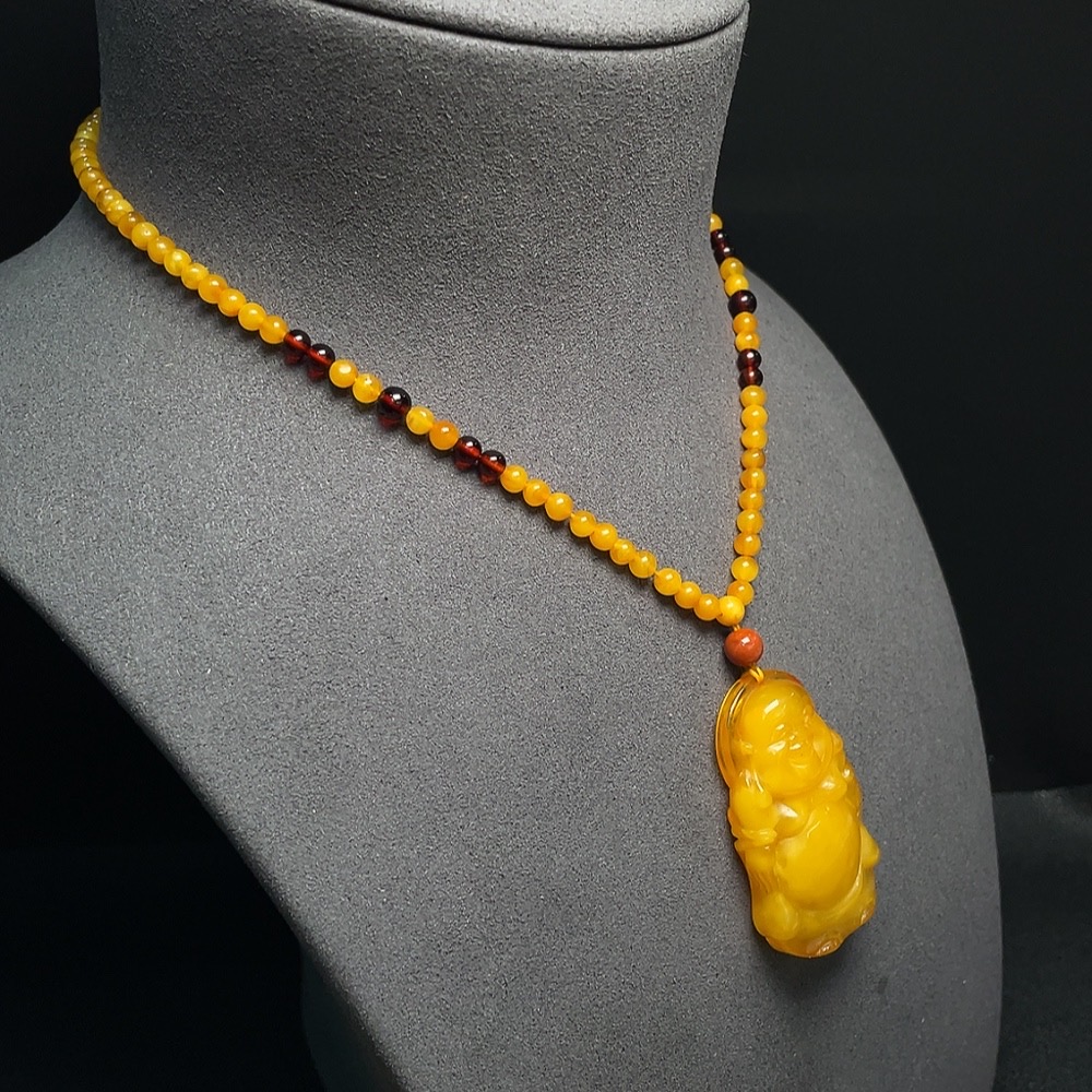 Amber Beeswax Pendant (Including cord, approx. 13.41g, non-natural stones considered)