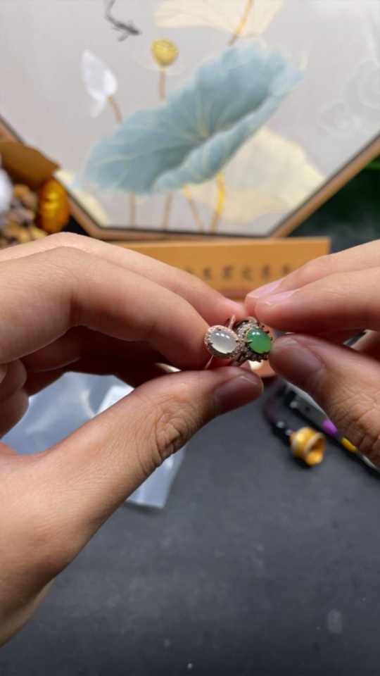 Jadeite Inlaid Piece Non-Gold Adjustable Sell as a Lot