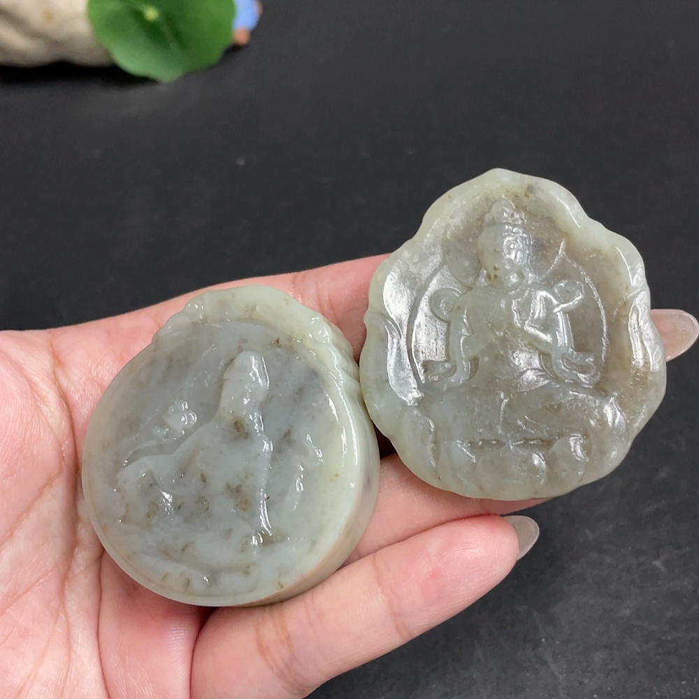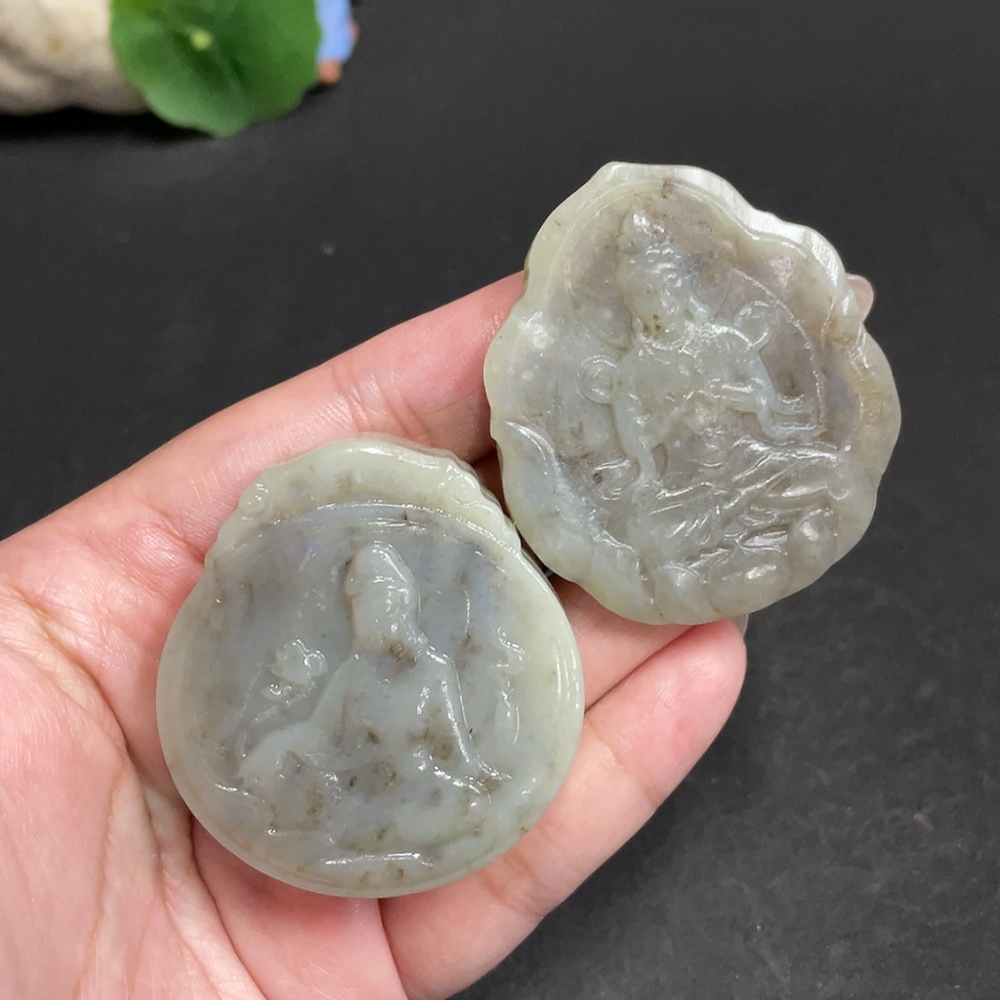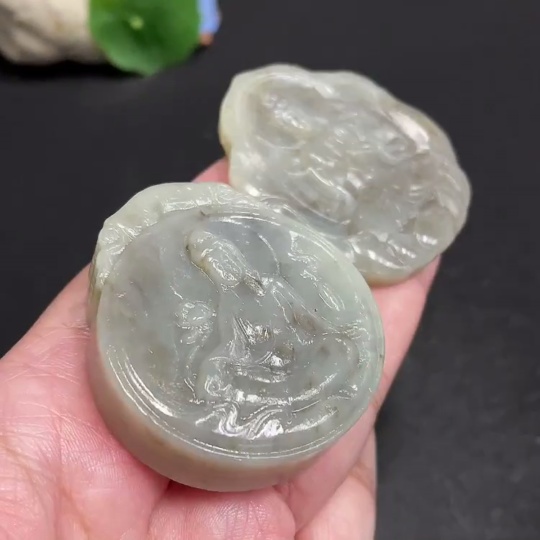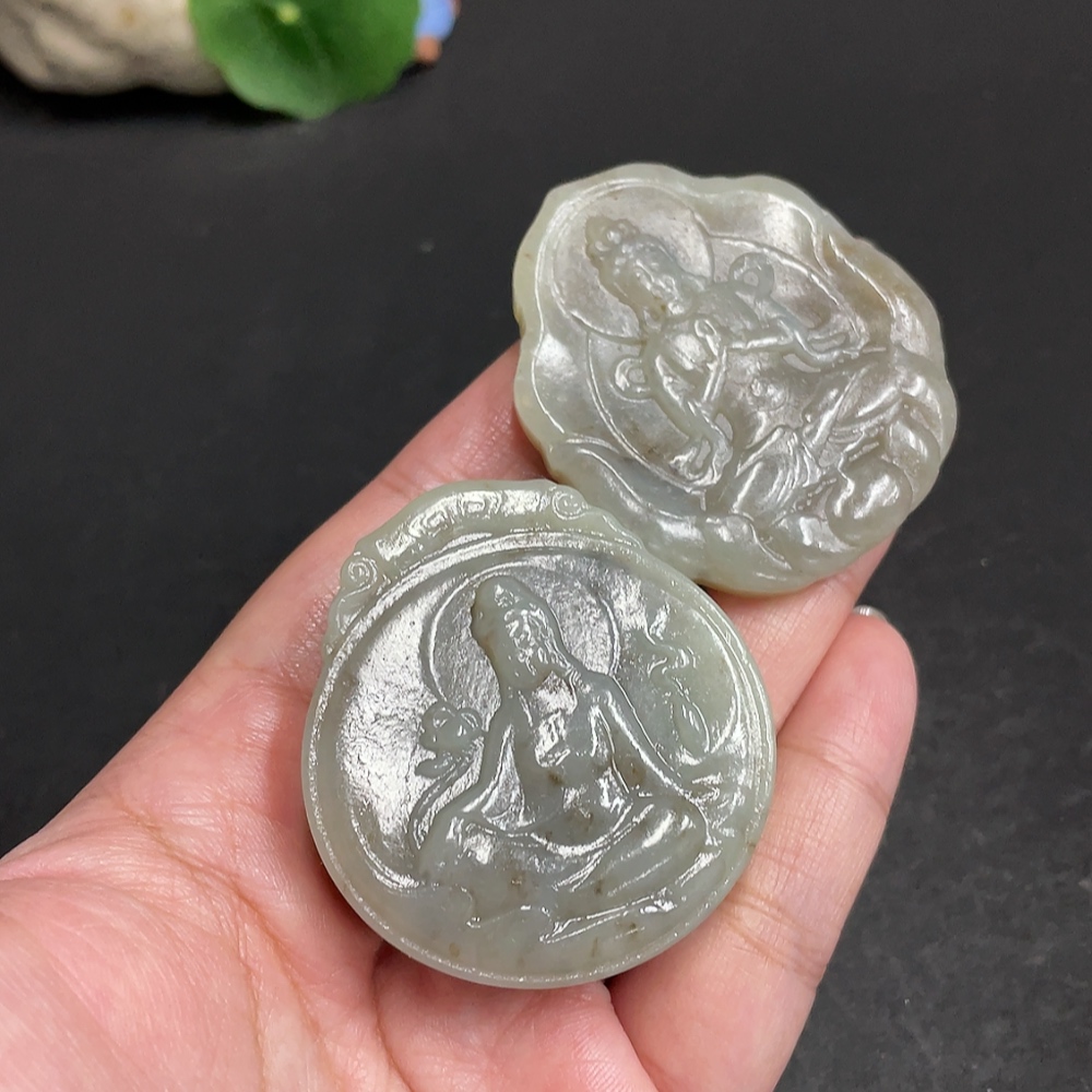 Hetian Jade Pendant Guanyin with Other Mineral Components Total Weight Approx. 95.9g