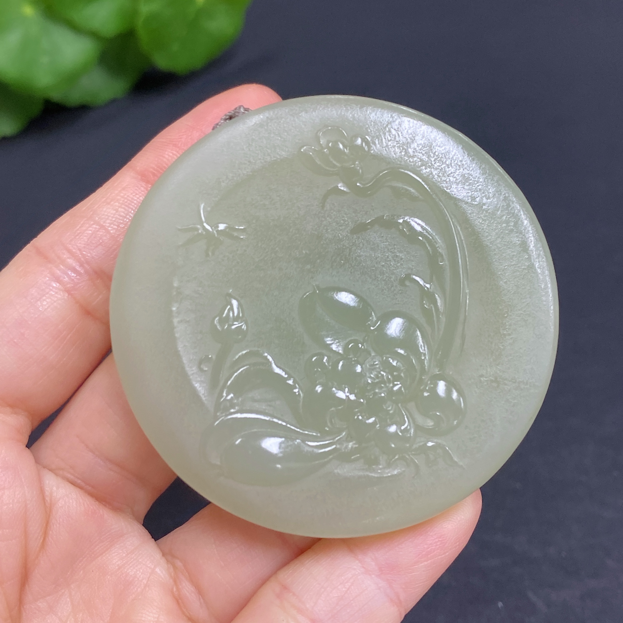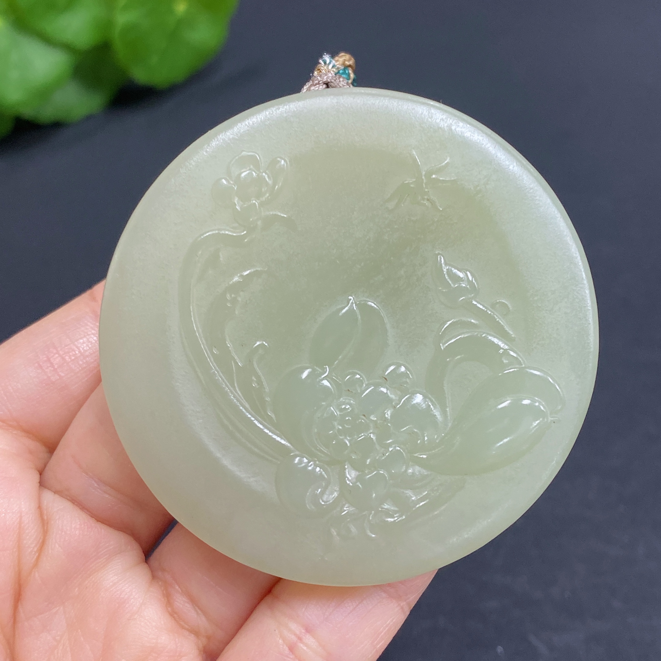 Hetian Jade Pendant Lotus Total Weight Approx. (with rope) 58g