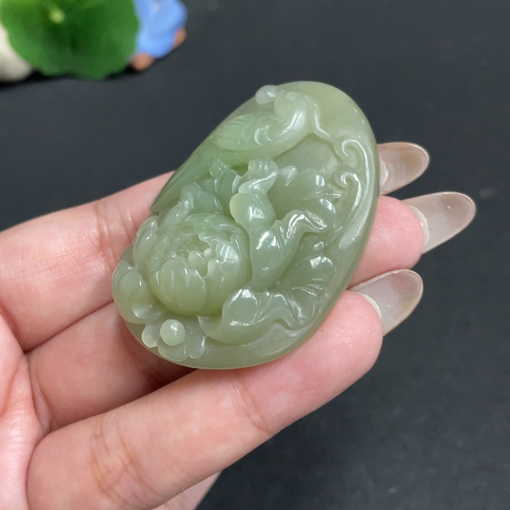 Hetian Jade Pendant "Delight on the Brow" Total Weight Approx. 44.1g