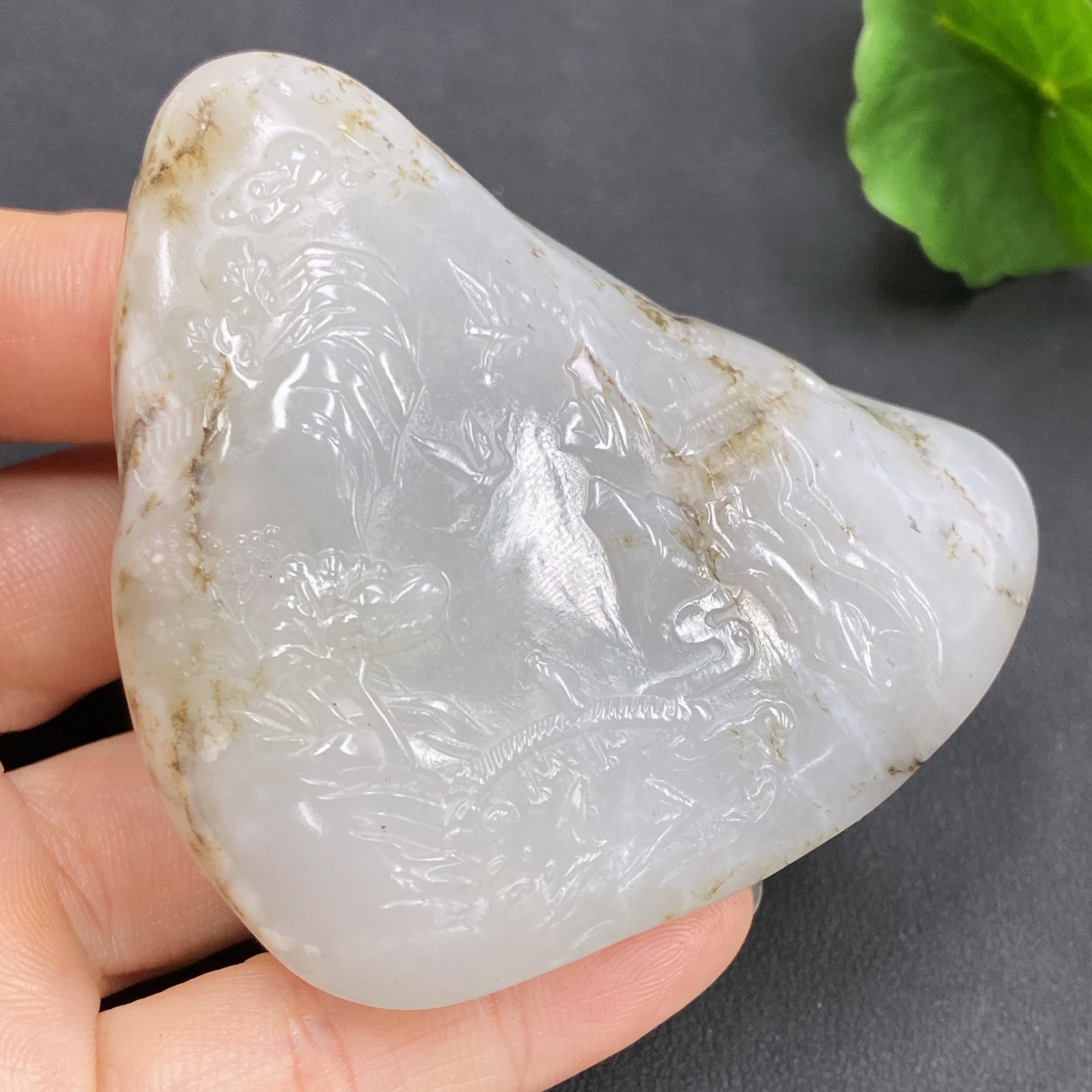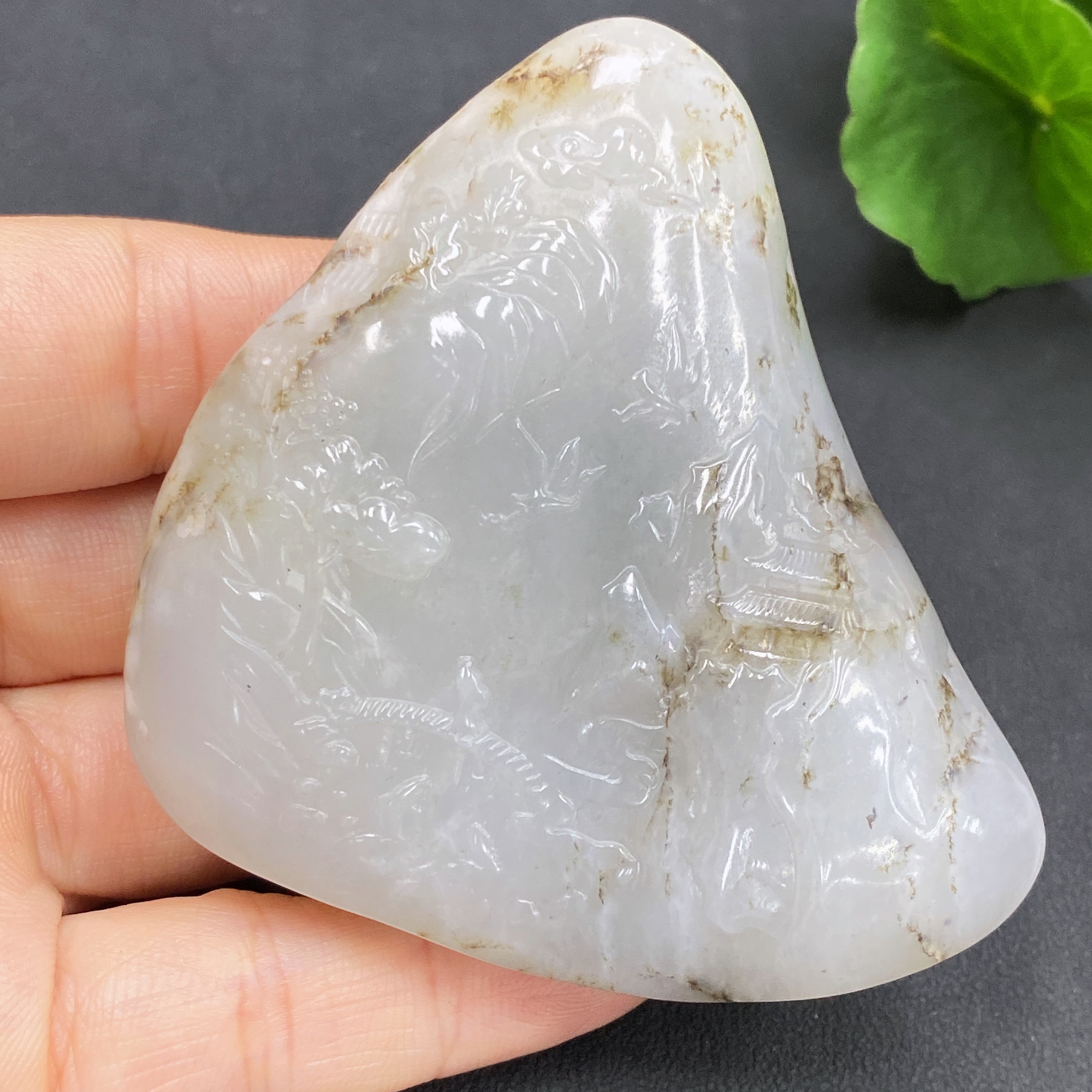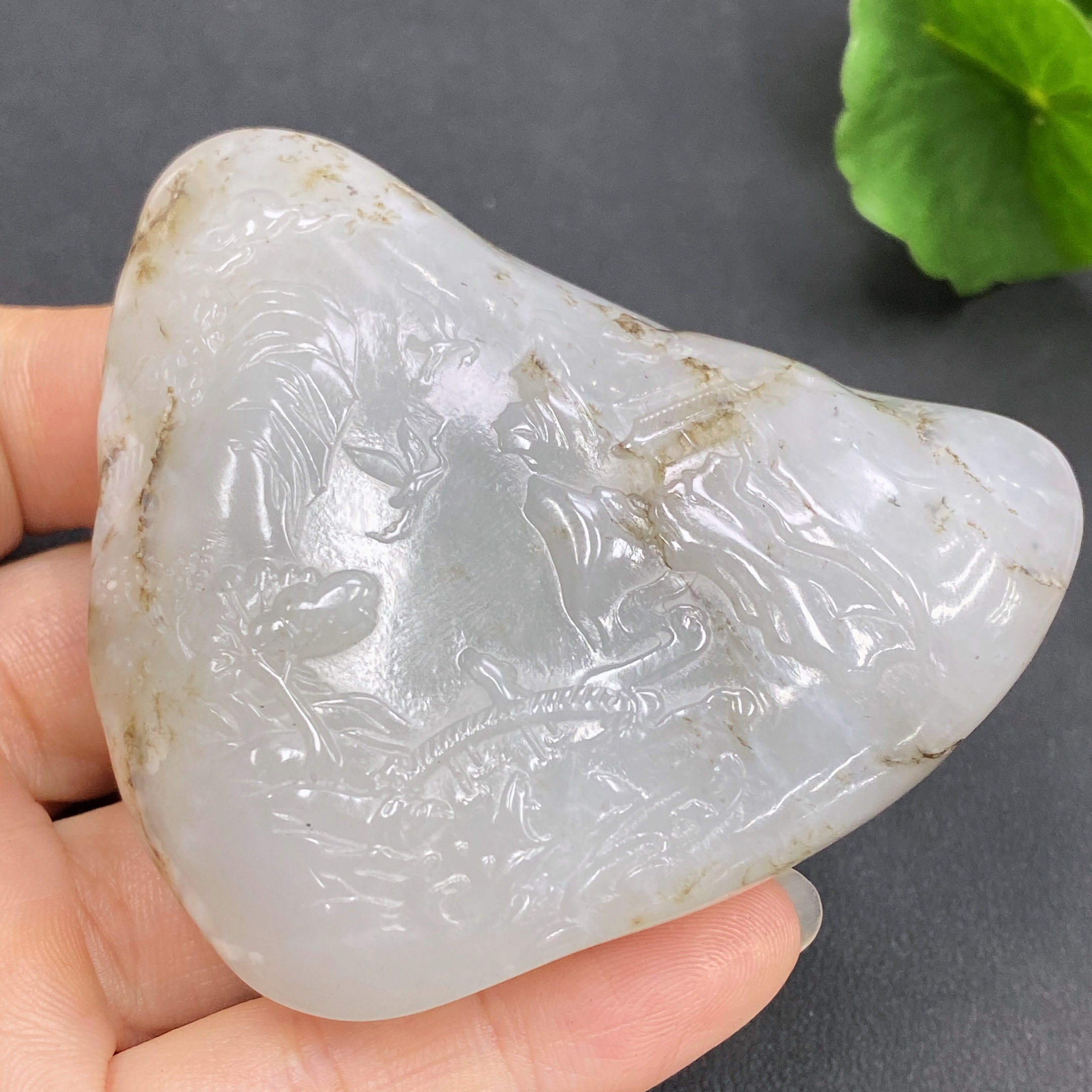 Hetian Jade Handheld Carving - Landscape - Undetermined Skin Color Origin - Total Weight Approx. 124g