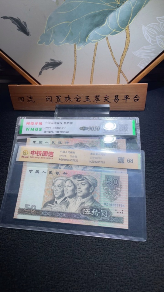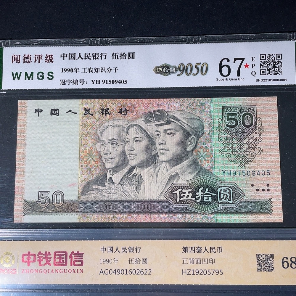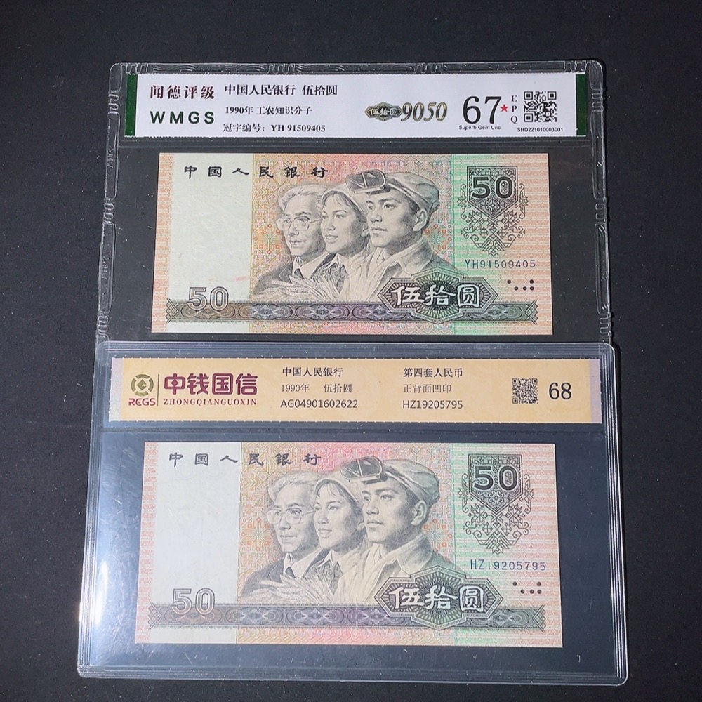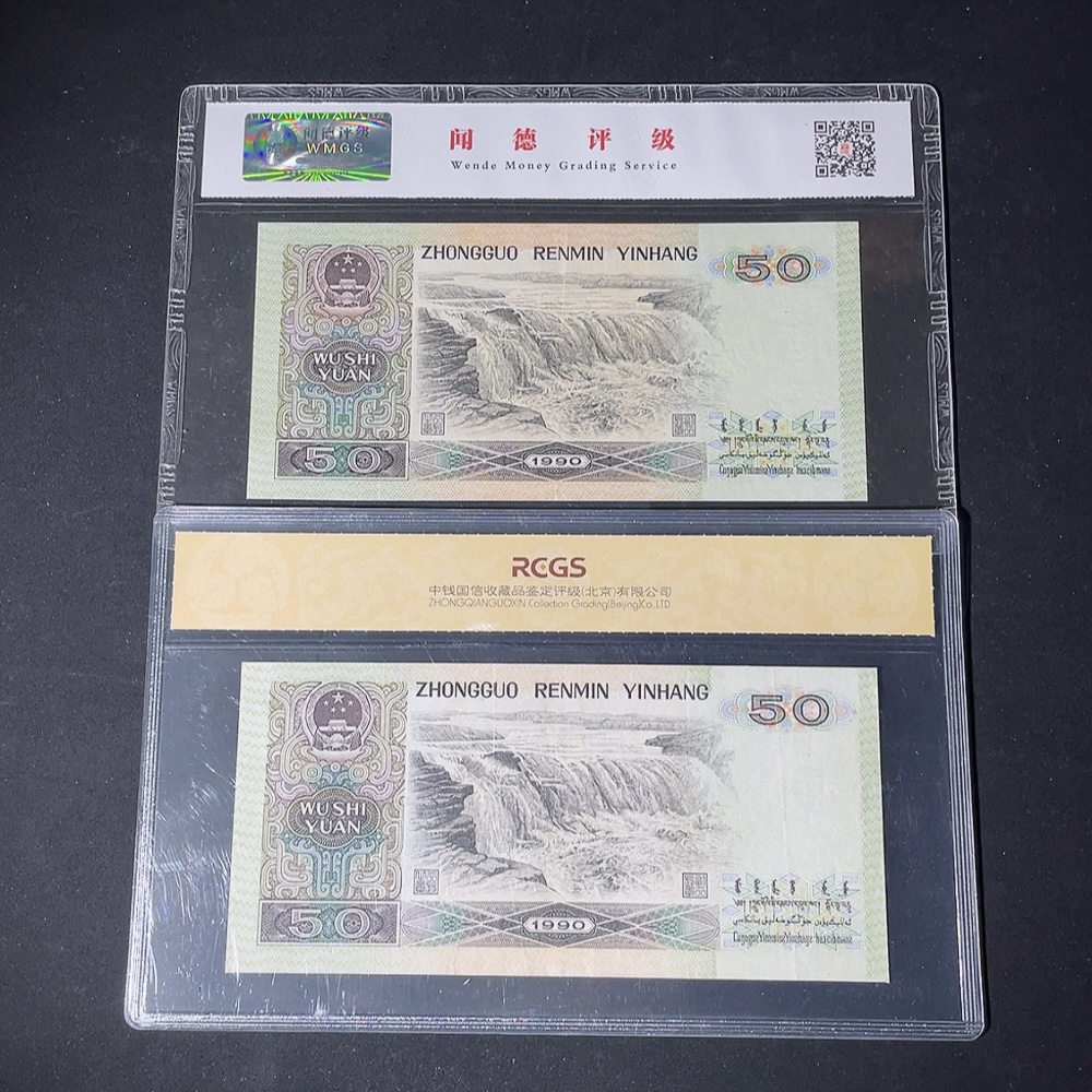 The Fourth Series of RMB 1990 Edition 50-Yuan Banknotes Two Graded Paper Notes