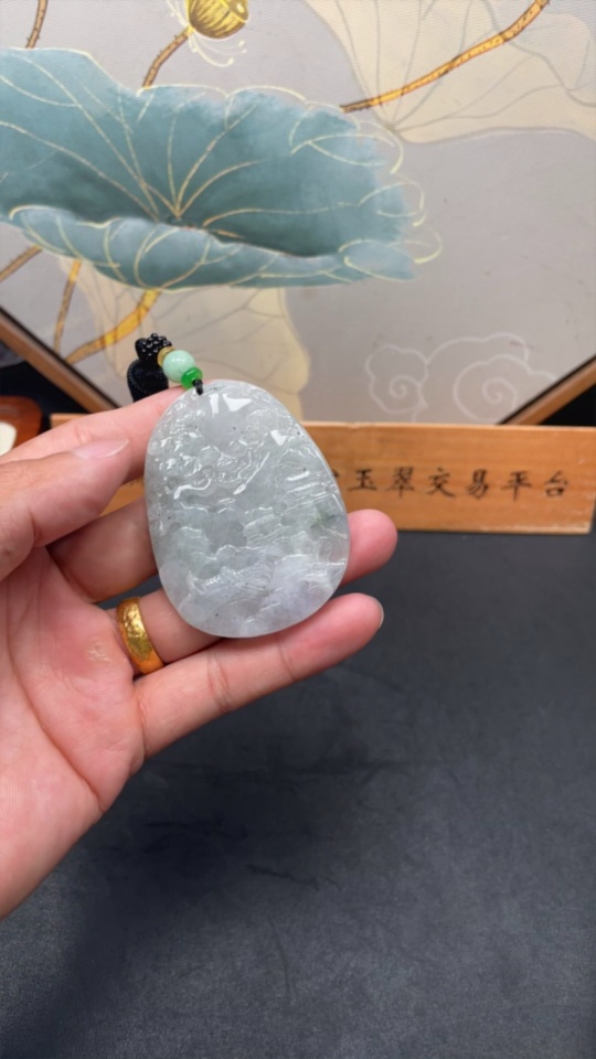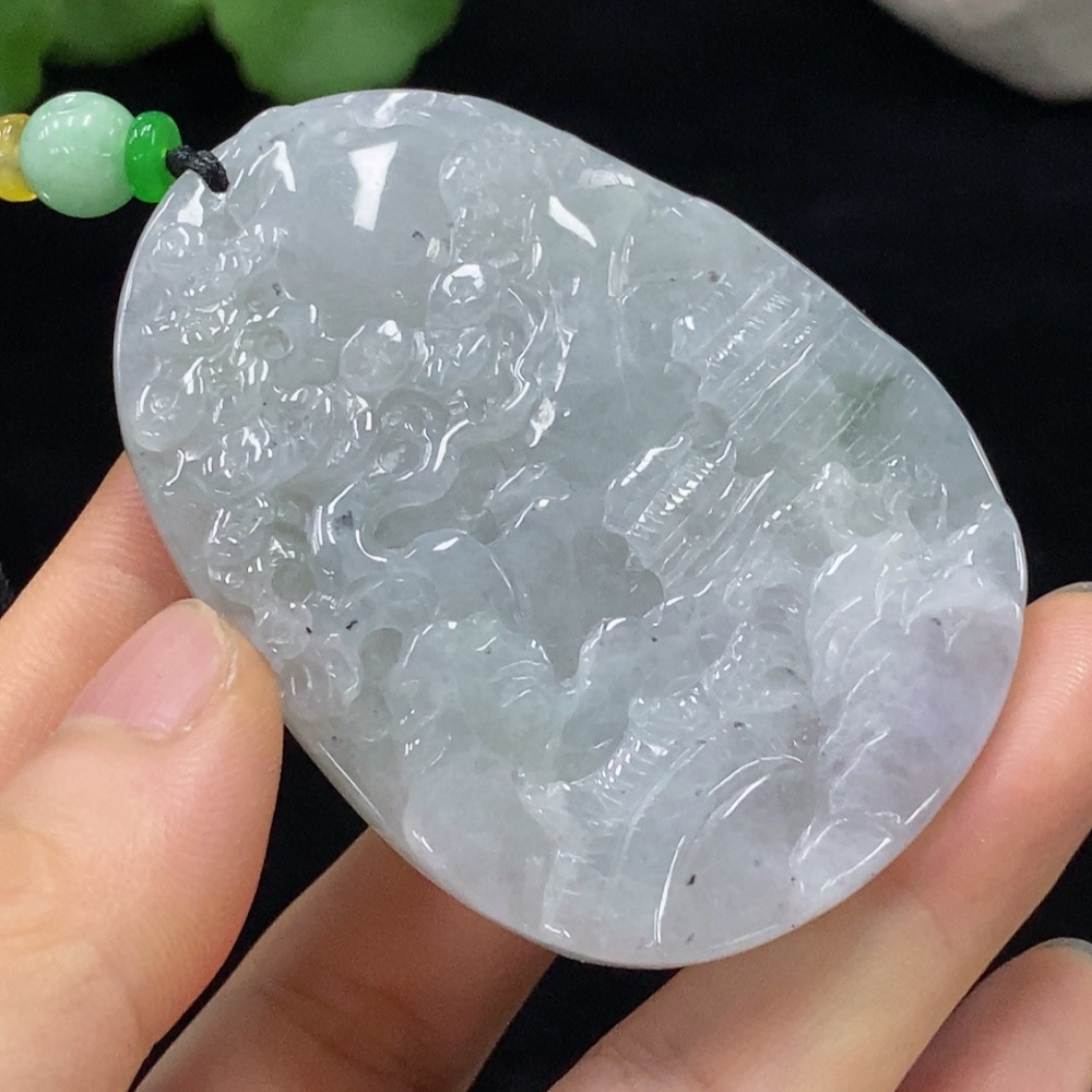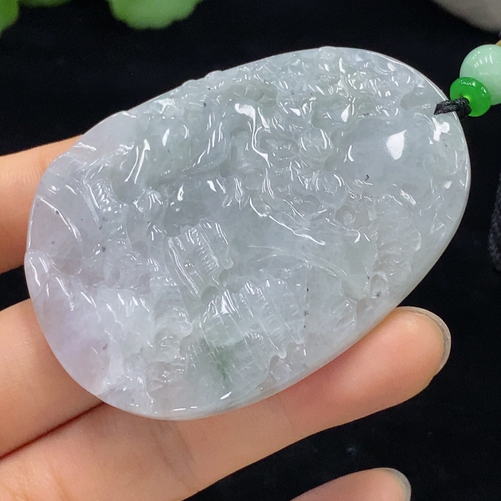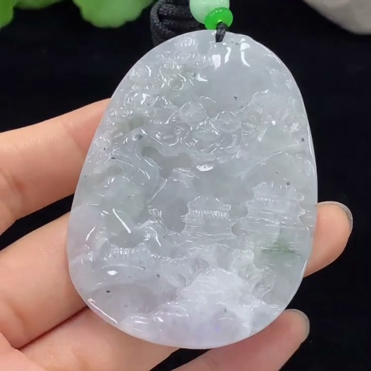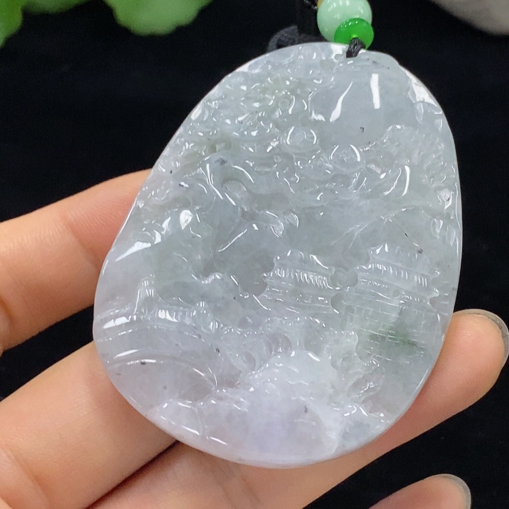 Jadeite Landscape Pendant Total Weight Approx. 51.34g (Including String Weight)