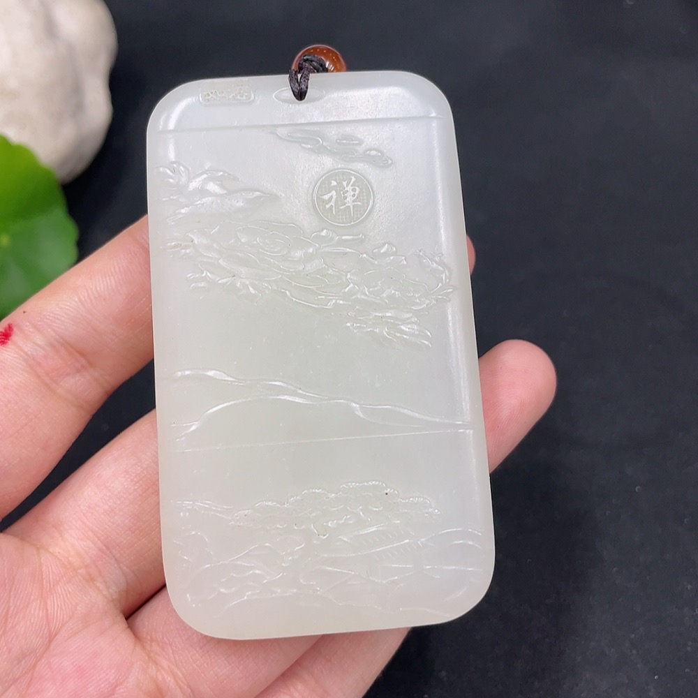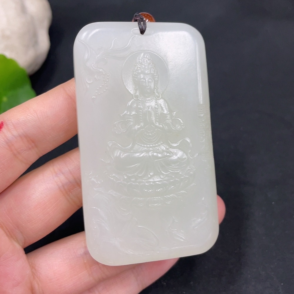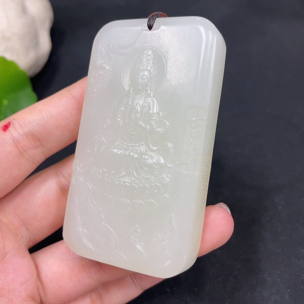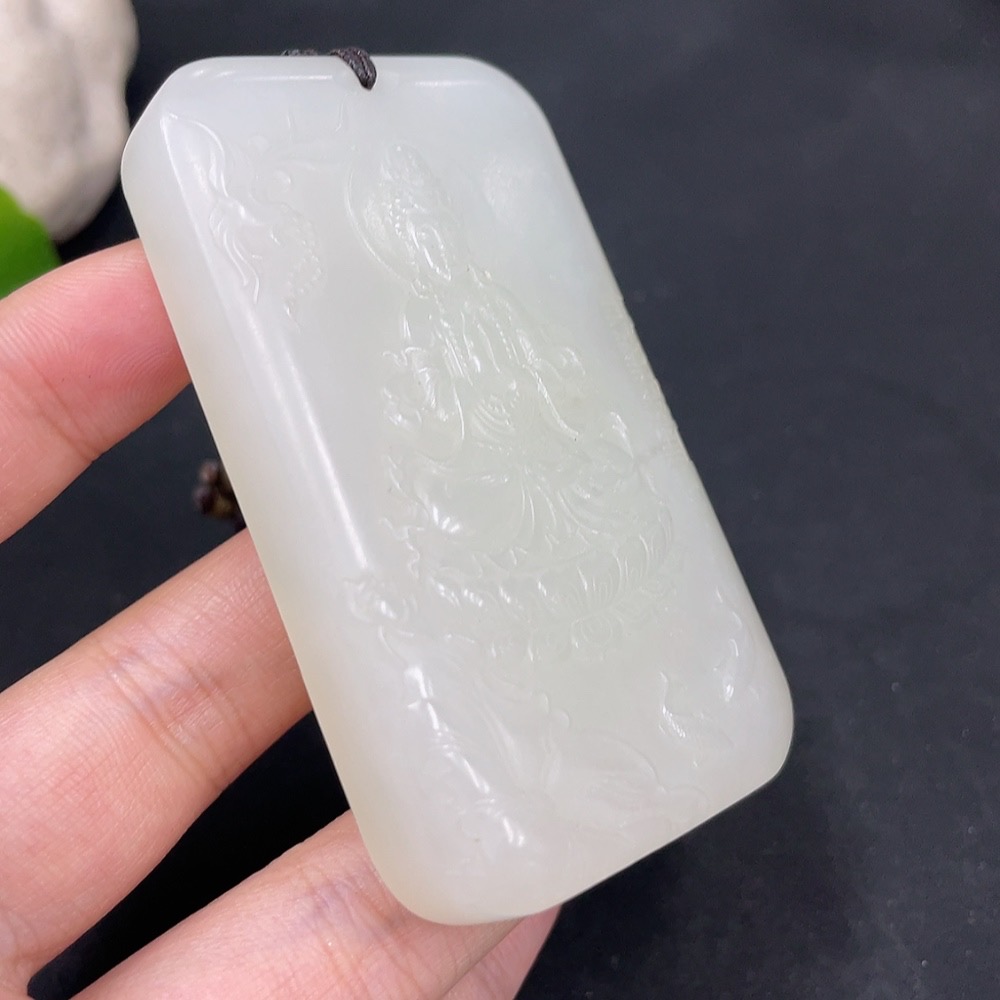 Hetian Jade Pendant, Guanyin, Total Weight (including rope) 108.3g