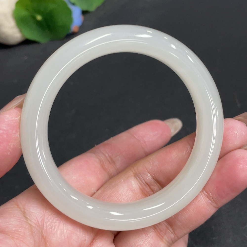 Hetian Jade Round Bracelet, Size 56.2, Total Weight Approx. 54.1g
