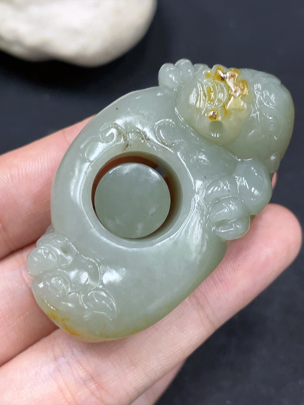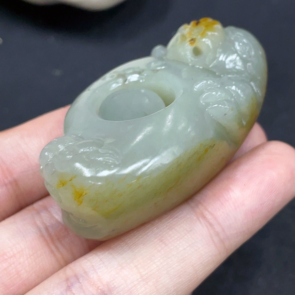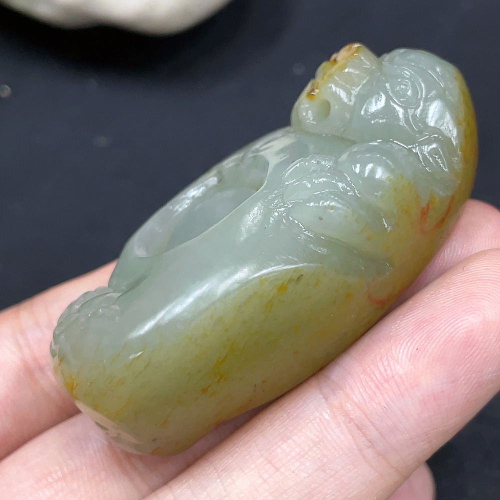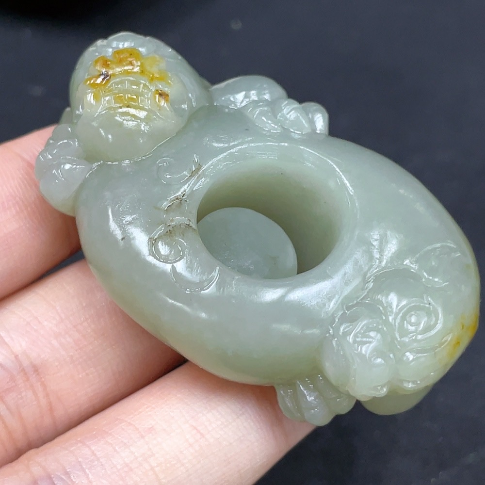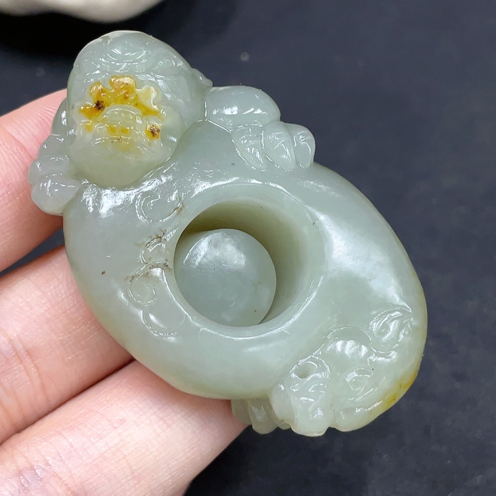 Hetian Jade Pendant Auspicious Beast Ring Undetermined Skin Color Origin Total Weight Approx. 51g