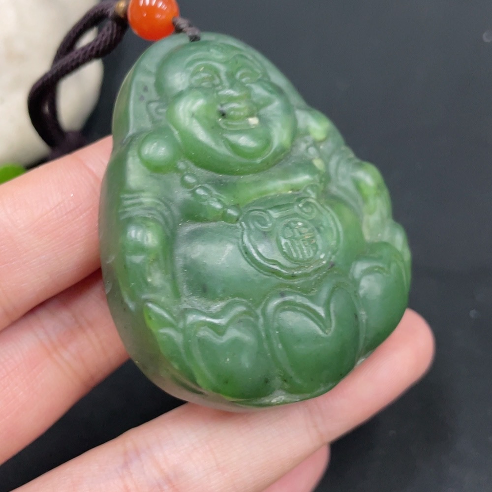 Hetian Jade Pendant - Buddha Bead with Non-Hetian Jade Accessories Total Weight (including rope): 64.6g