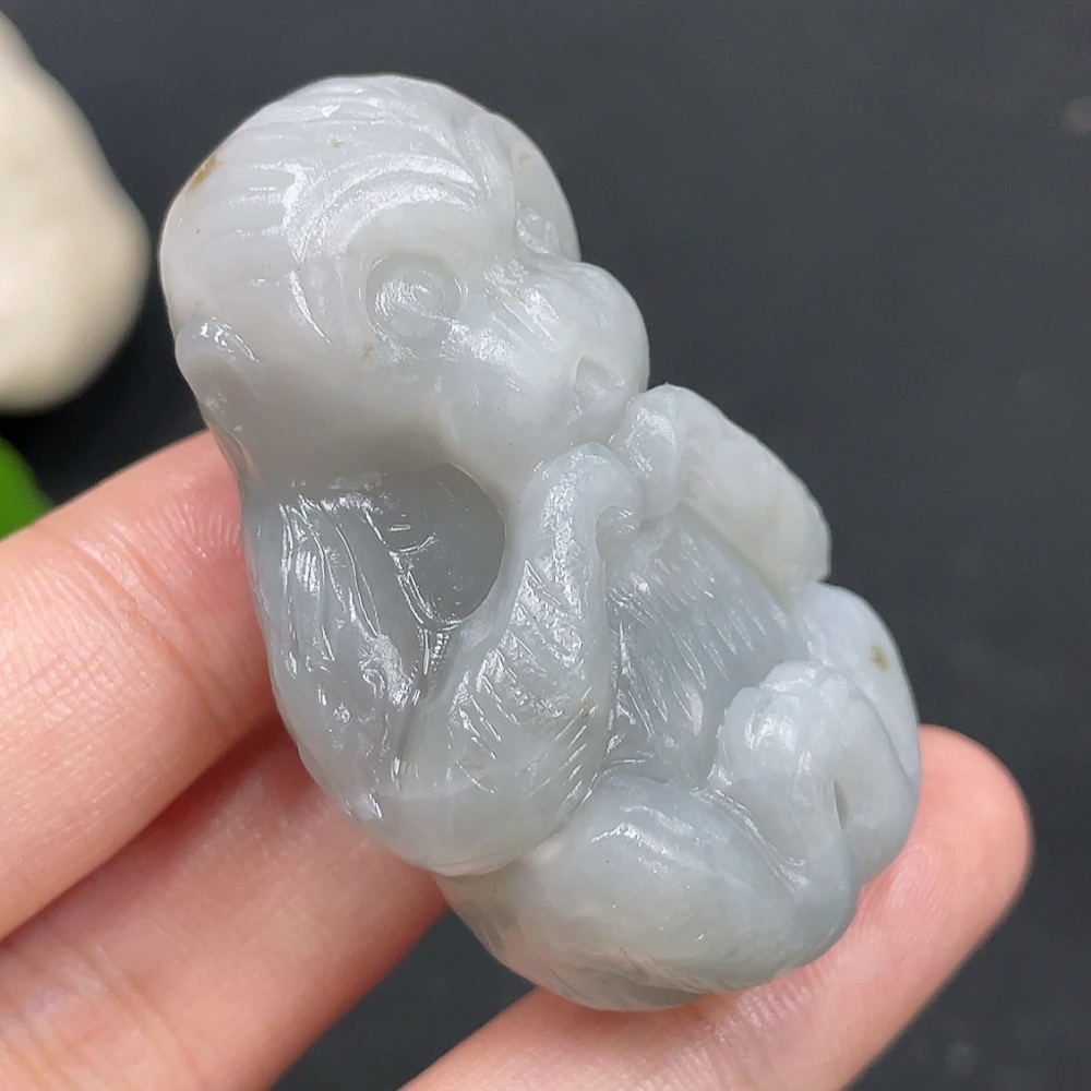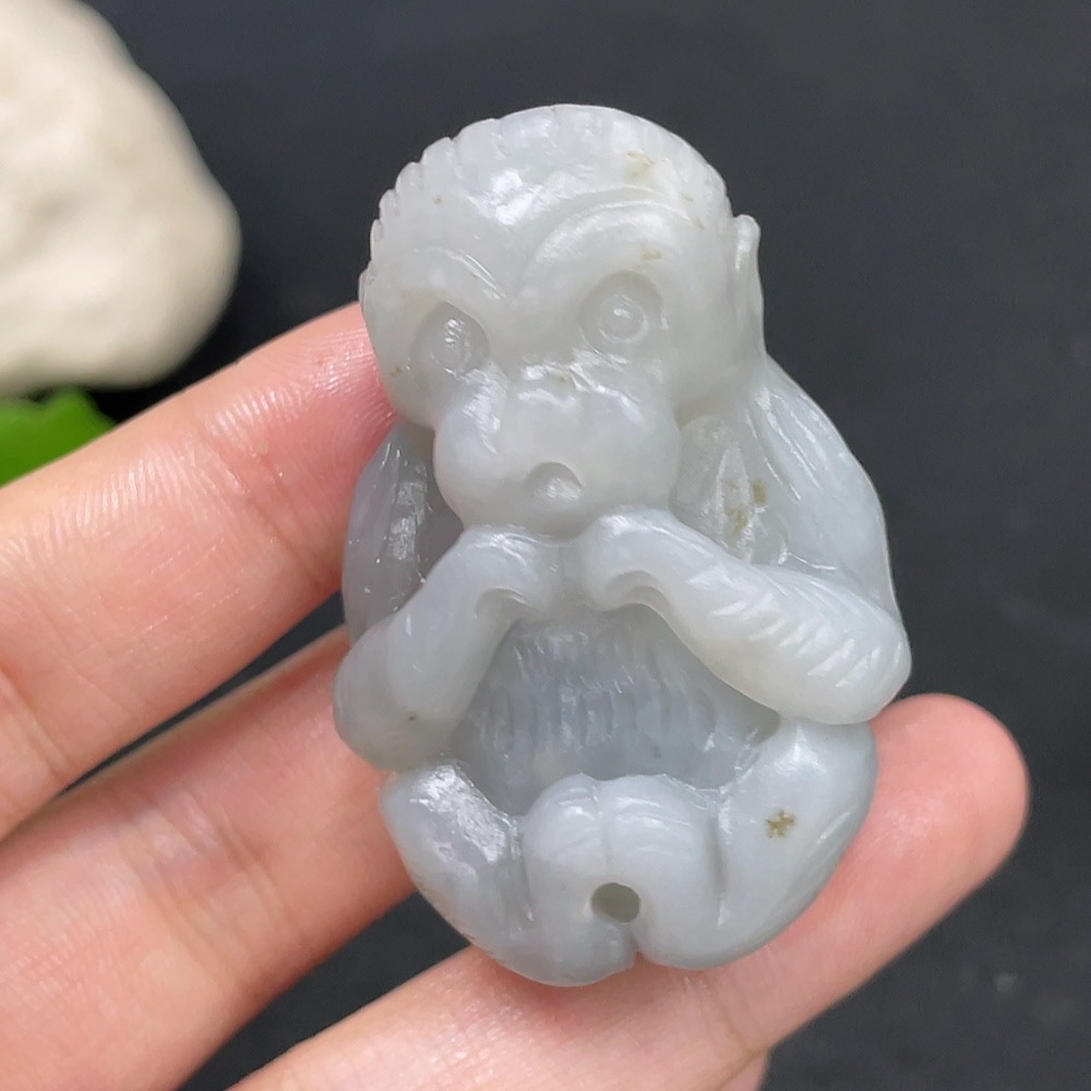 Hetian Jade Handheld Ornament - Spirit Monkey (Total weight: approx. 48.6g)
