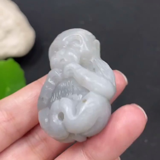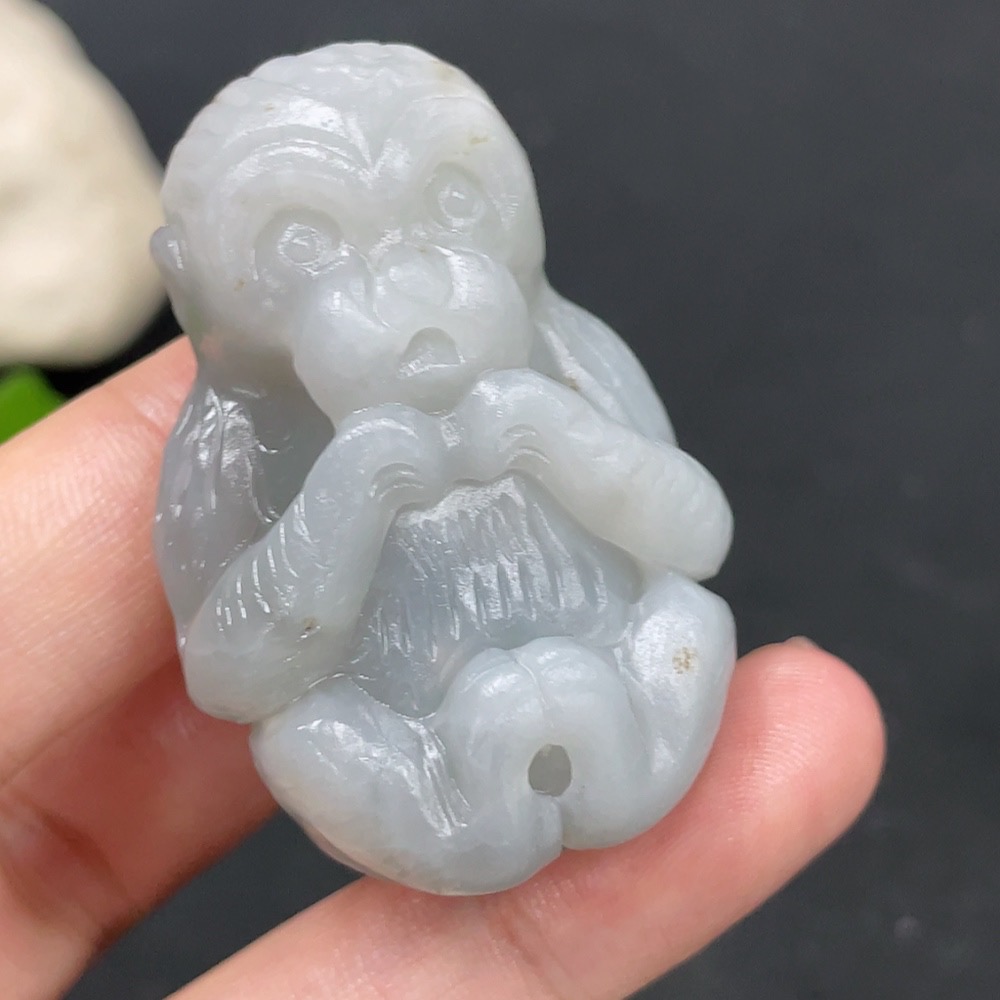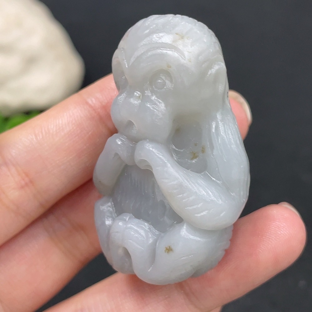Trezaar - Hetian Jade Handheld Ornament - Spirit Monkey (Total weight: approx. 48.6g)