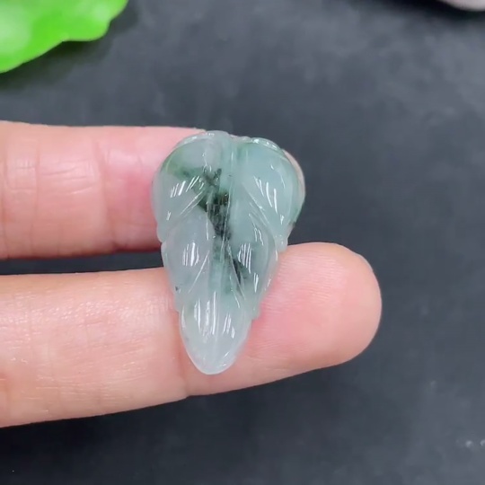 Jadeite Pendant Leaf Containing Other Mineral Components Total Weight Approximately 3.63g