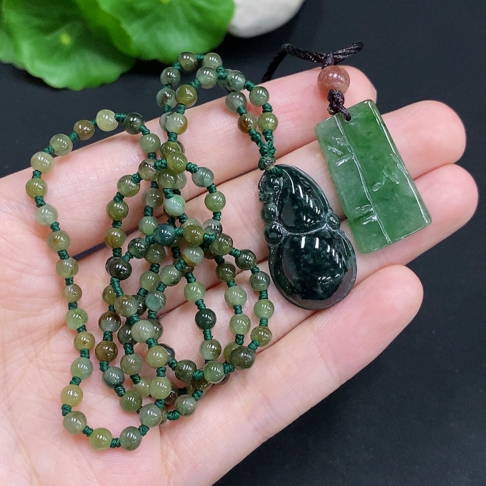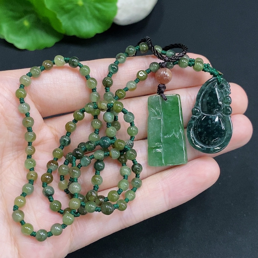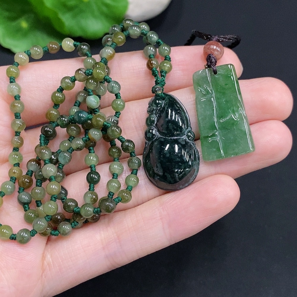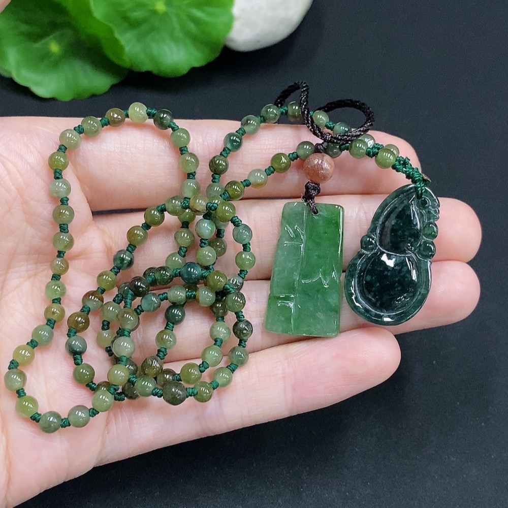 Jadeite Pendant Bamboo Section with Non-Jadeite Beads Color Origin Undetermined