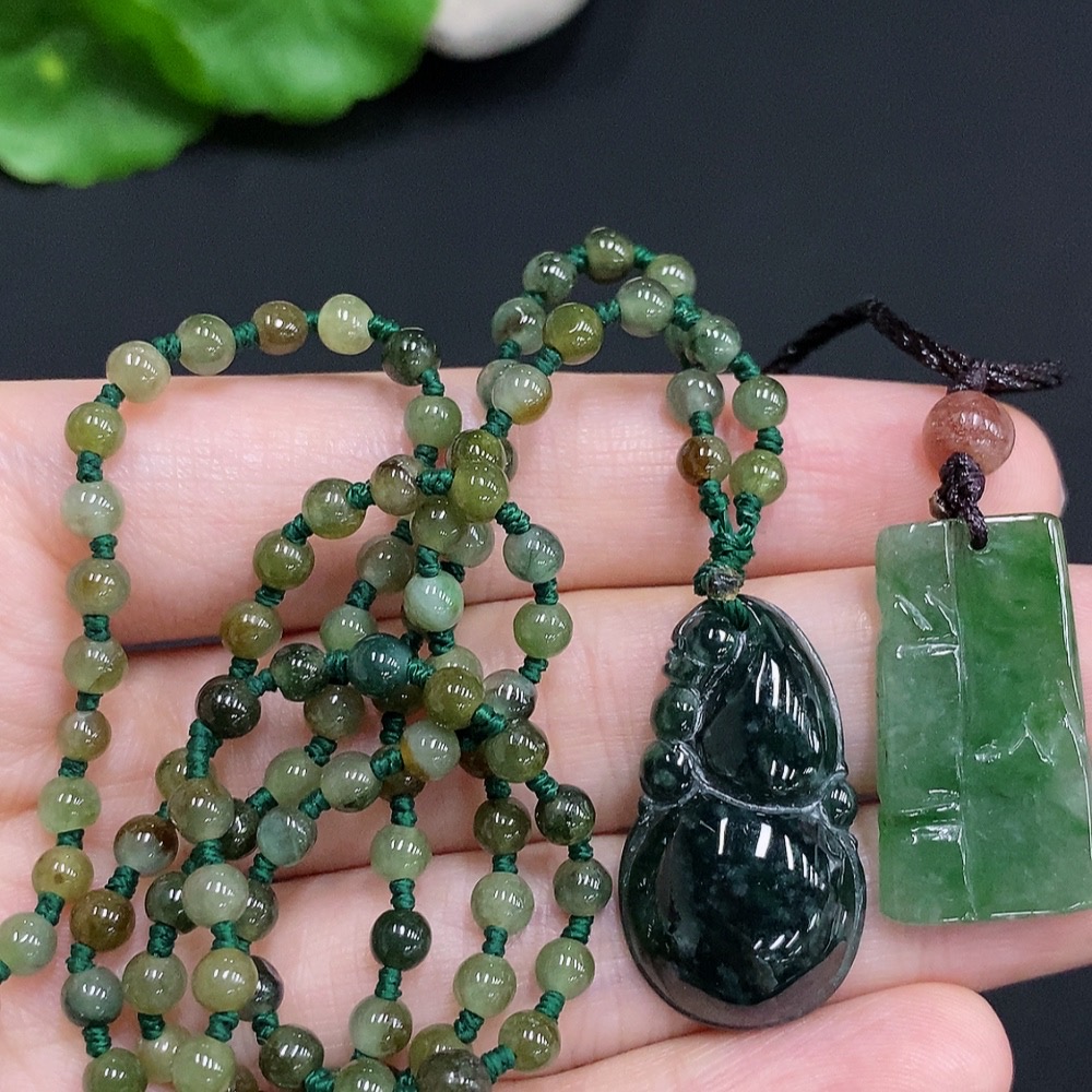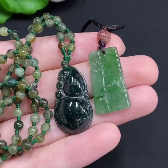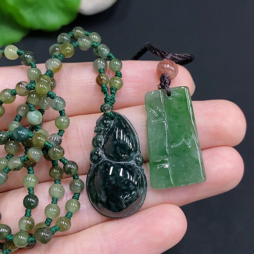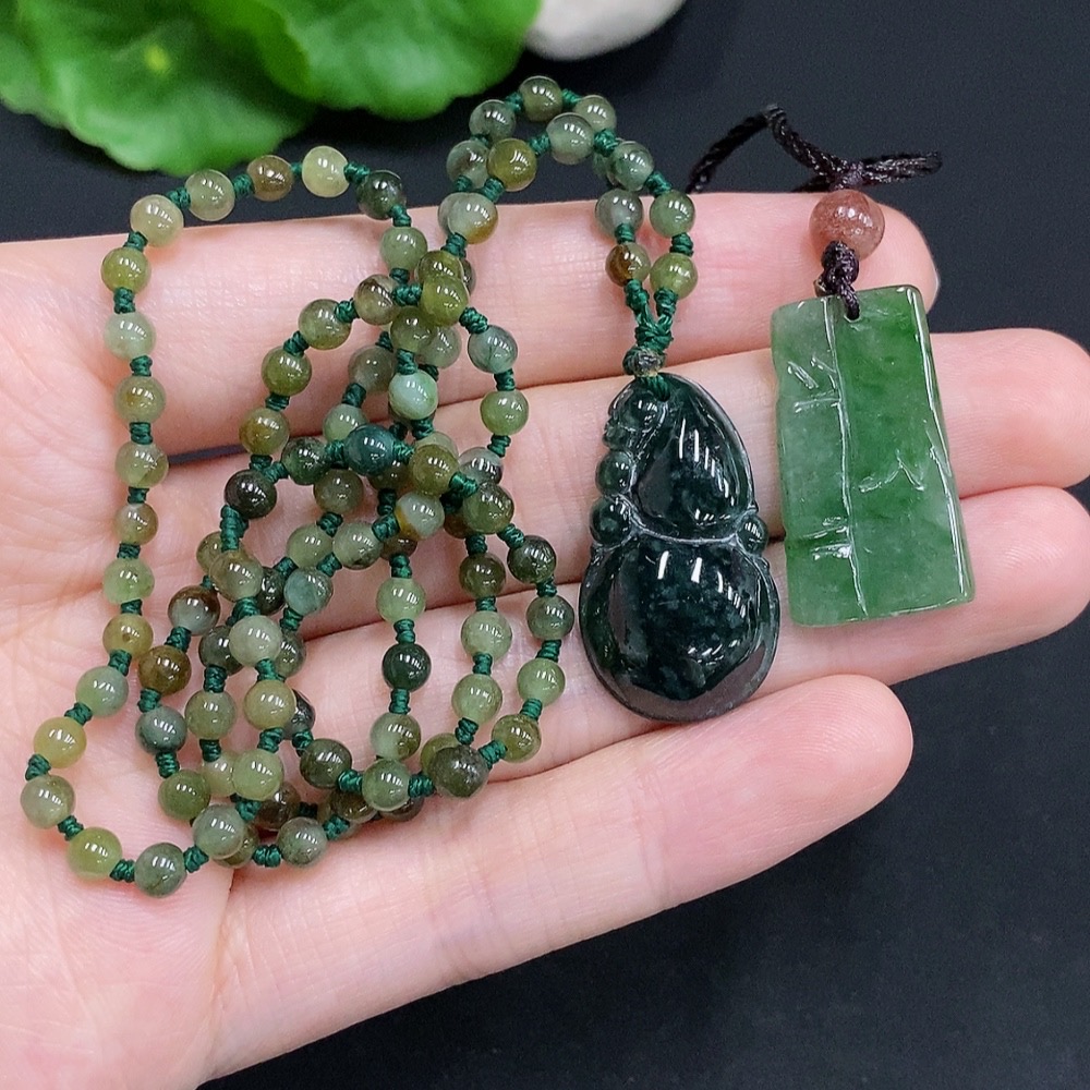 Jadeite Pendant Bamboo Section with Non-Jadeite Beads Color Origin Undetermined