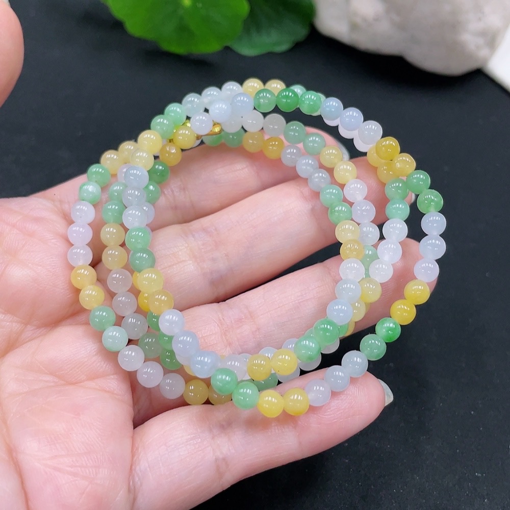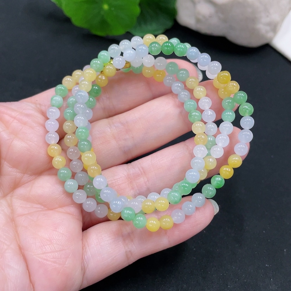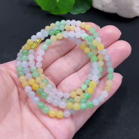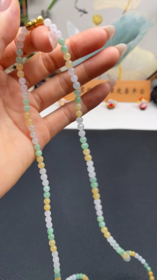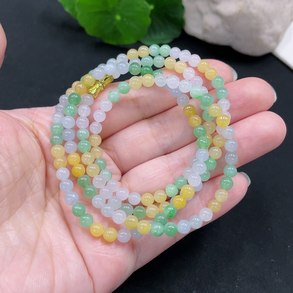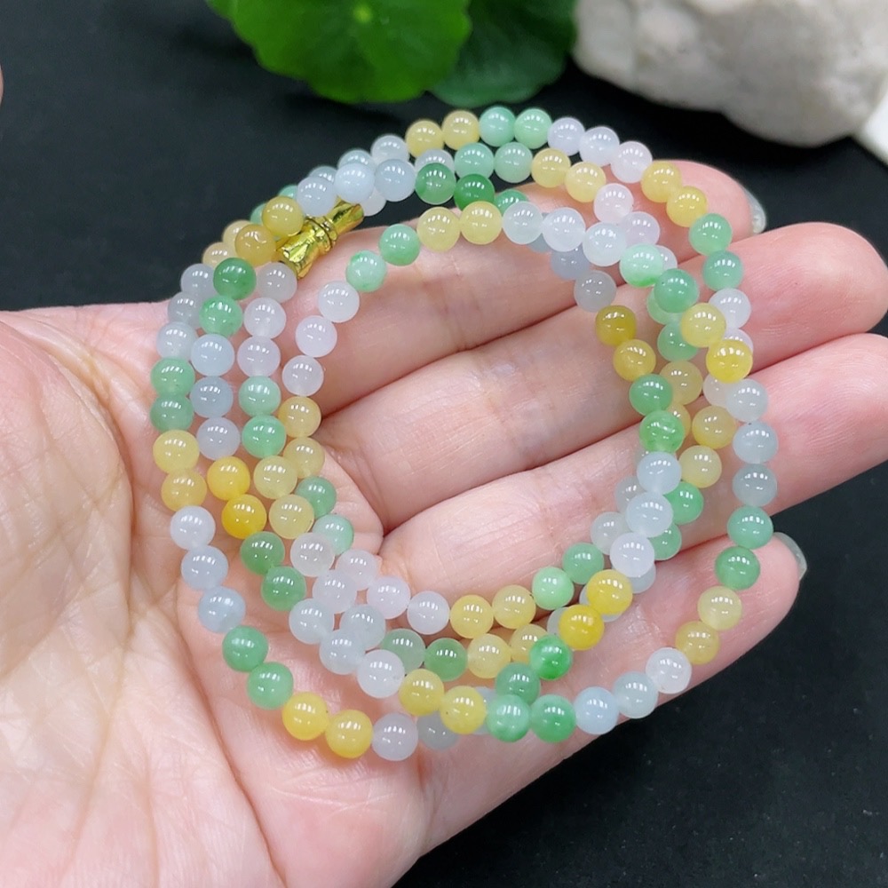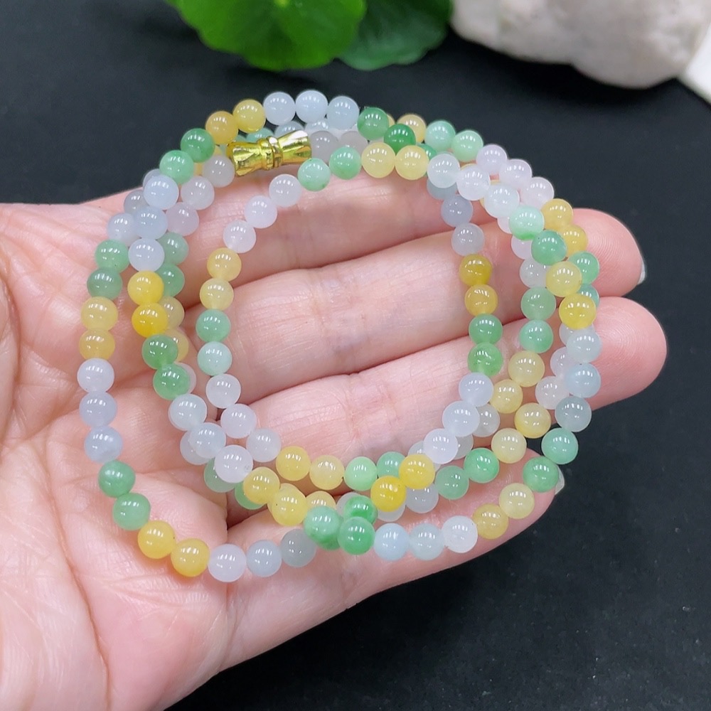 Jadeite Bead Necklace Approx. 4.5mm Total Weight Approx. 22.7g (Non-Gold Inlaid) (Color Origin Undetermined)