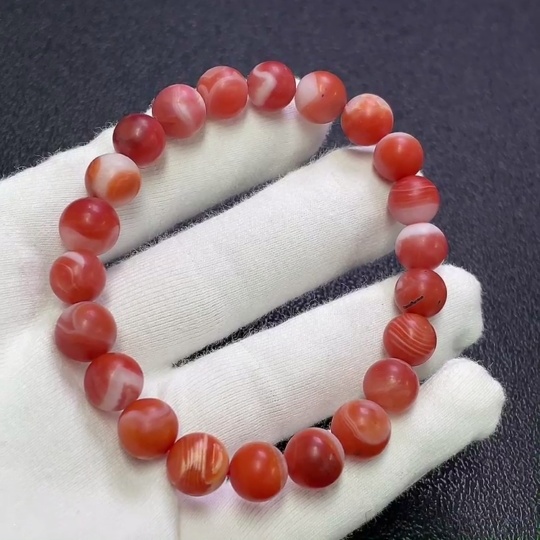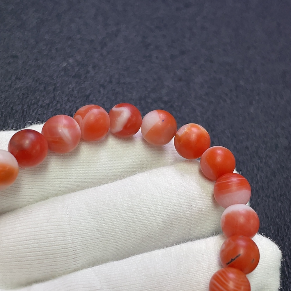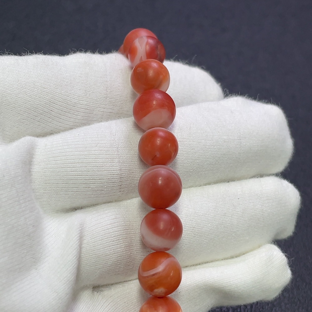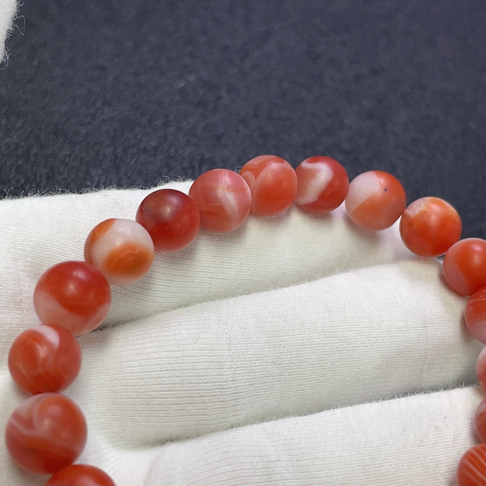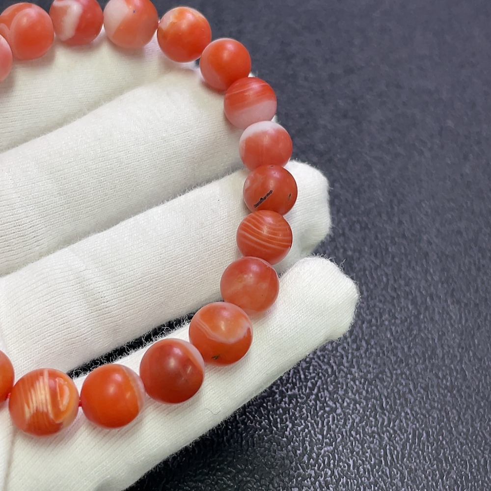 Red Agate Bracelet with Visible Organic Matter, Total Weight Approx. 24.34g, Size About 9.2mm