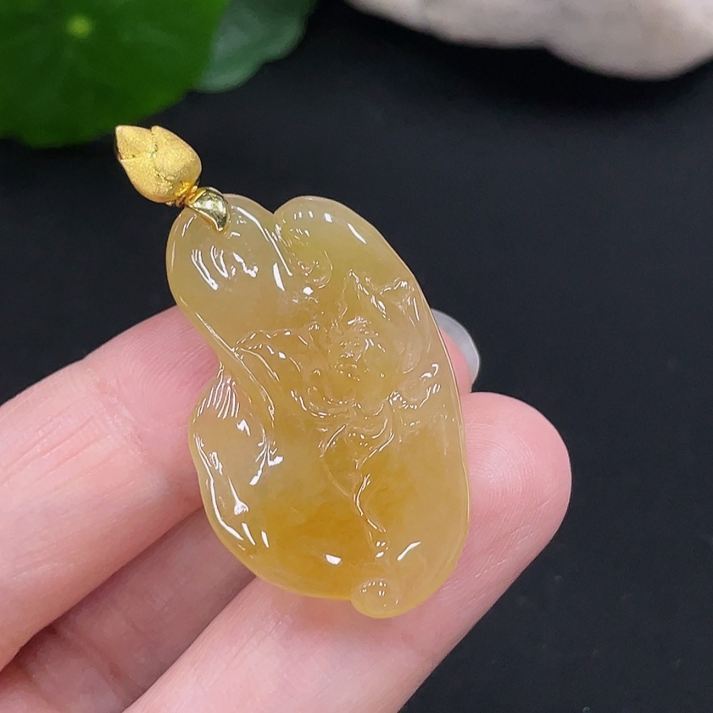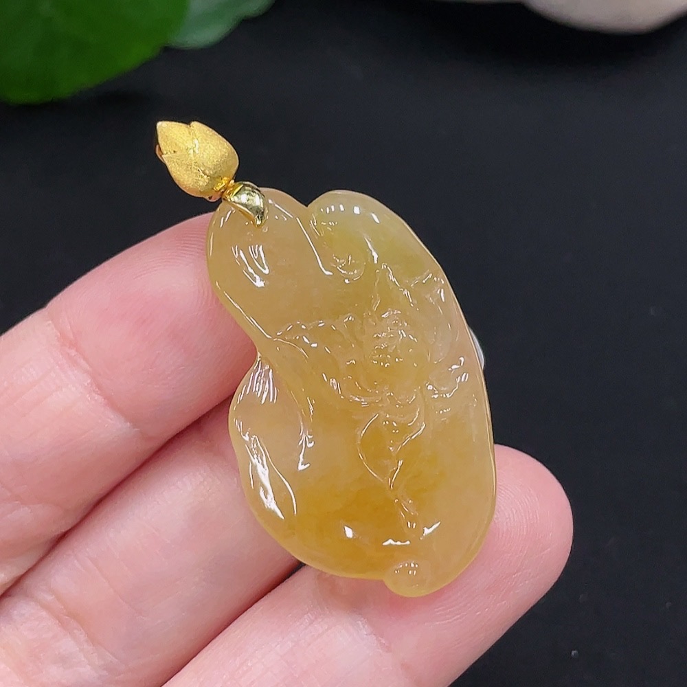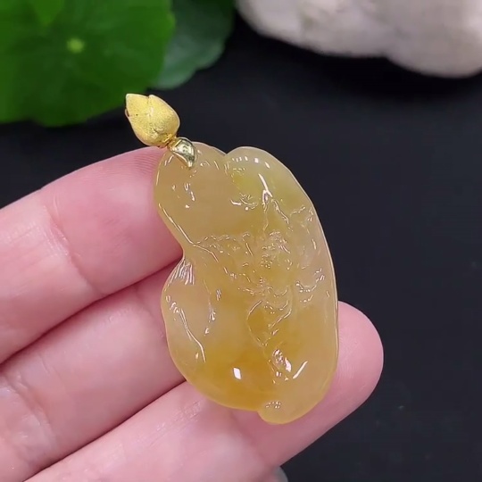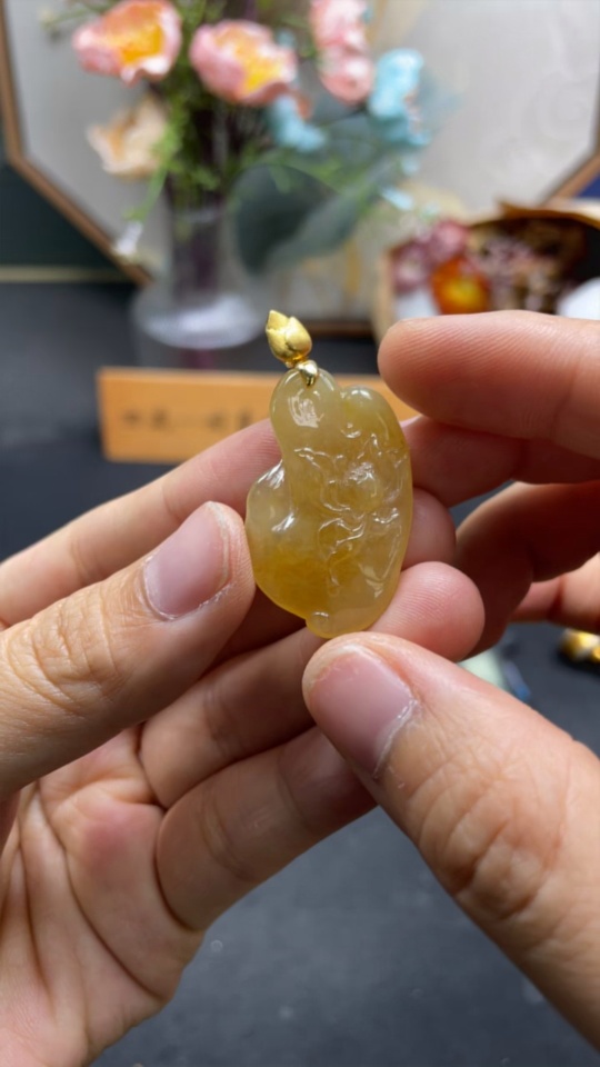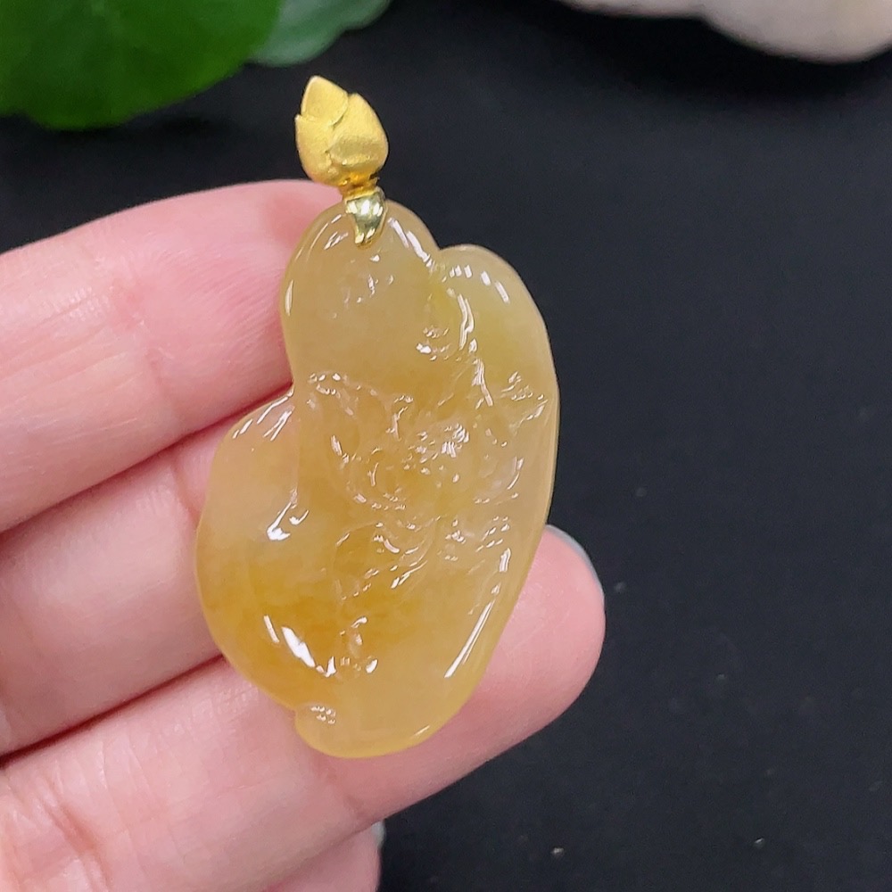 Jadeite Lotus Pendant 18K Gold Total Weight Approx. 7.5g (Color Origin Undetermined)