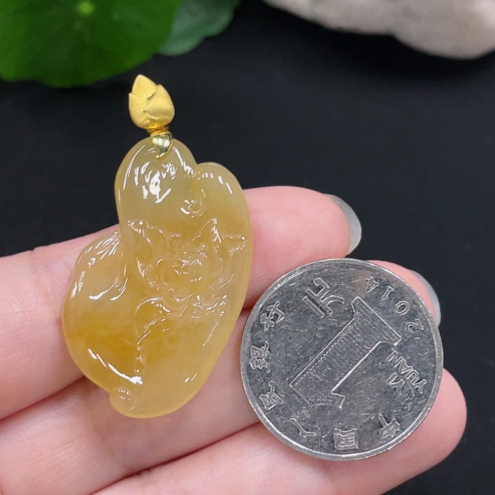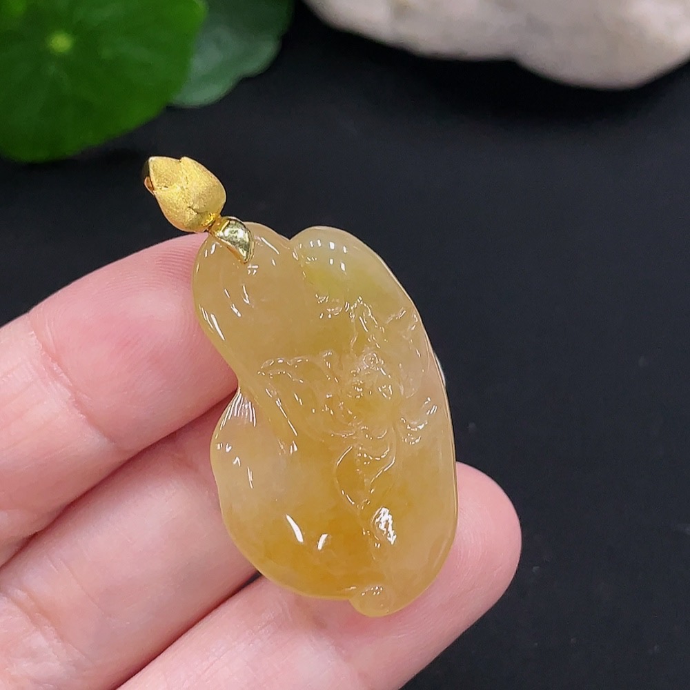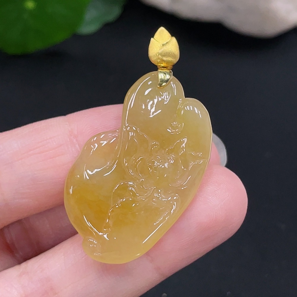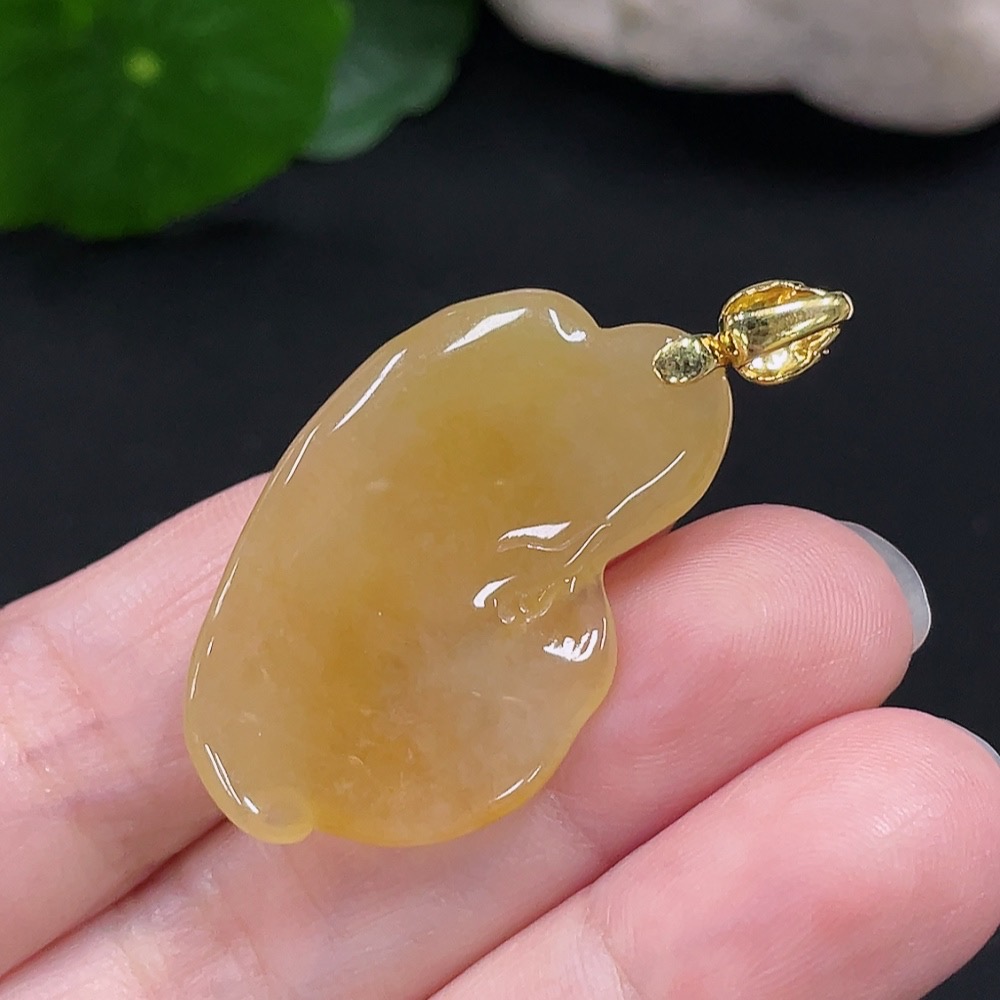 Jadeite Lotus Pendant 18K Gold Total Weight Approx. 7.5g (Color Origin Undetermined)