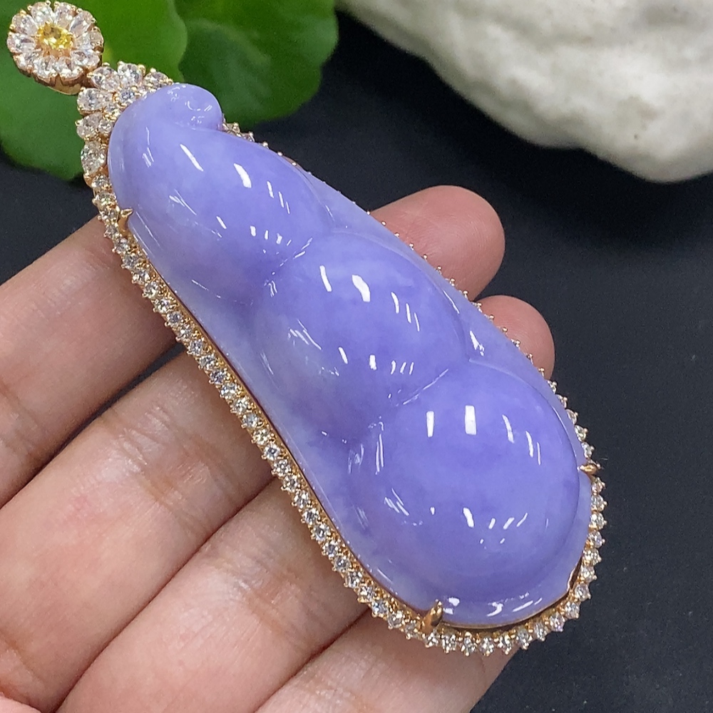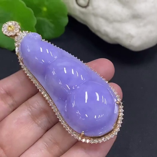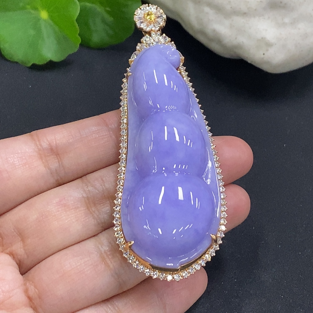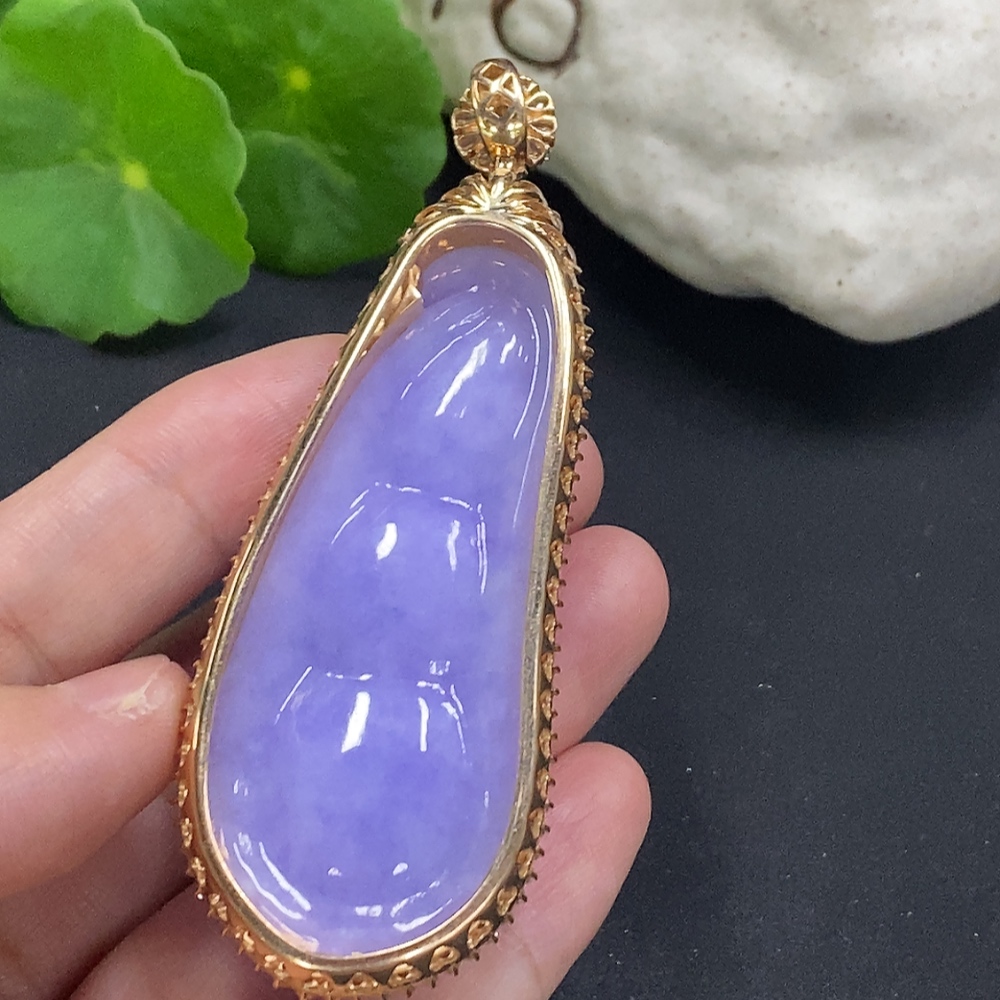 Jadeite Fu Dou Pendant Set in 18K Gold Total Weight Approx. 40.9g (With Diamond Accents)