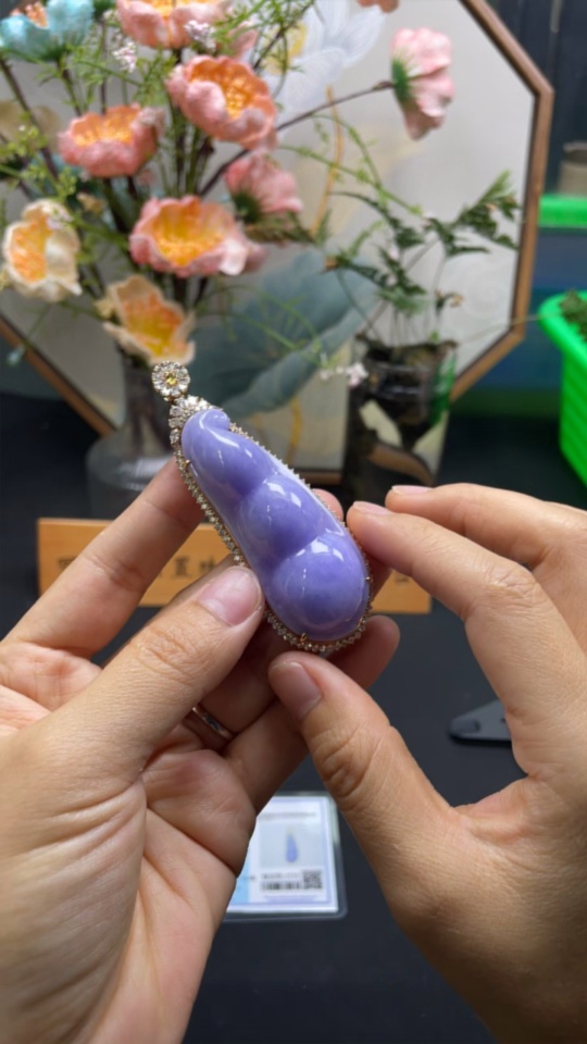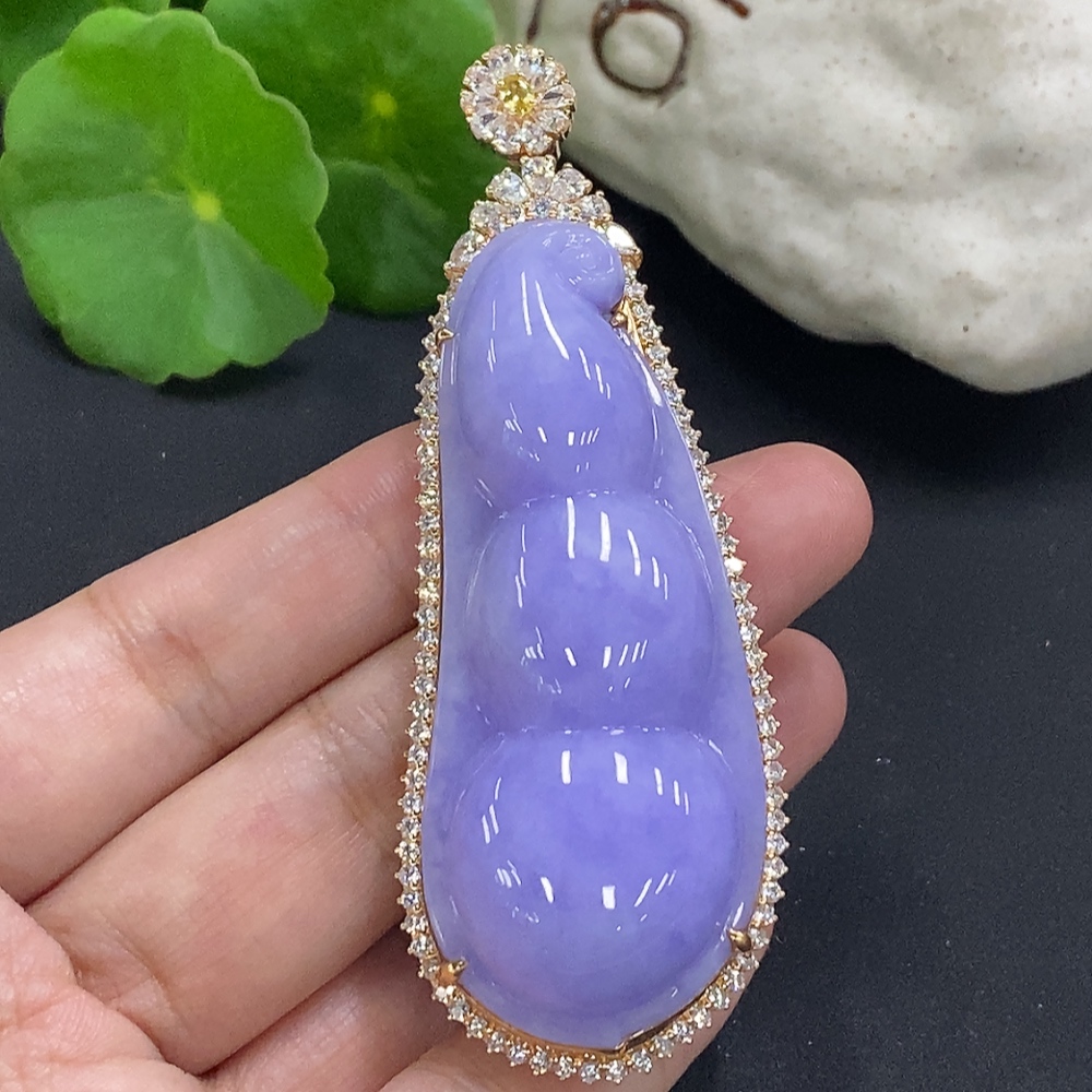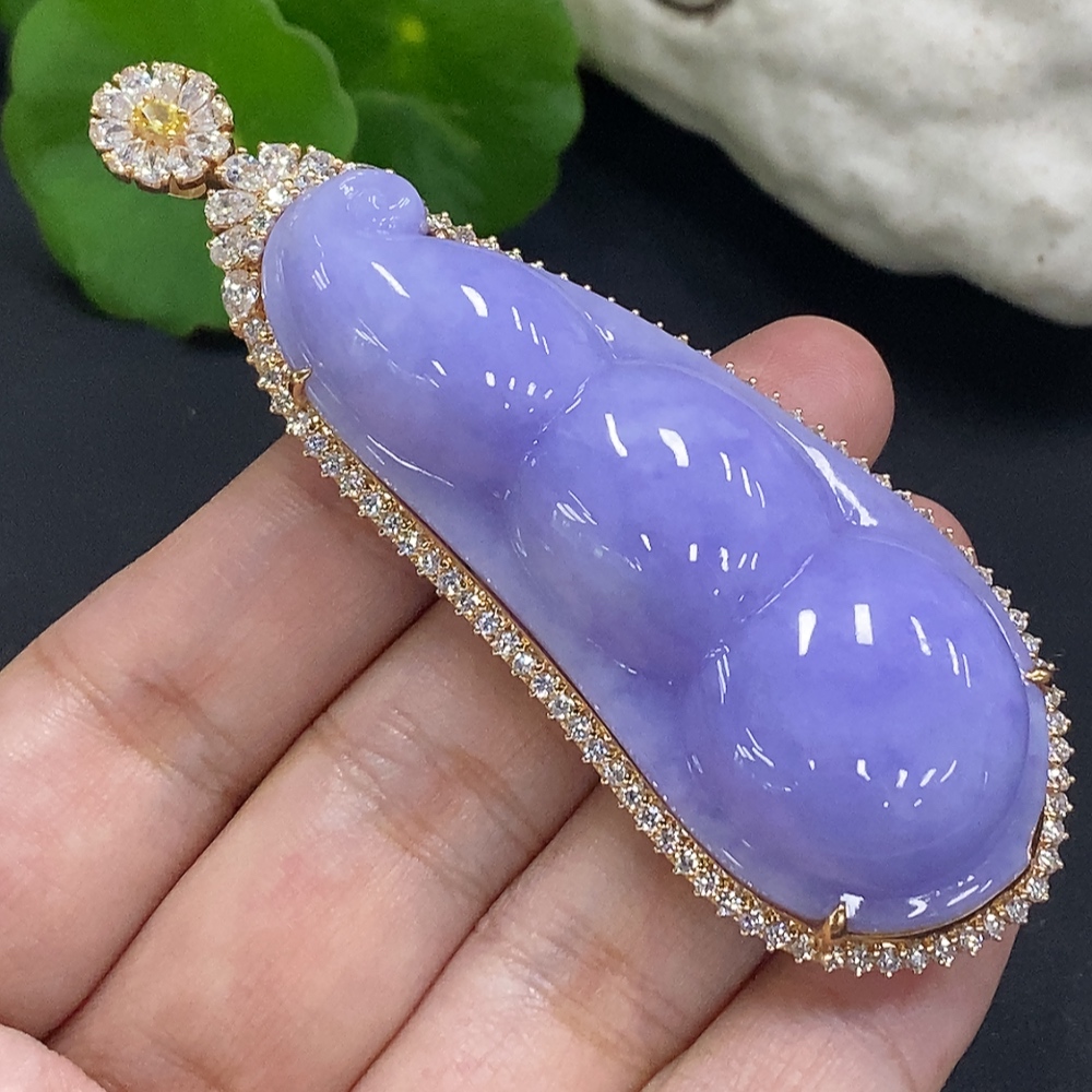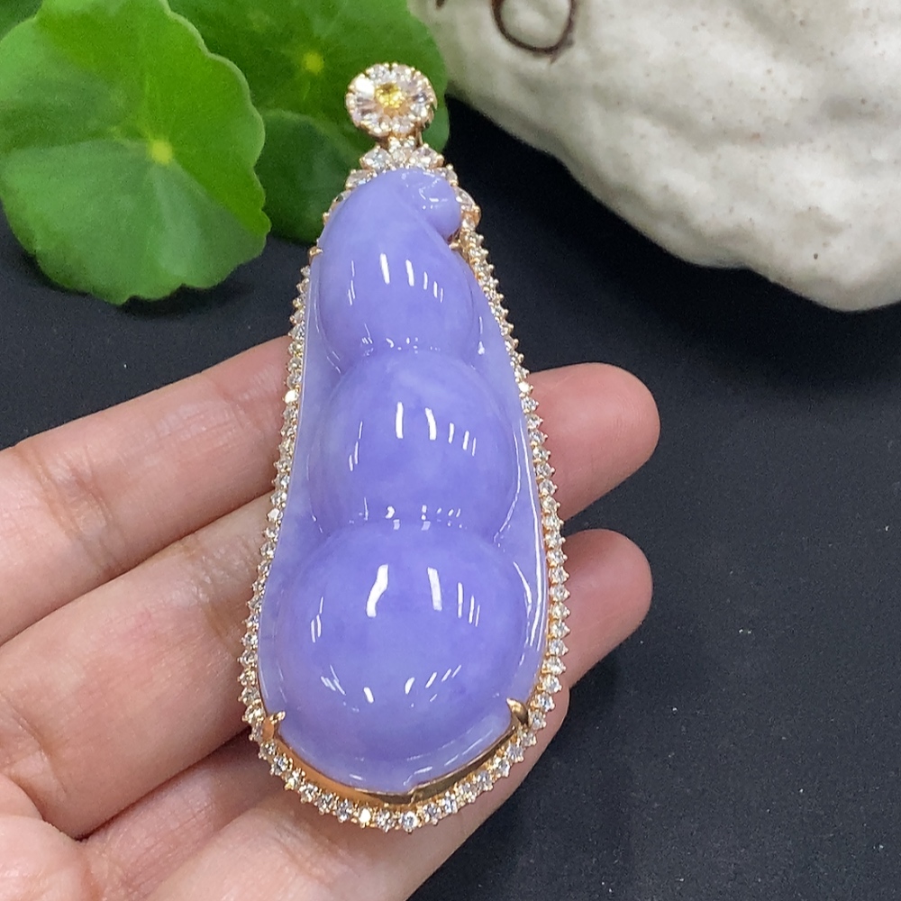 Jadeite Fu Dou Pendant Set in 18K Gold Total Weight Approx. 40.9g (With Diamond Accents)