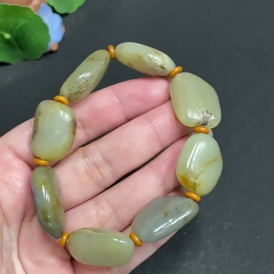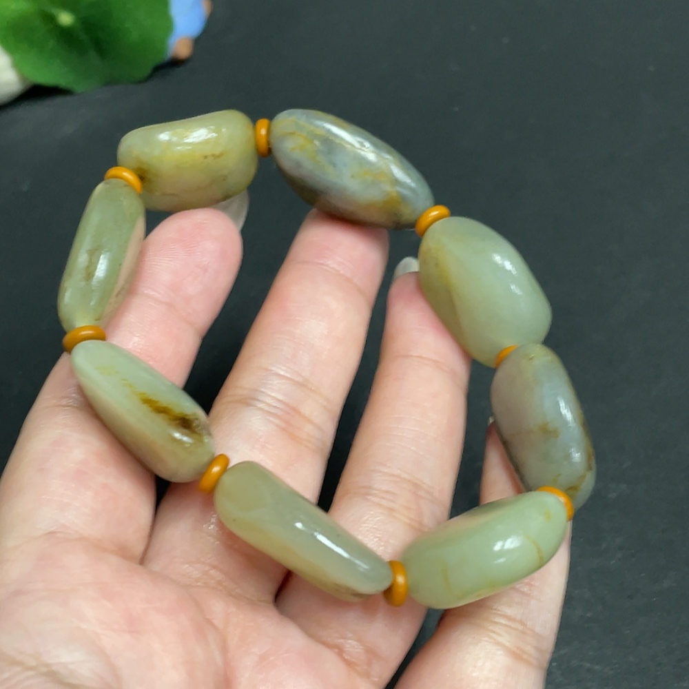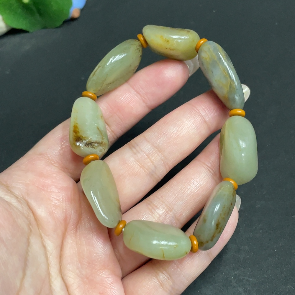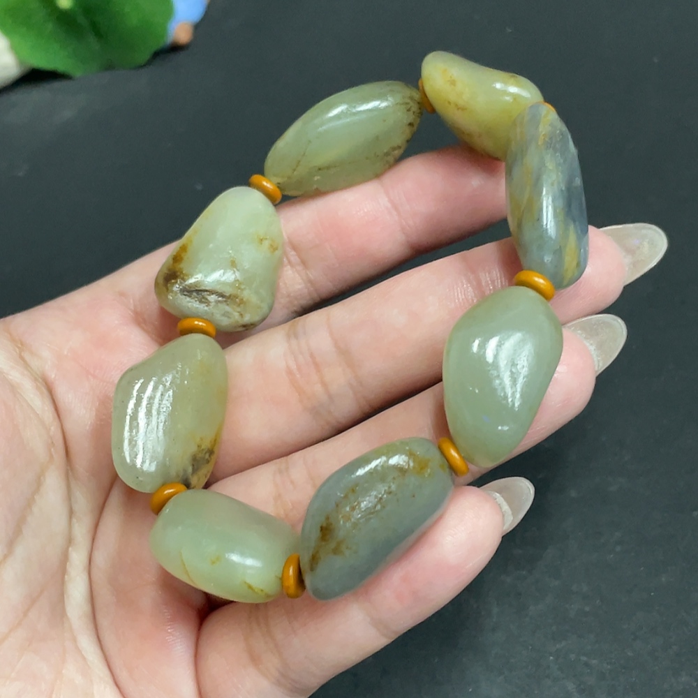 Hetian Jade Bracelet with Other Mineral Components, Undetermined Skin Color Origin, Total Weight Approx. 58.3g