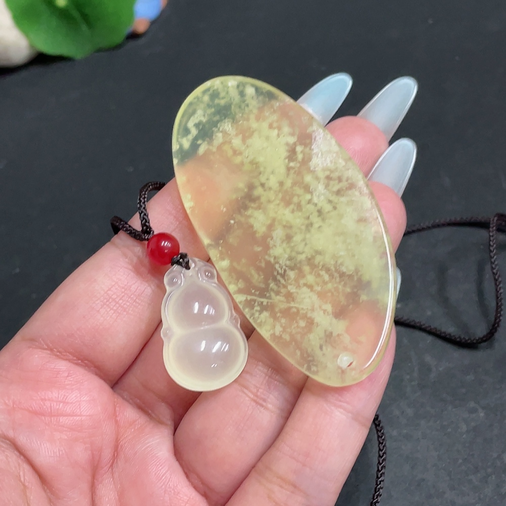 Xiuyu (Serpentine Jade) Pendant Gourd Plain Pendant Total Weight: approx. 26.5g [with string]