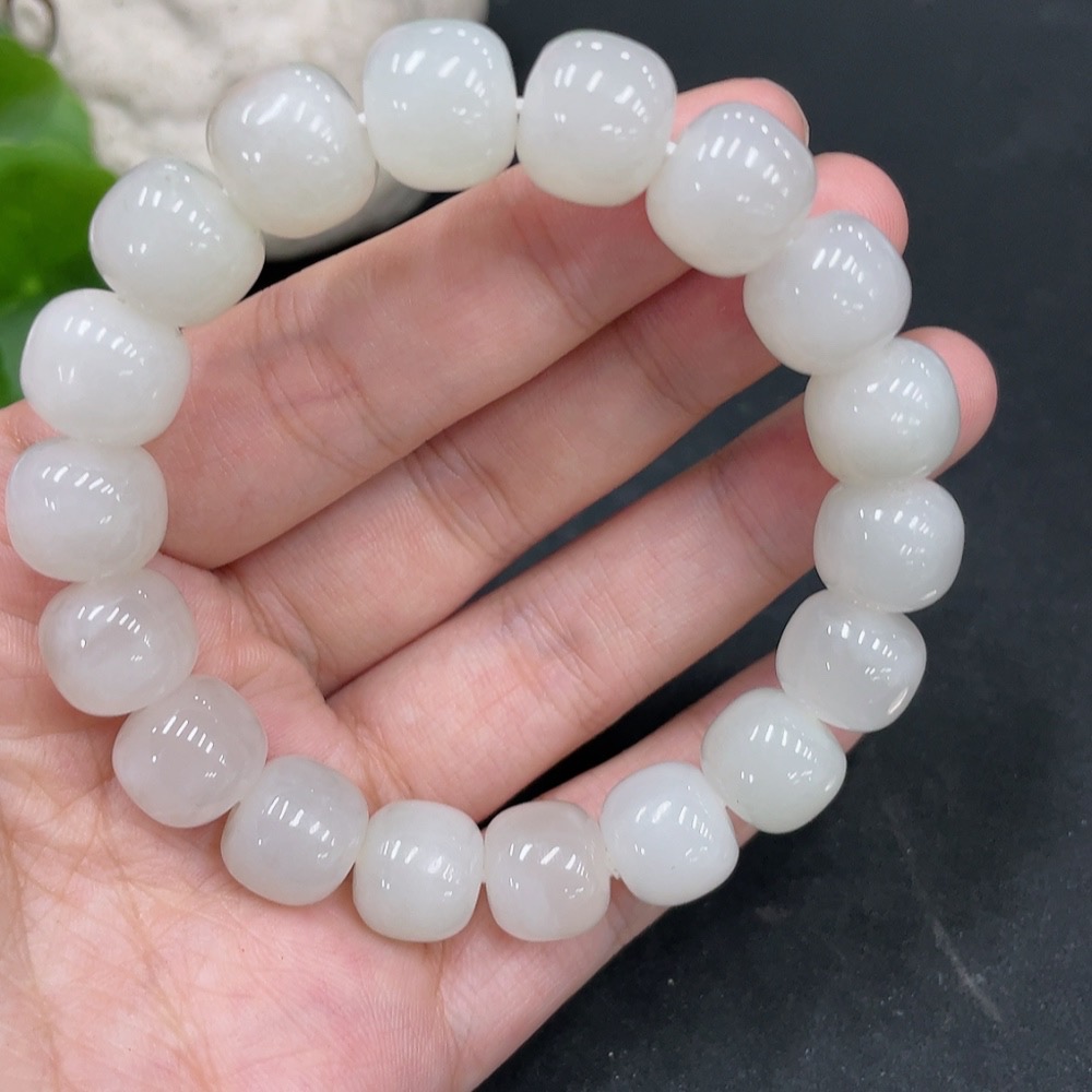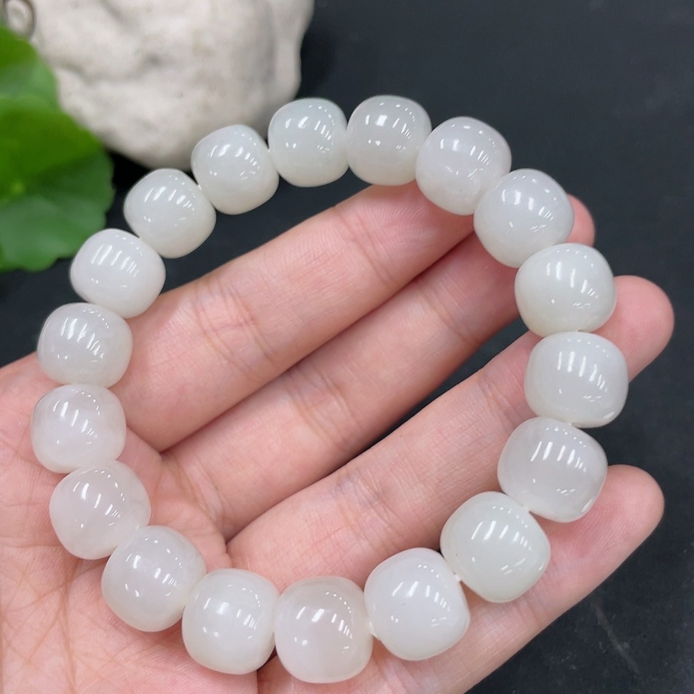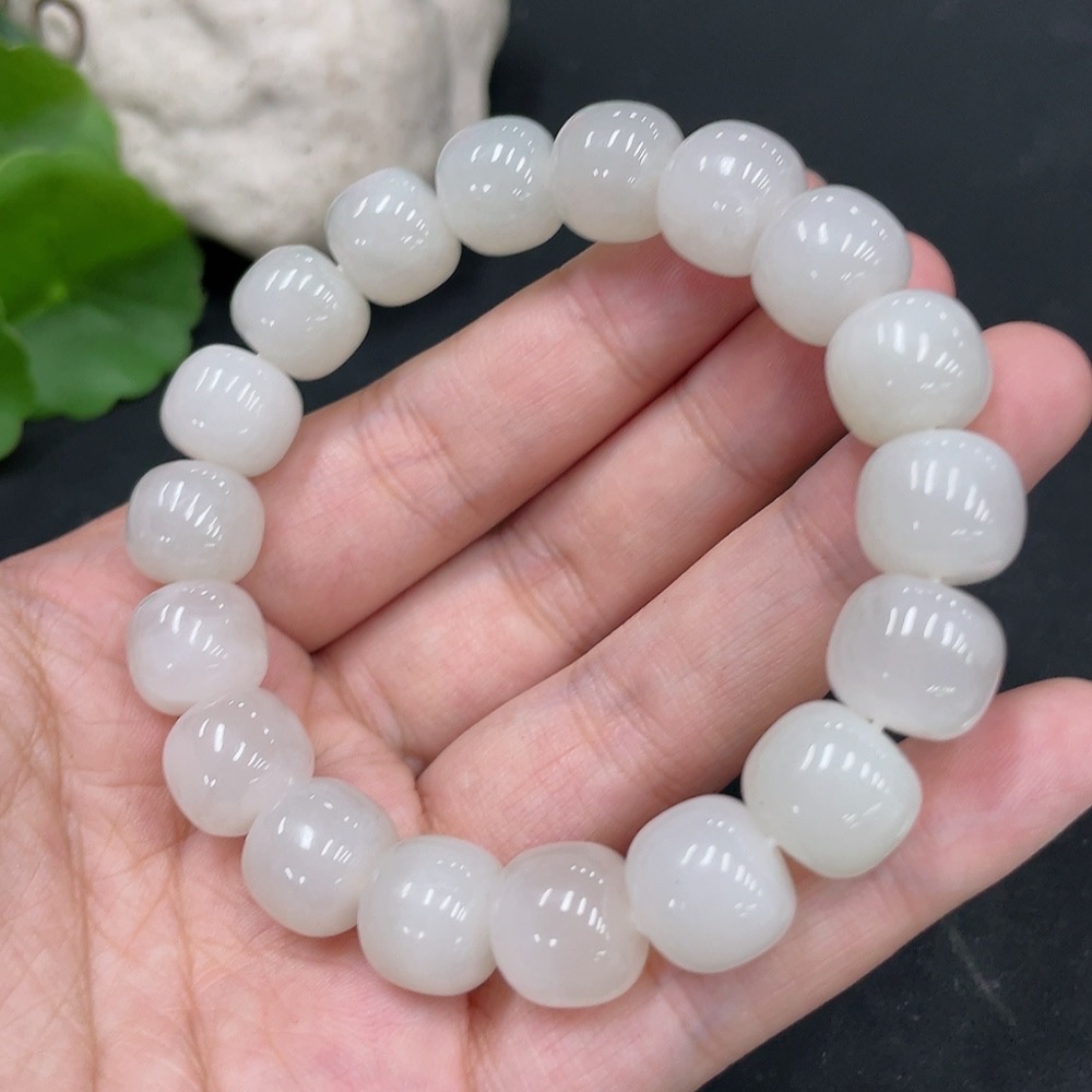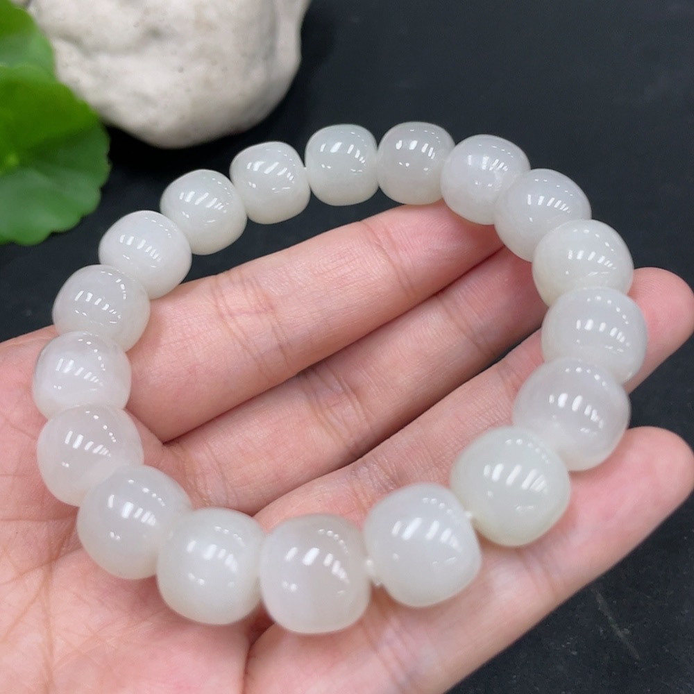 Hetian Jade Bracelet, Approx. 11.5mm Beads, Undetermined Skin Color Origin, Total Weight Approx. 48.6g