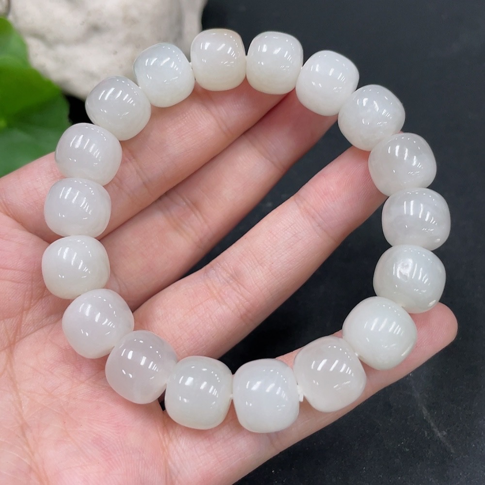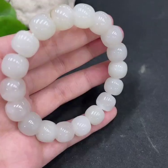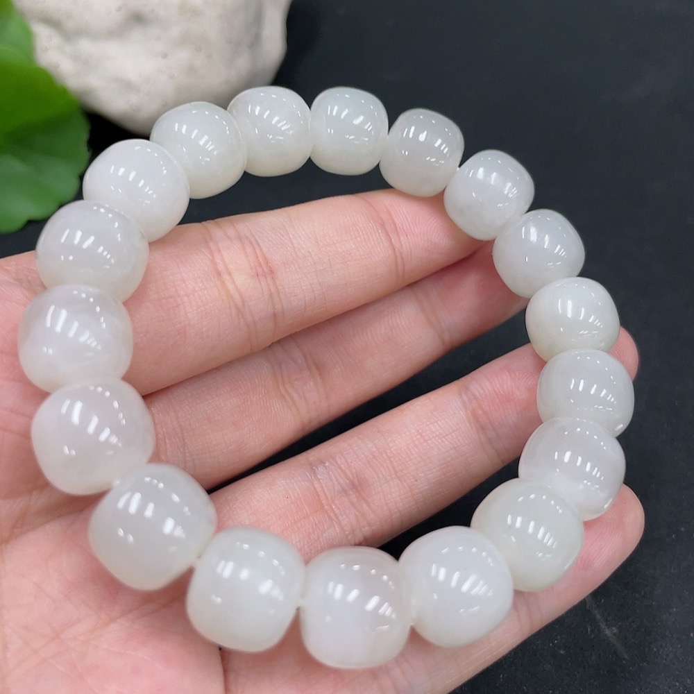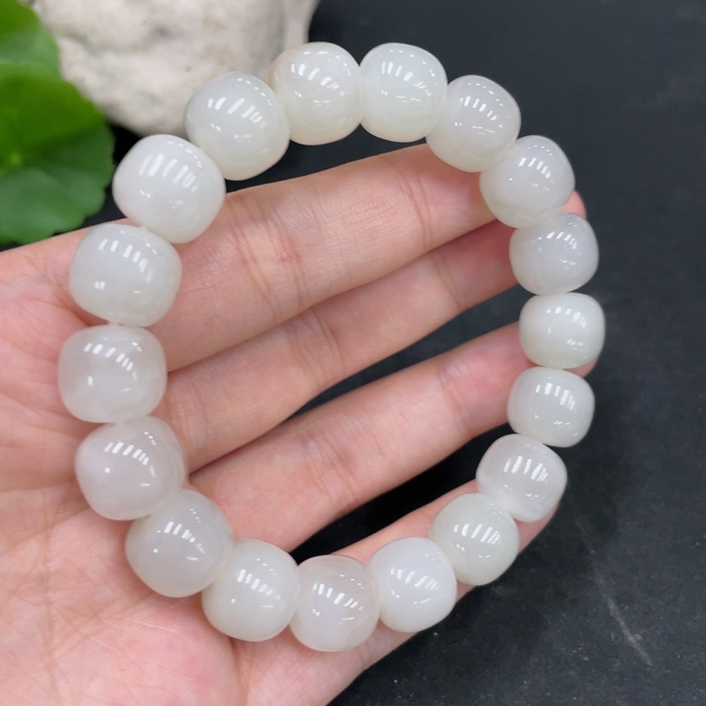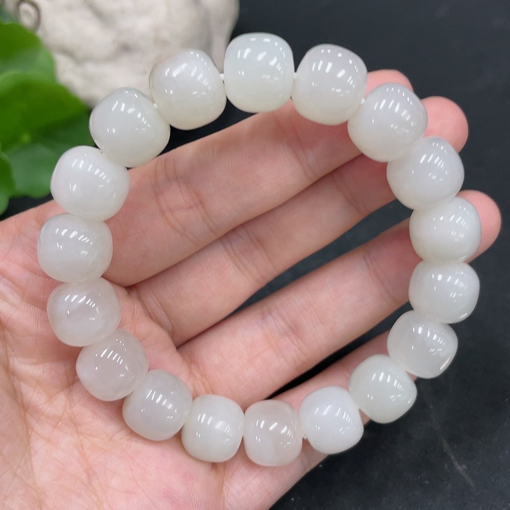 Hetian Jade Bracelet, Approx. 11.5mm Beads, Undetermined Skin Color Origin, Total Weight Approx. 48.6g