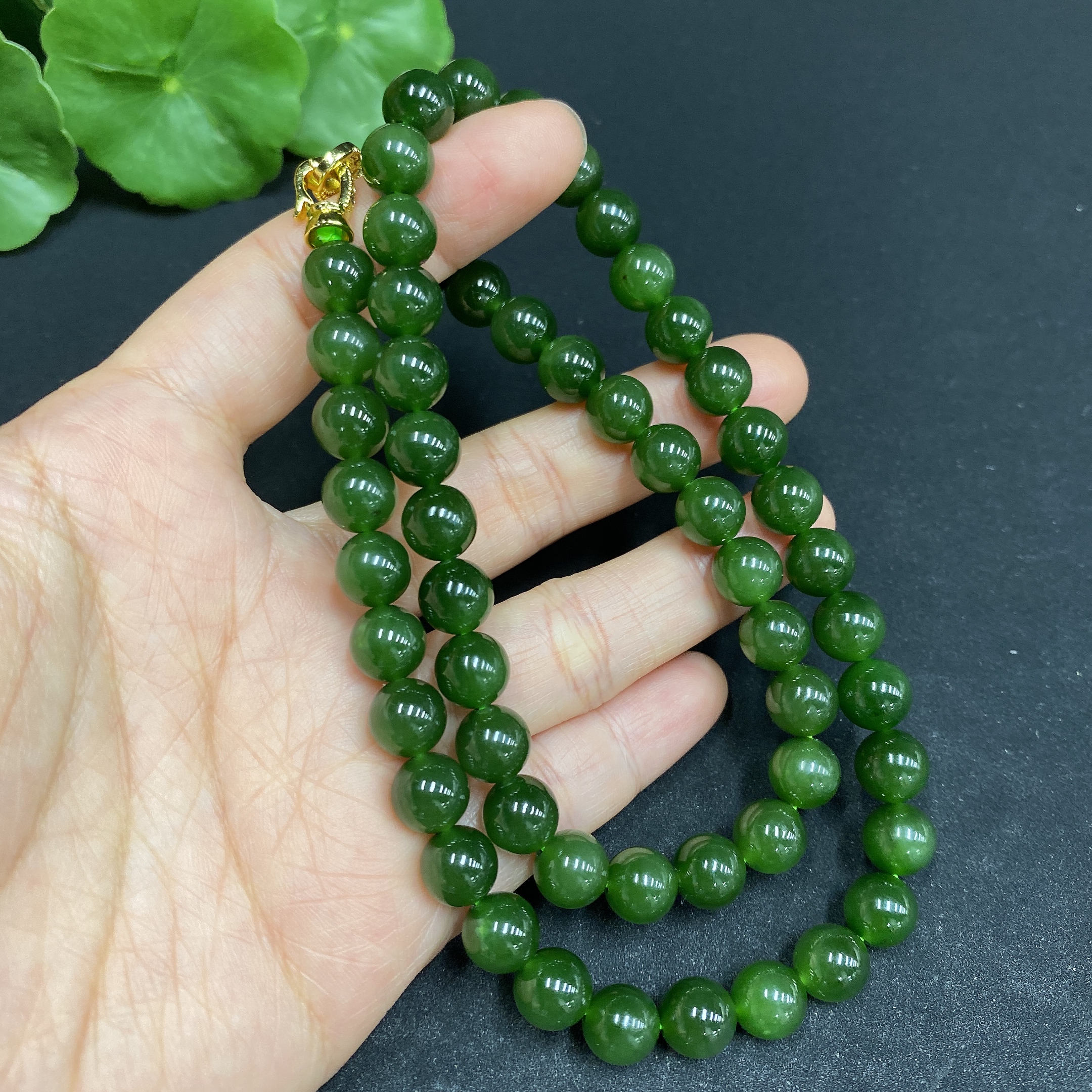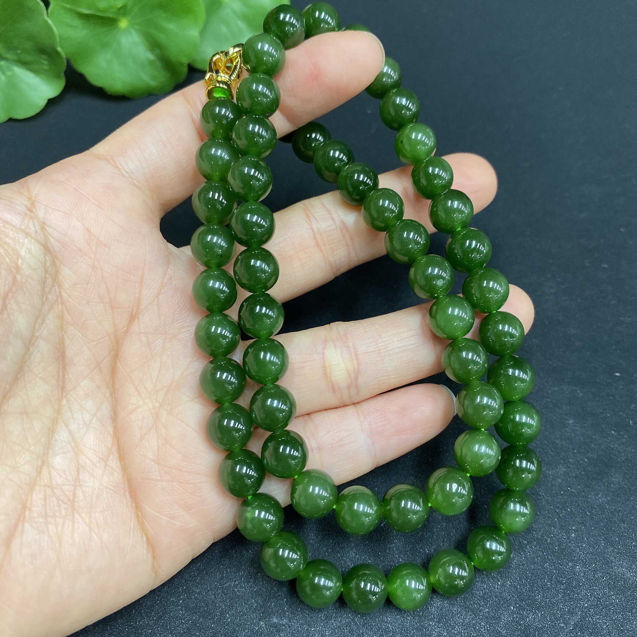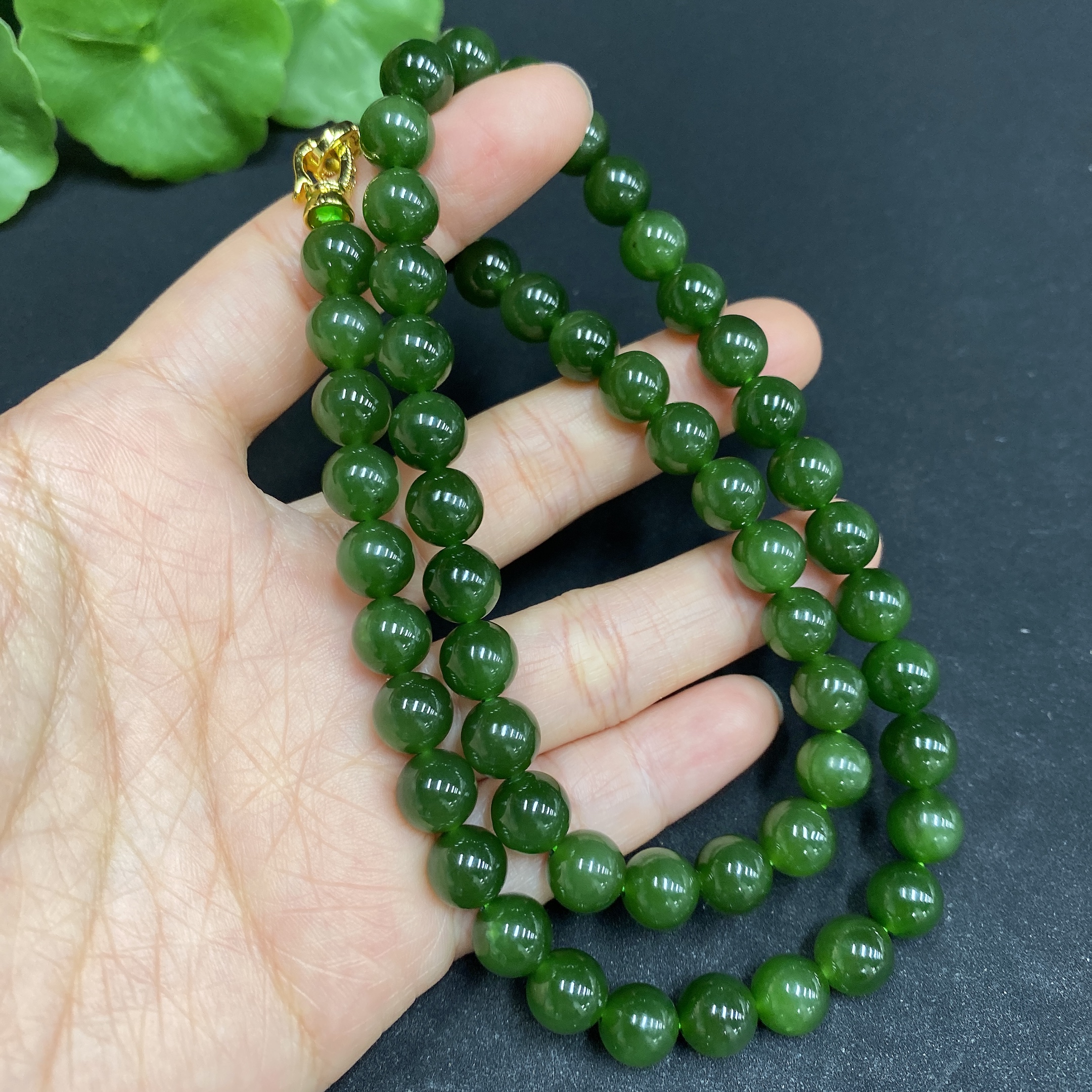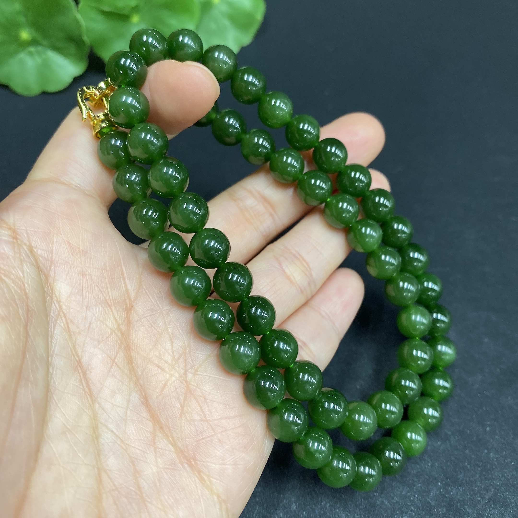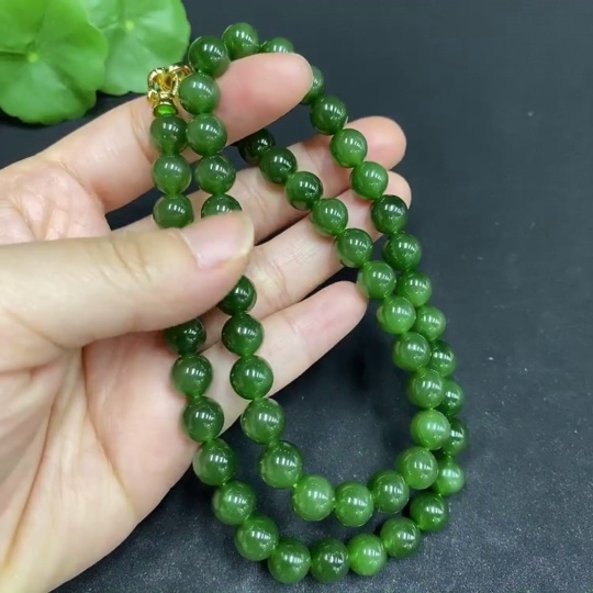 Hetian Jade Bead Necklace Approx.7.9mm Non-Gold-Inlaid Total Weight Approx.48.7g
