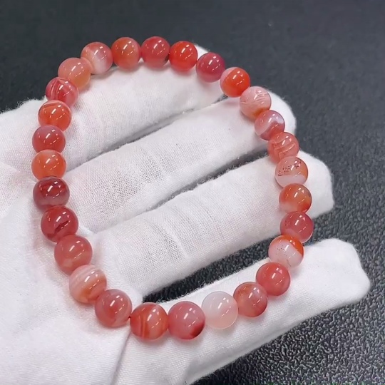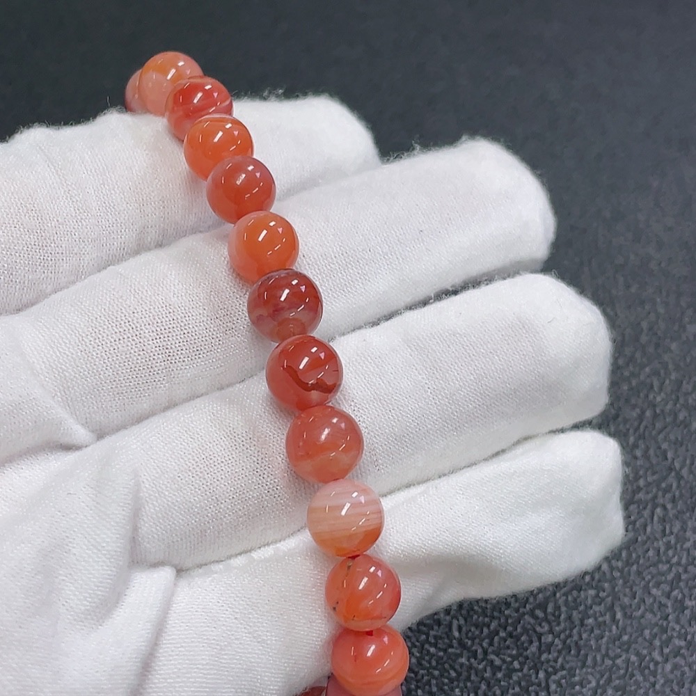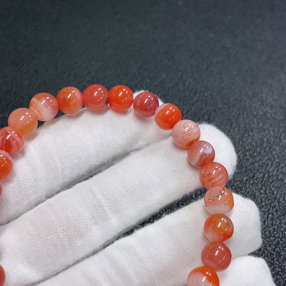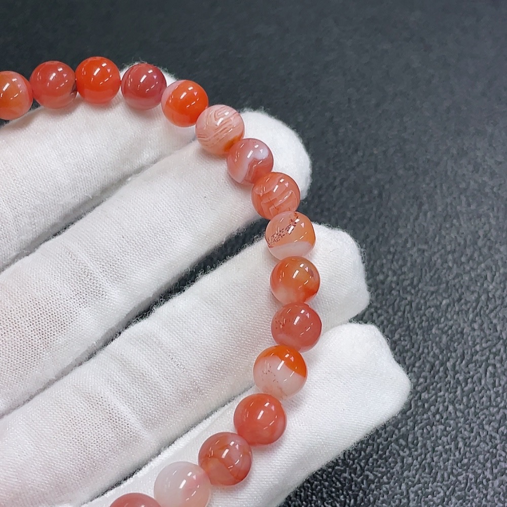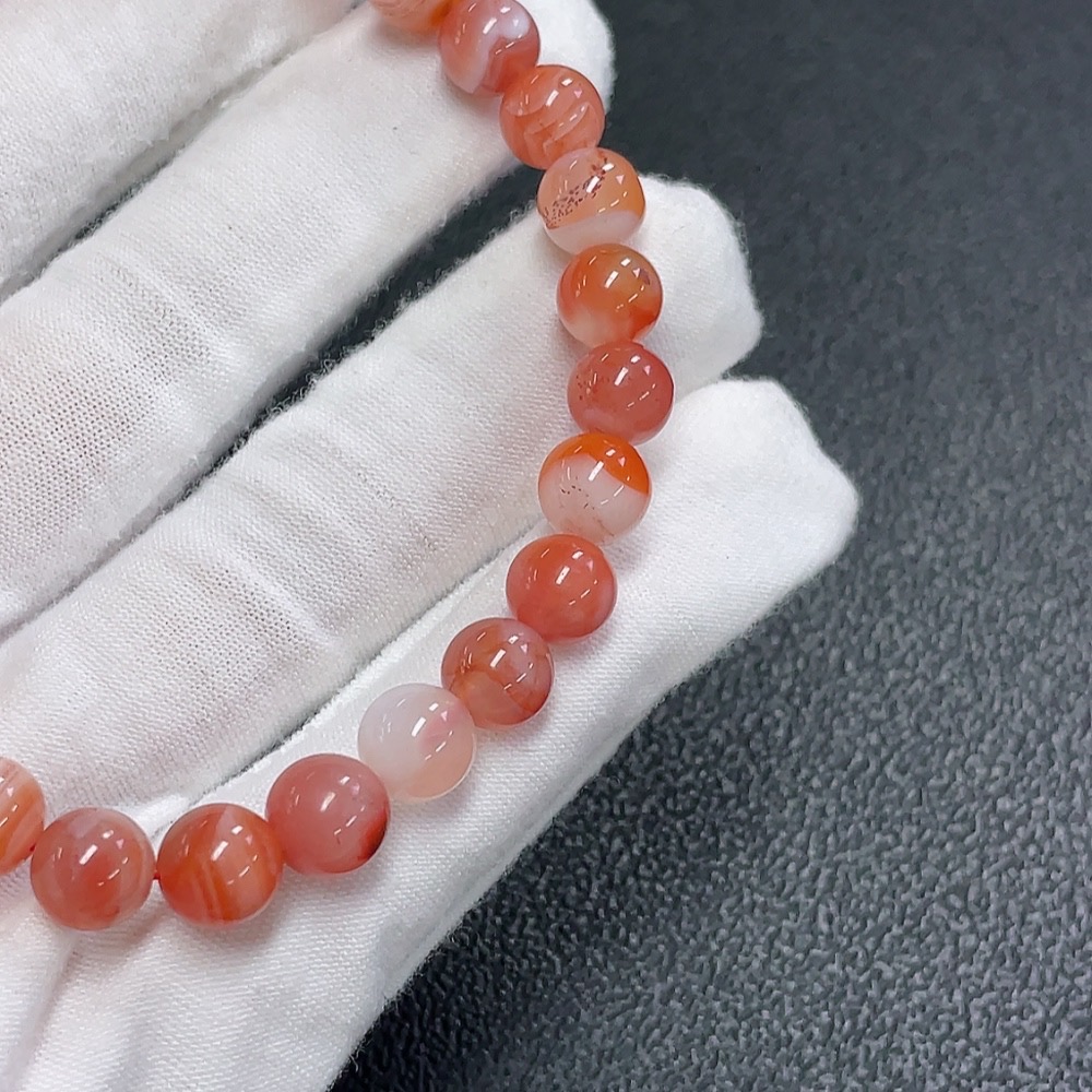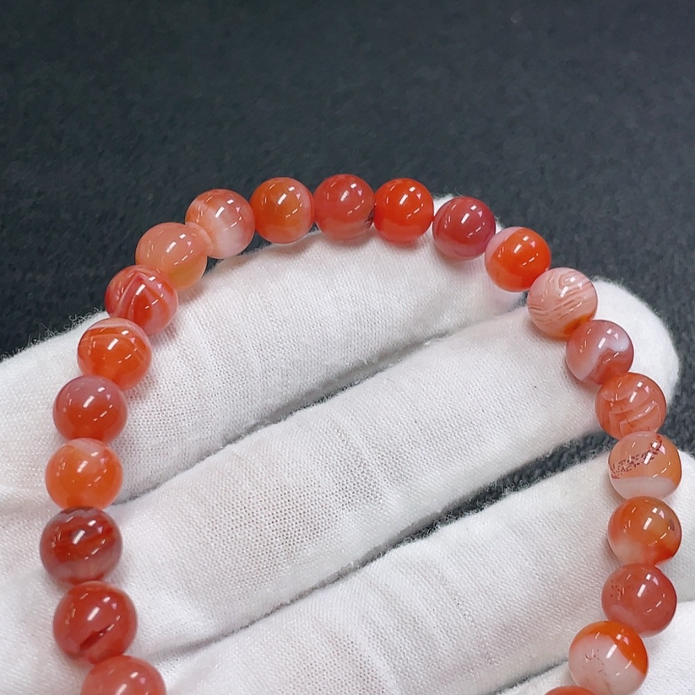 Red Agate Bracelet with Visible Organic Matter, Total Weight Approx. 20.7g, Size About 8.2mm