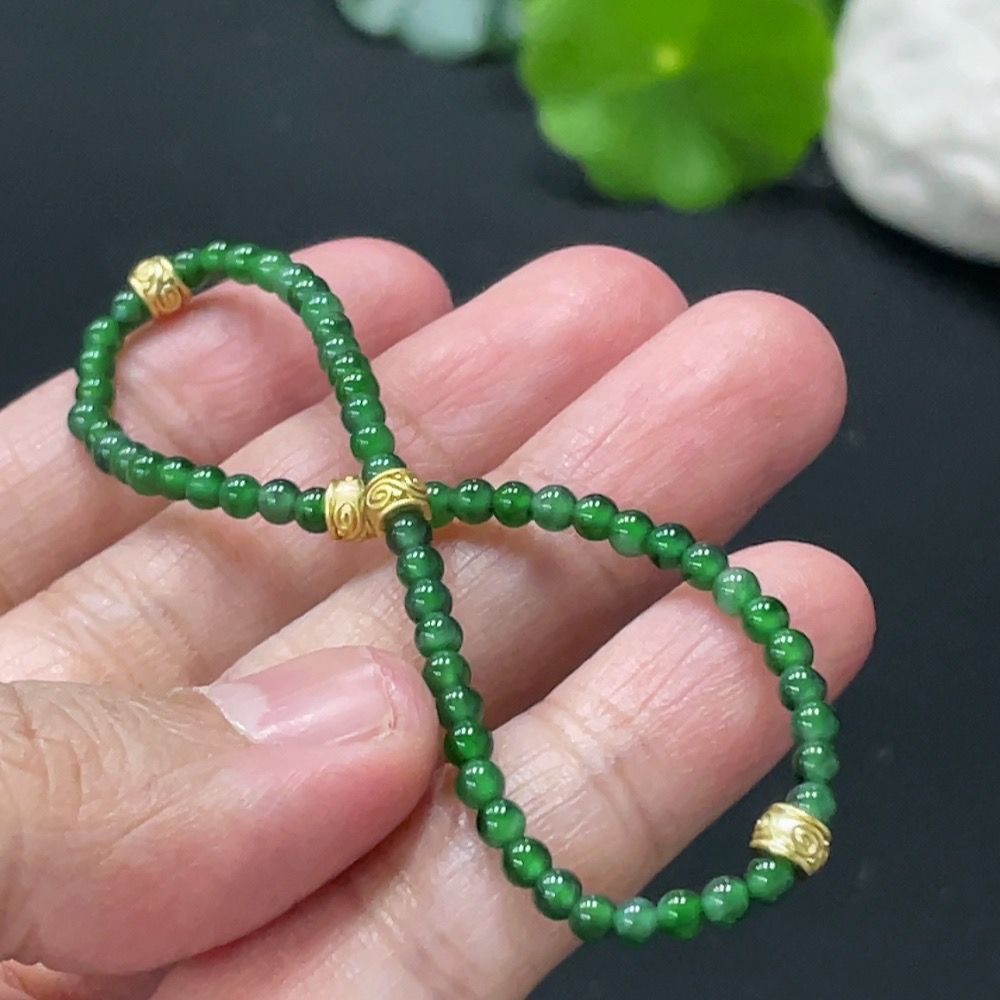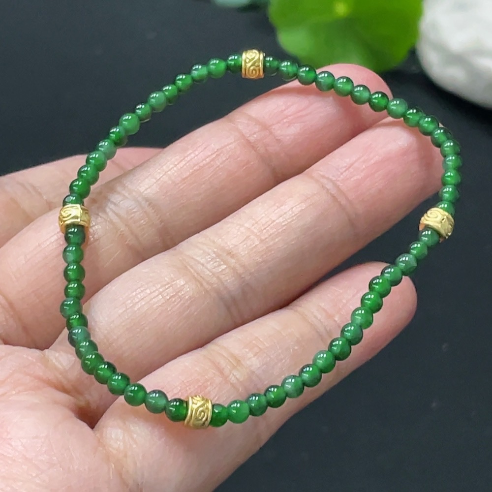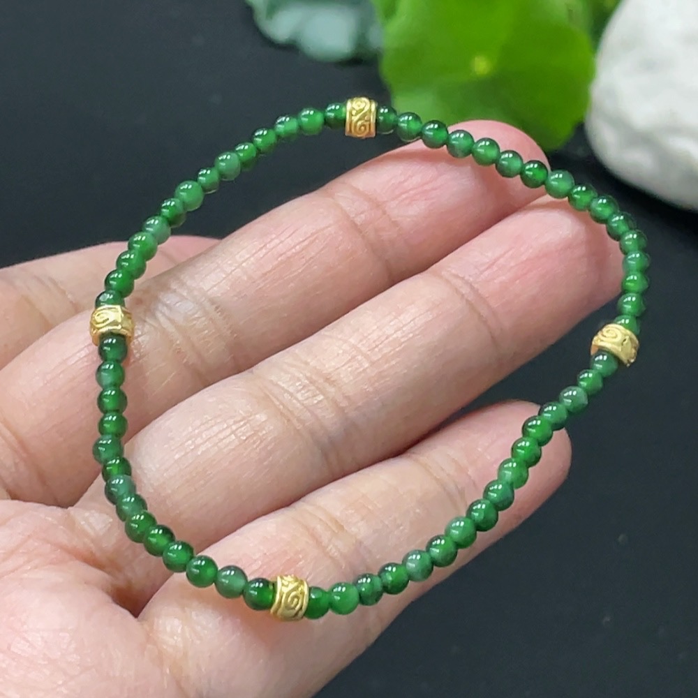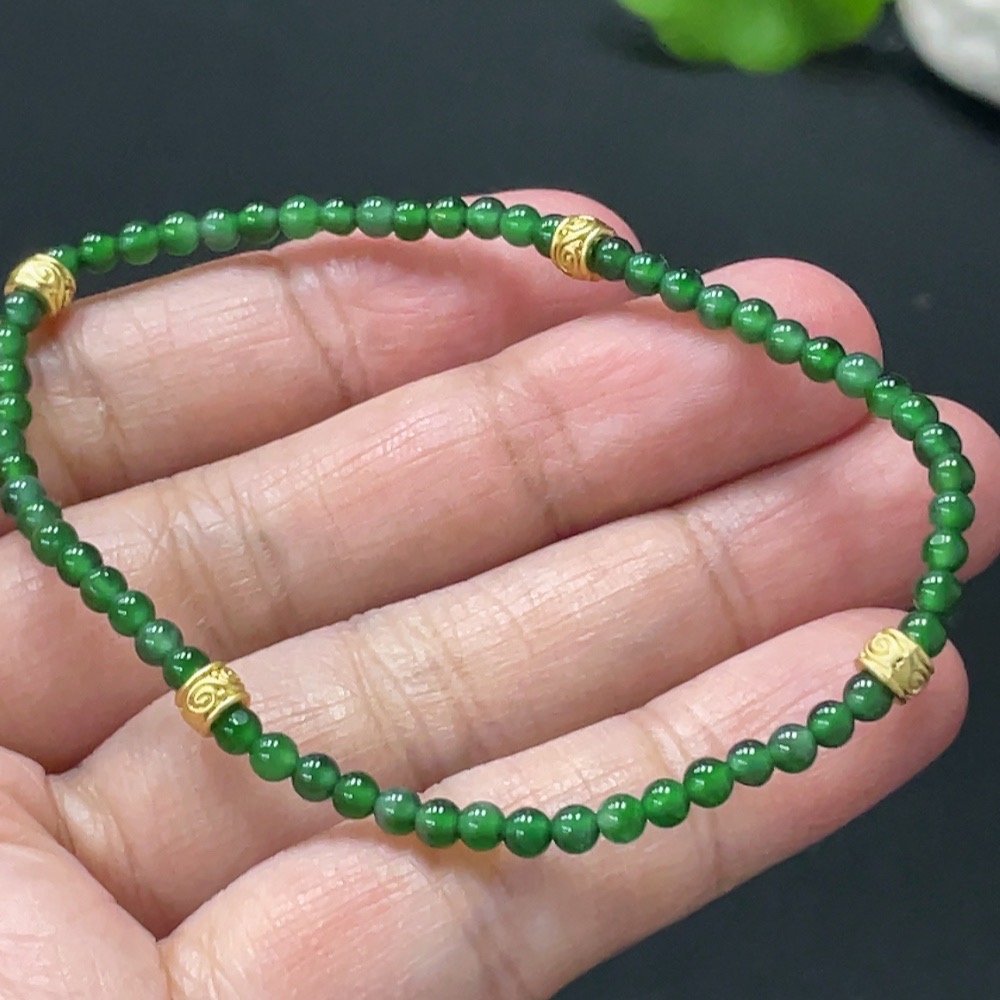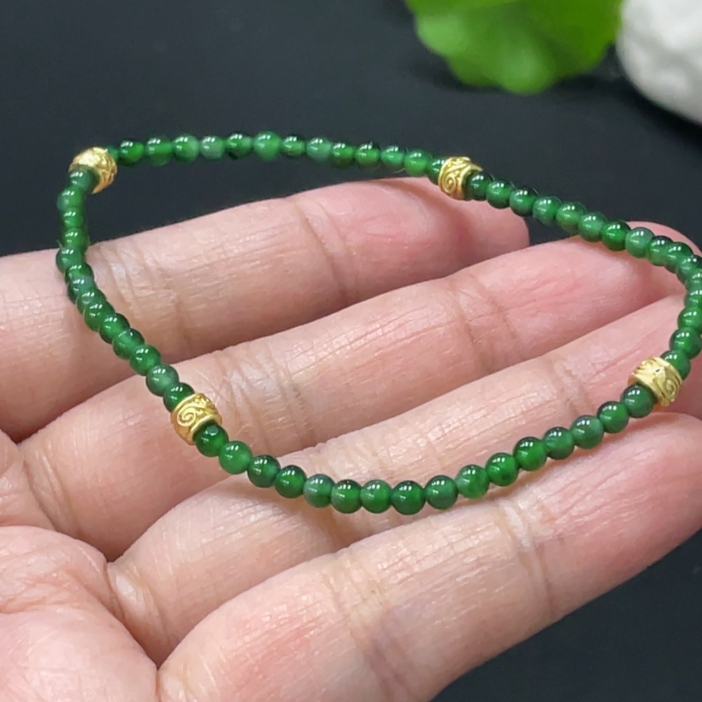 Jadeite Bracelet, Approx. 3mm Beads, Total Weight Approx. 3g, Non-Gold Accessories