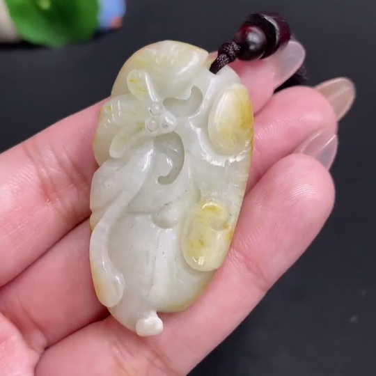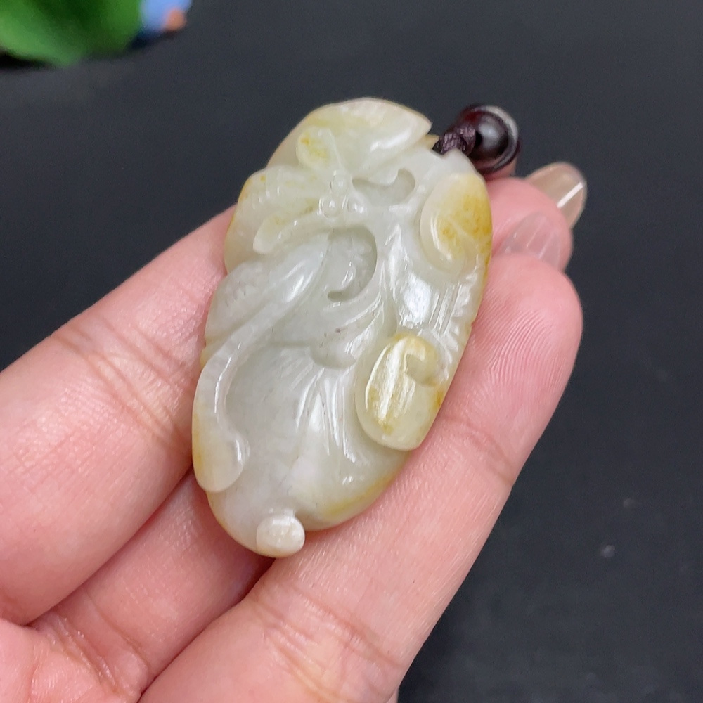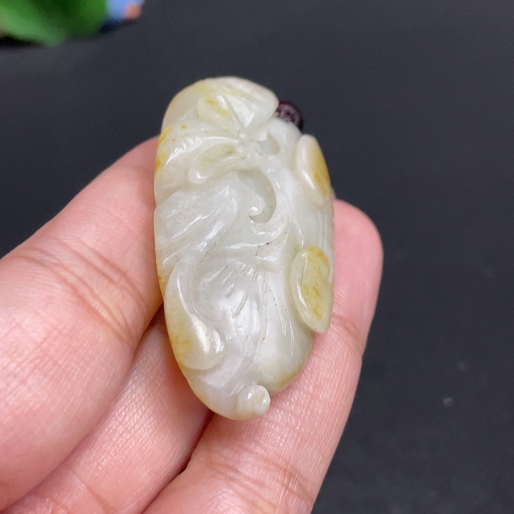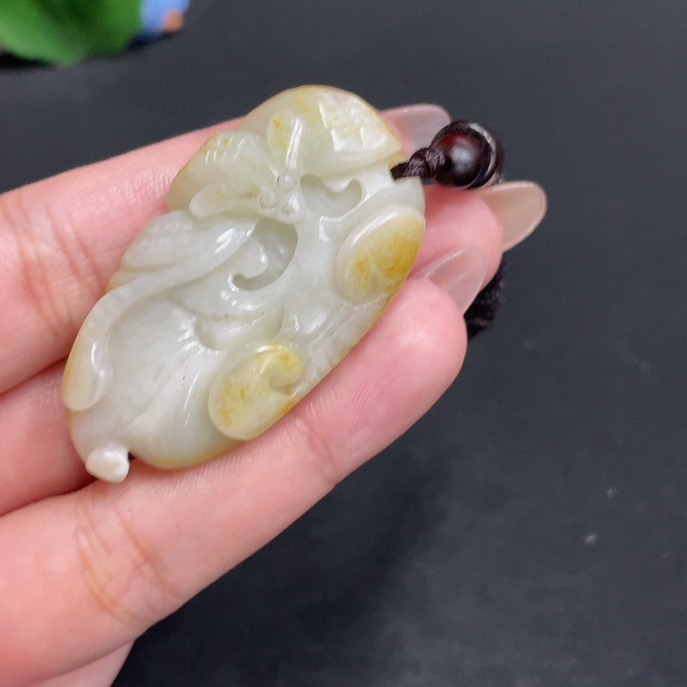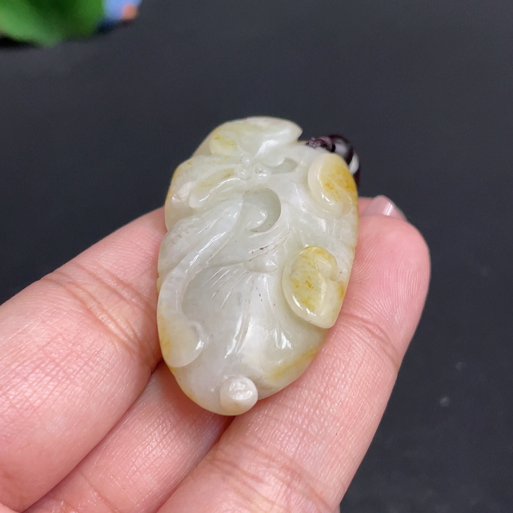 Hetian Jade Pendant Ruyi Total Weight (with rope): approx. 27.4g Containing other mineral components Undetermined cause of skin color