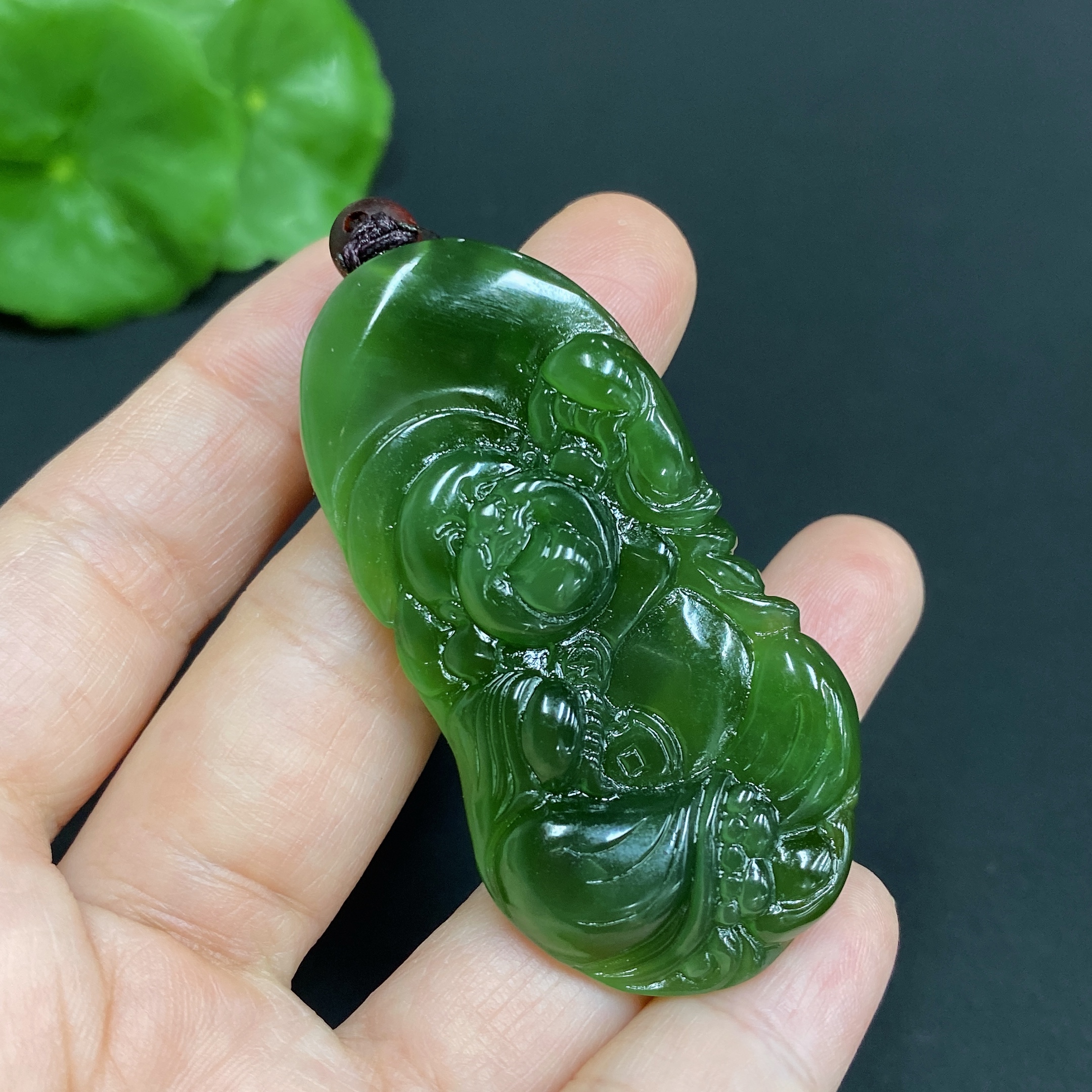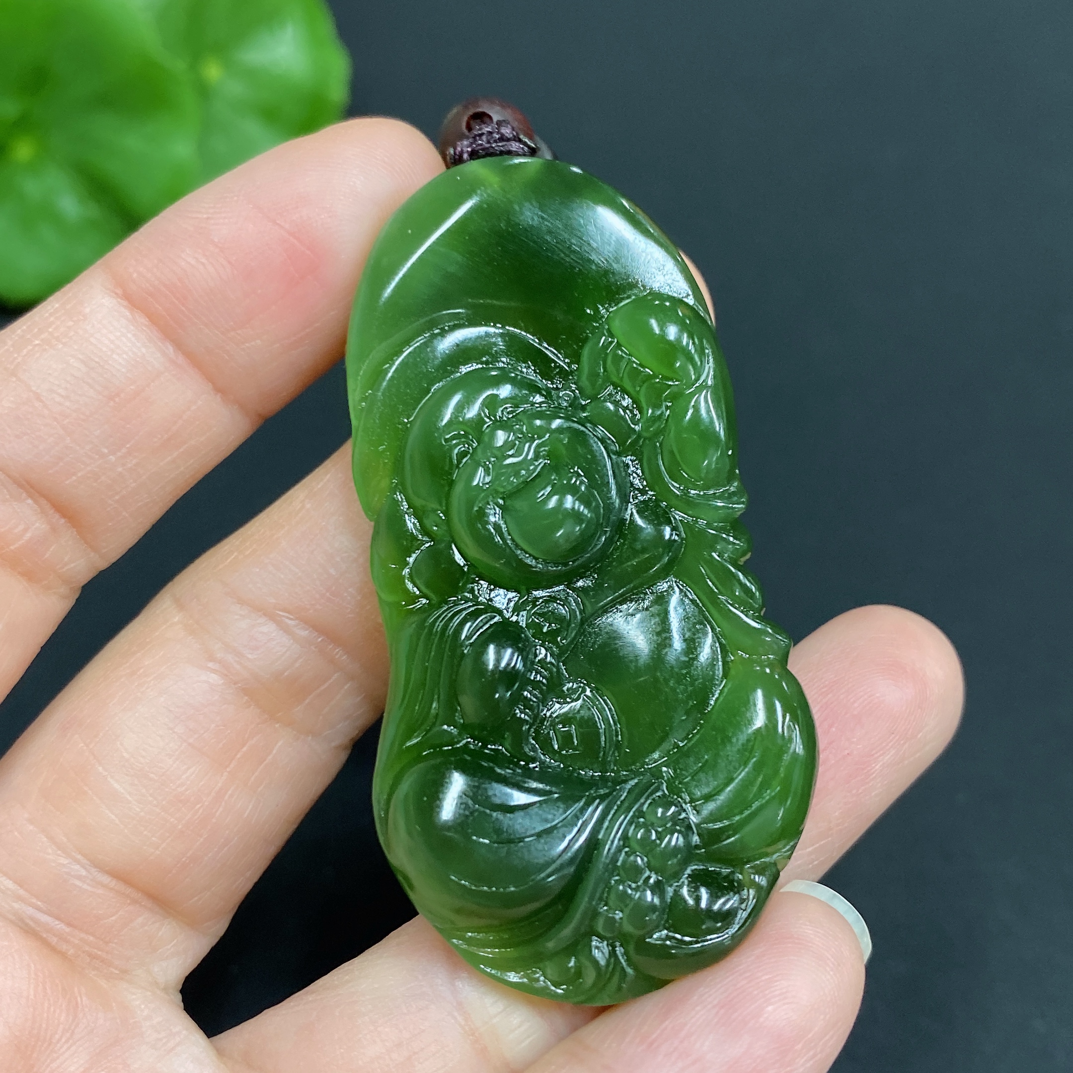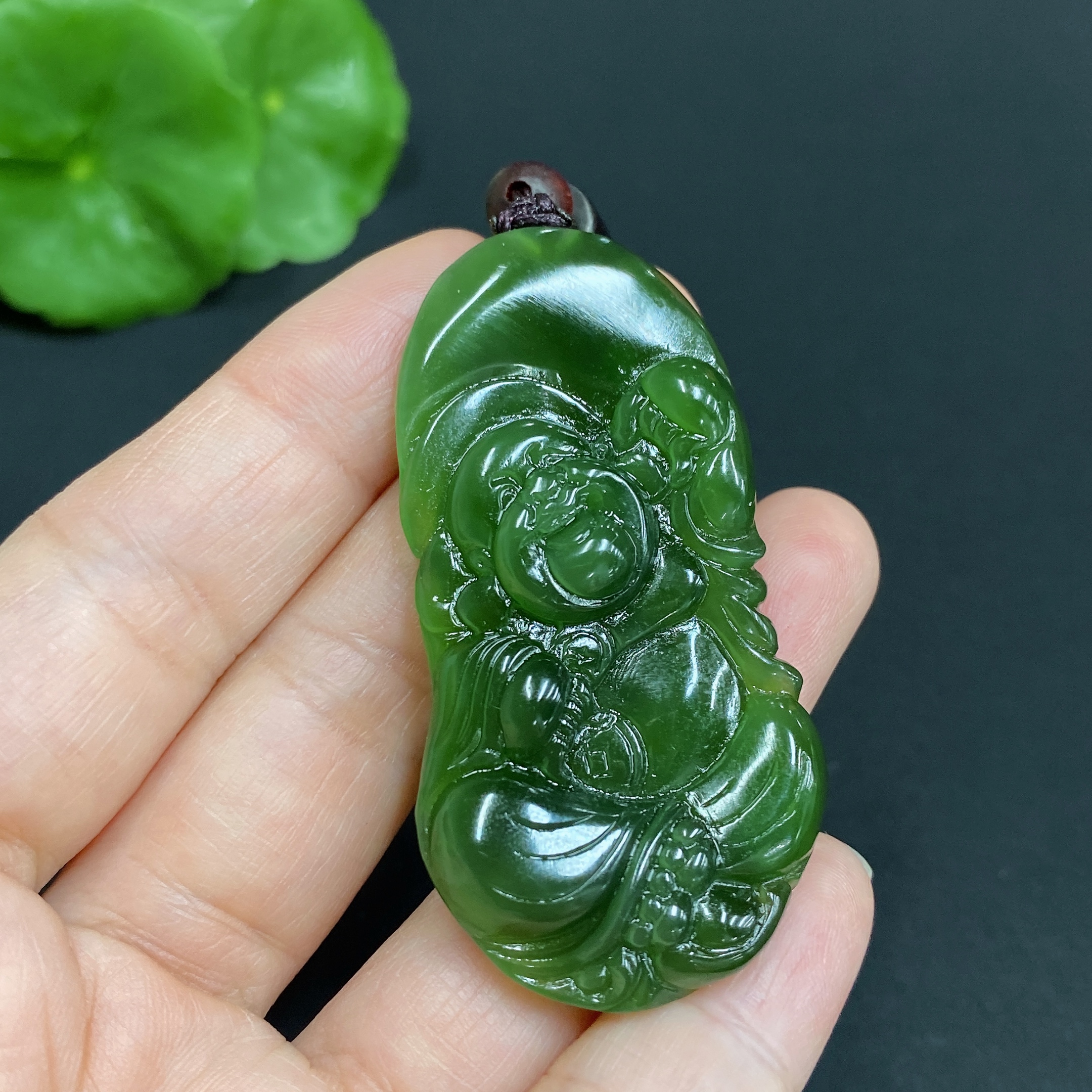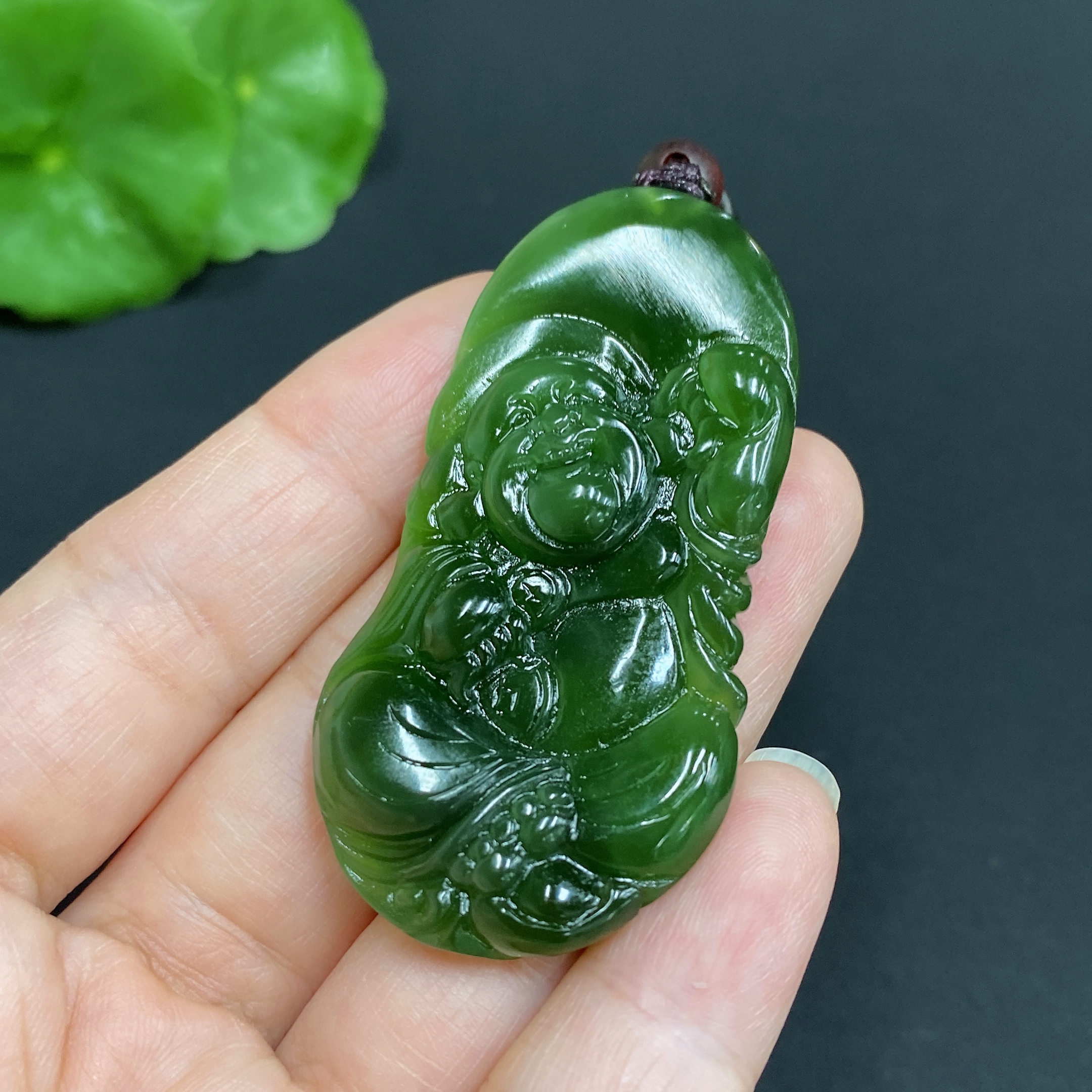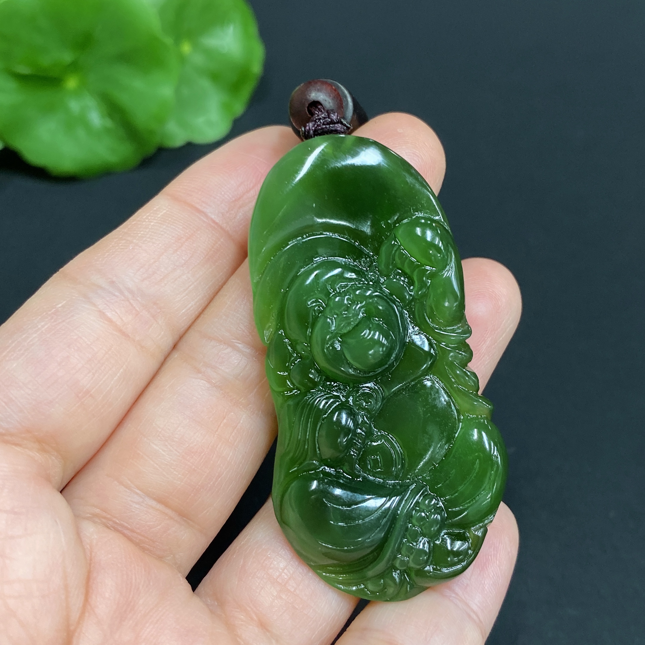 Hetian Jade Pendant, Buddha Figure, Total Weight (including rope) Approx. 17.3g