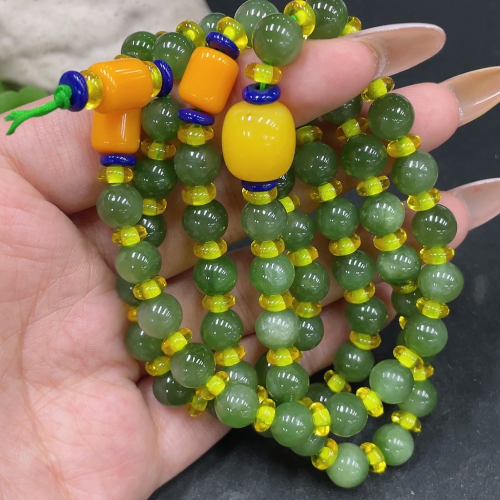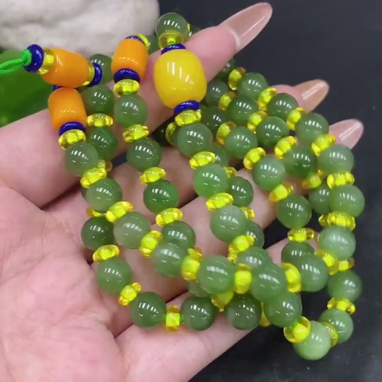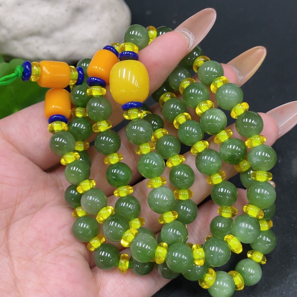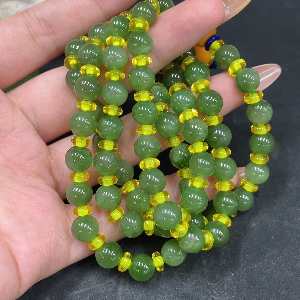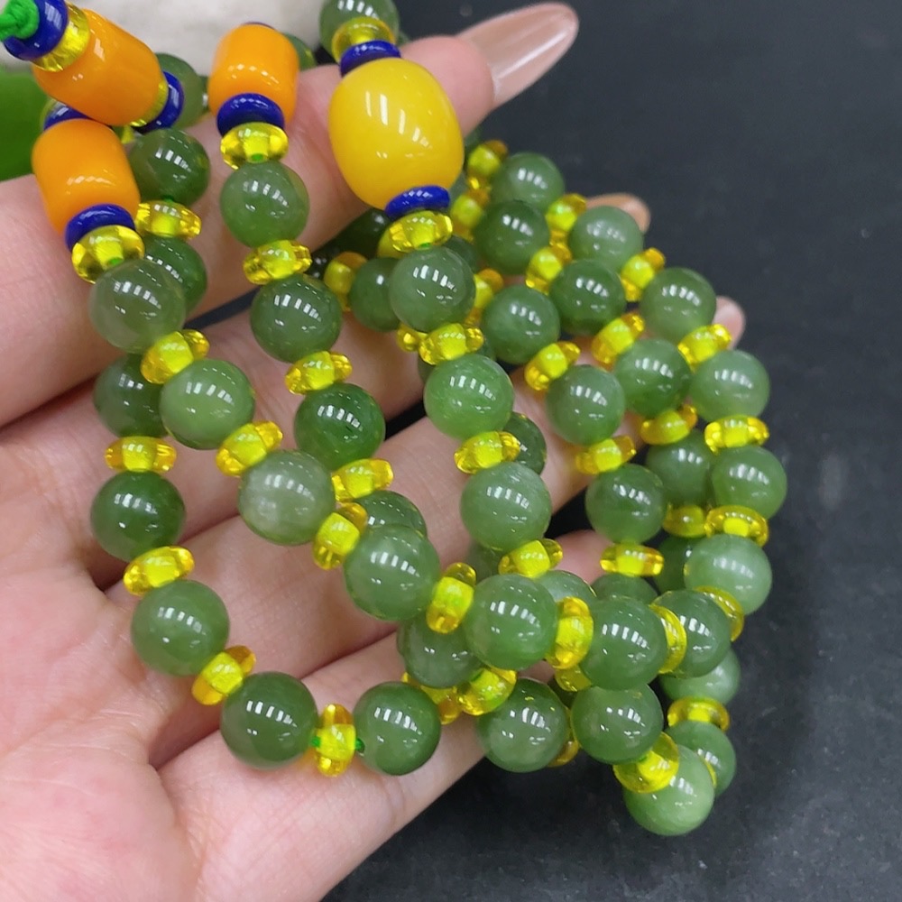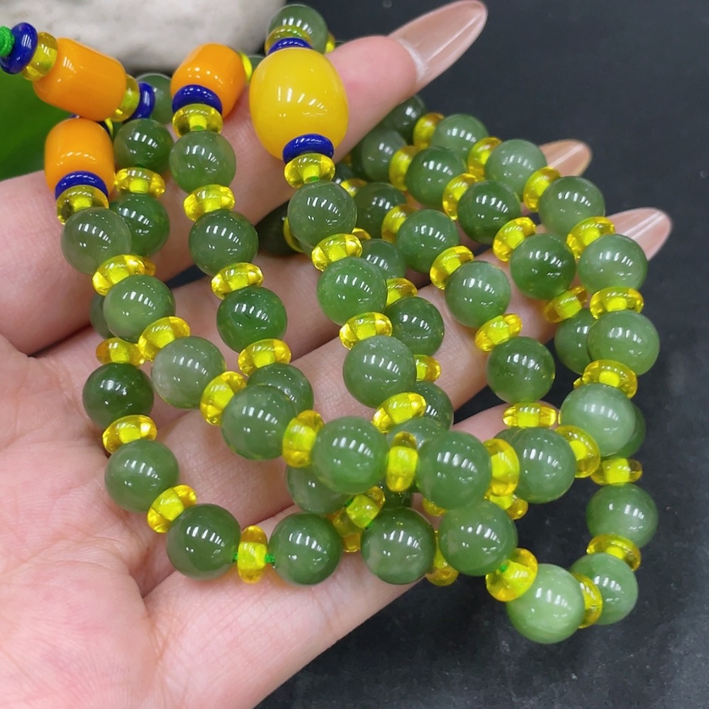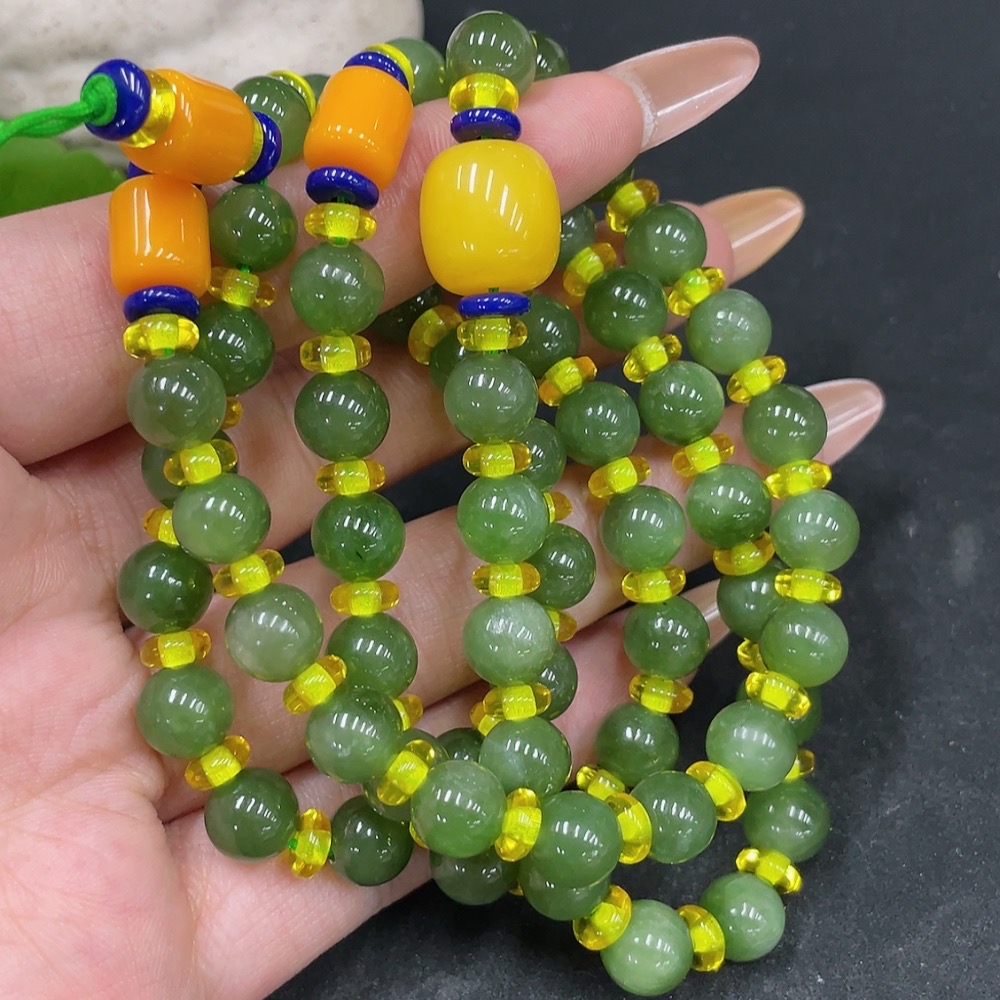 Hetian Jade Bead Necklace, Approx. 7.5mm Beads, Non-Hetian Jade Accent Beads, Total Weight Approx. 57.3g