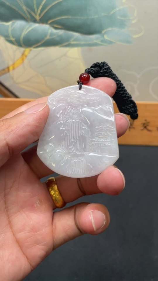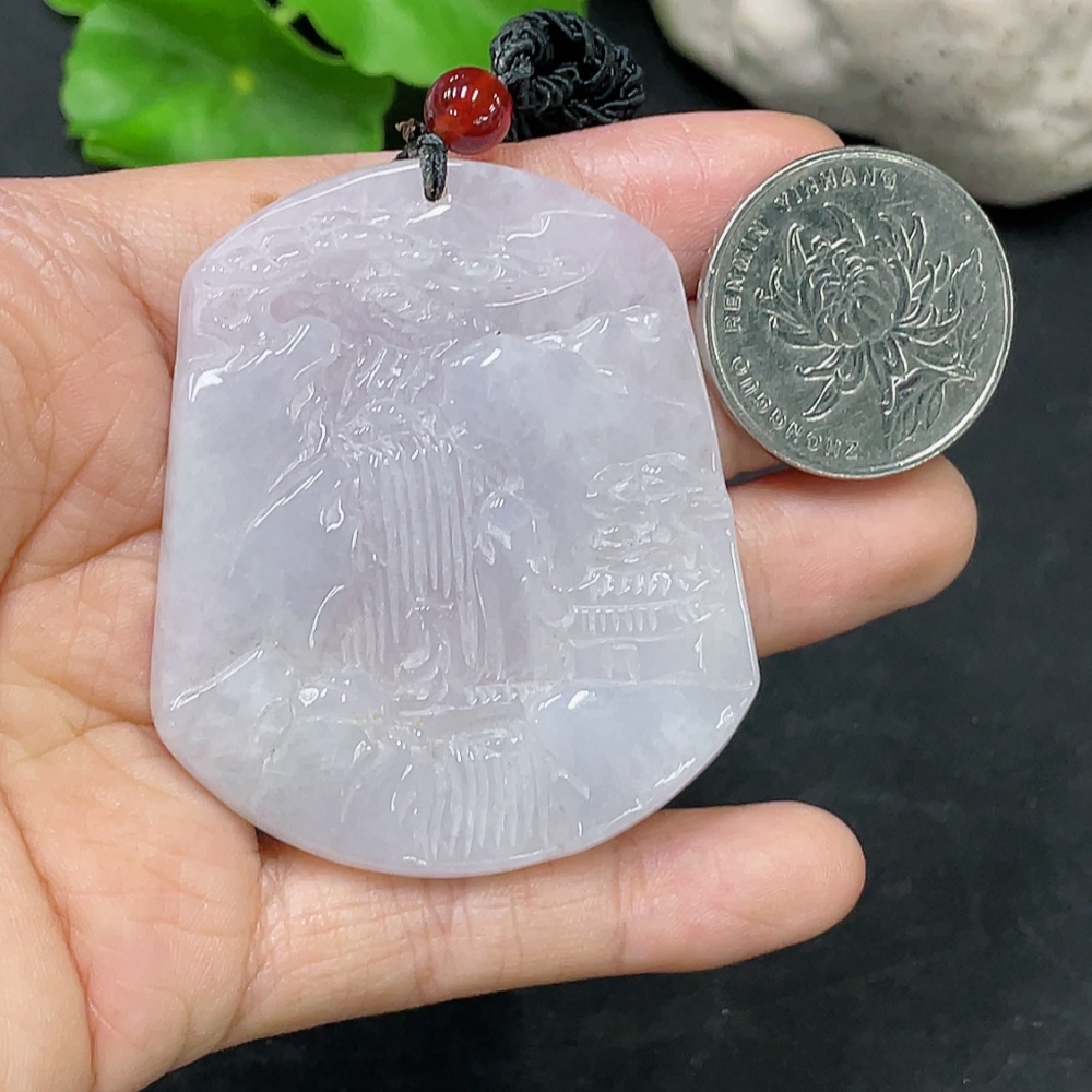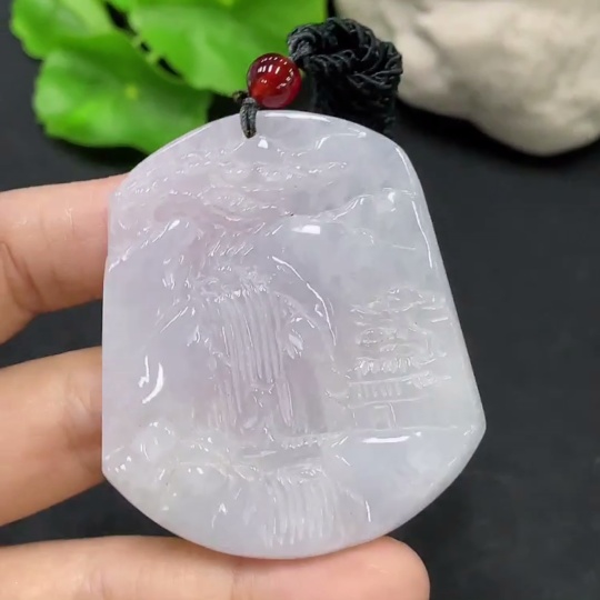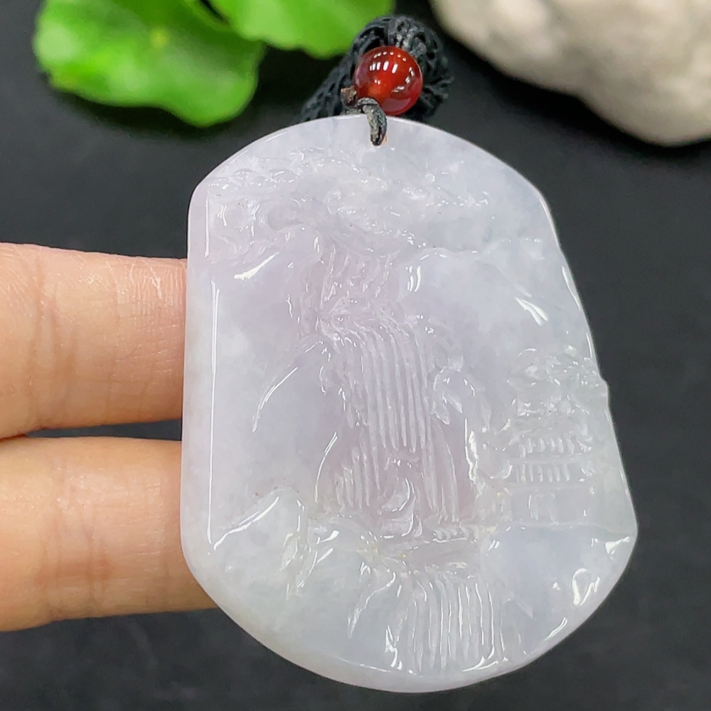 Jadeite Pendant Landscape with Cord Total Weight Approx. 29.85g