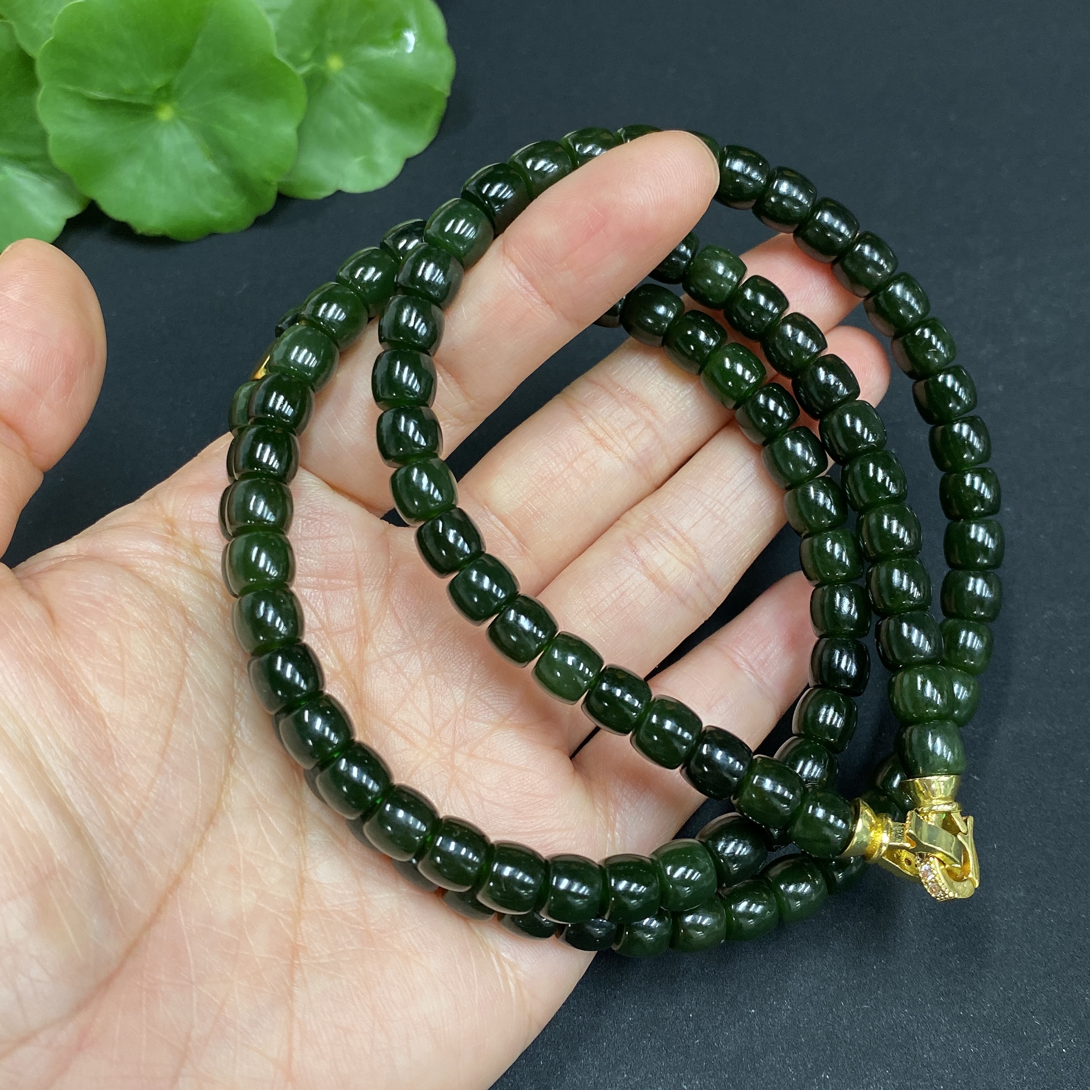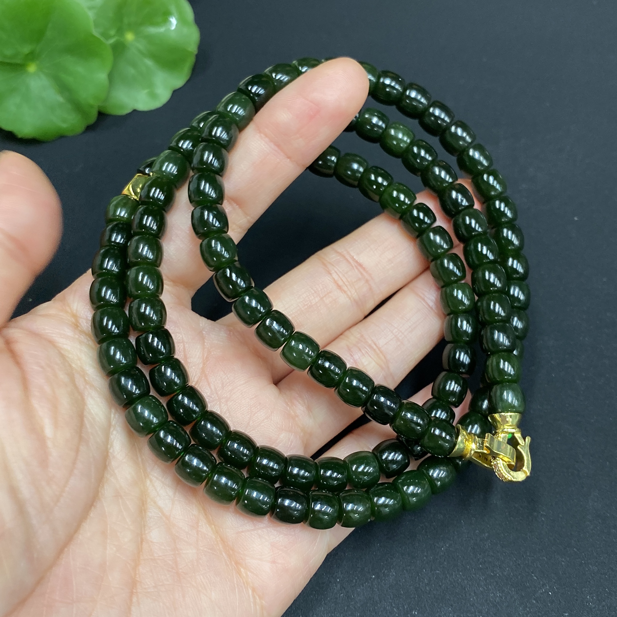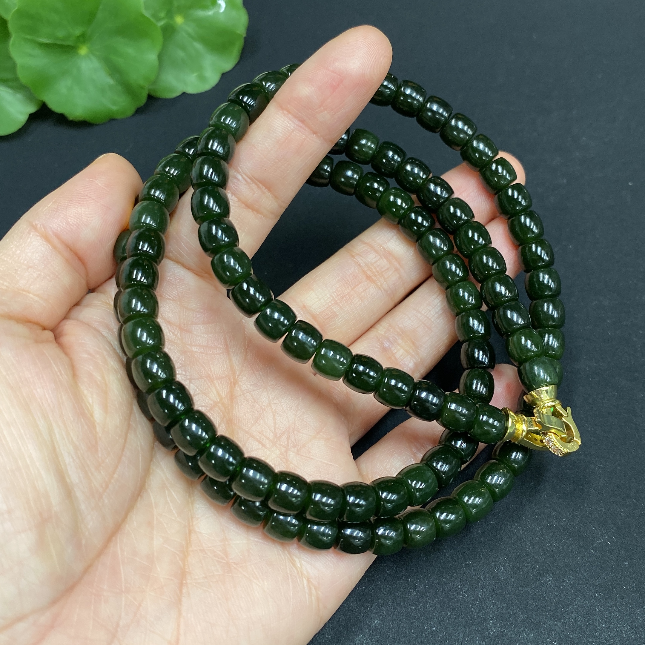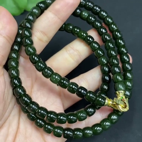 Hetian Jade Bead Necklace Approx. 6.6mm Non-gold Inlaid Total Weight Approx. 62.3g