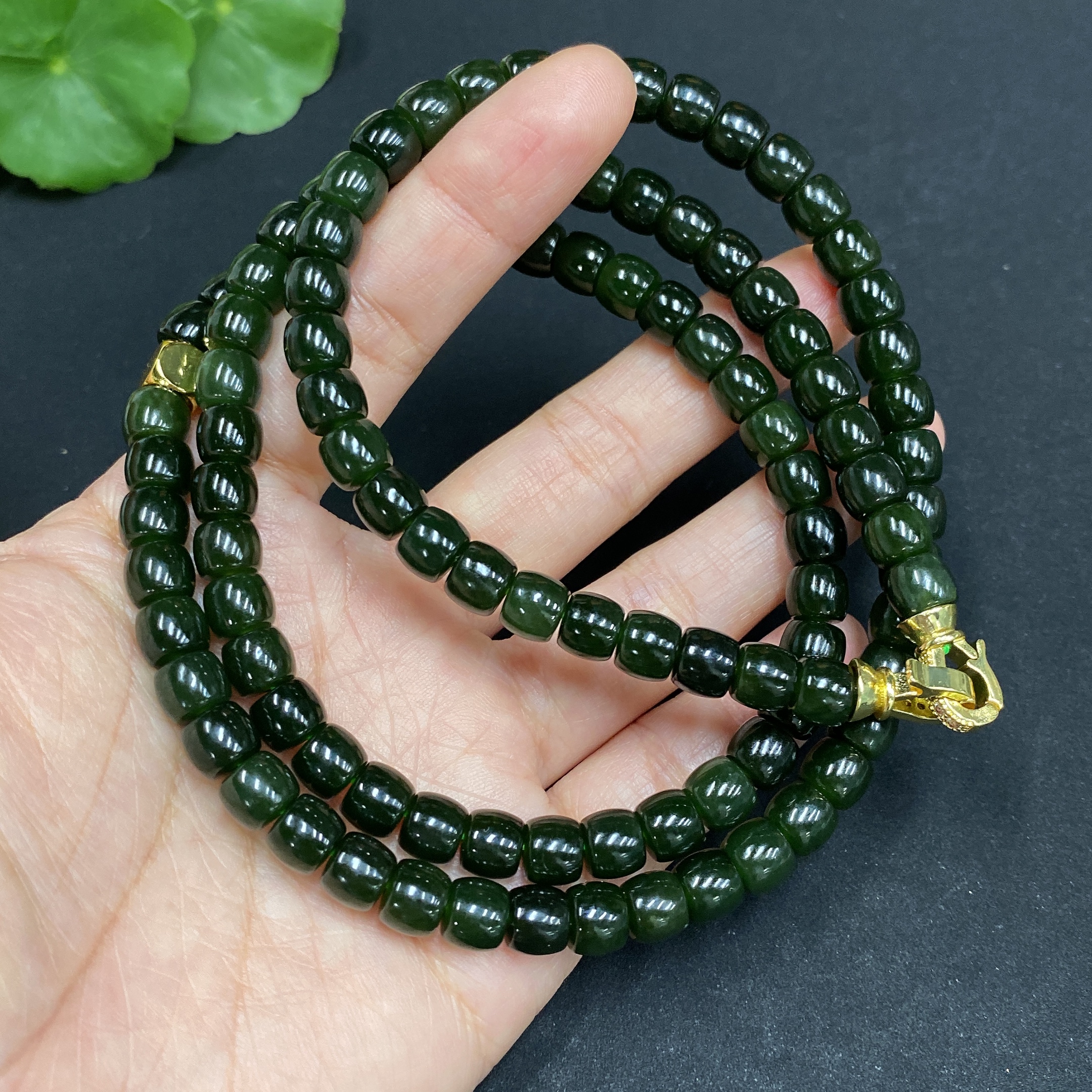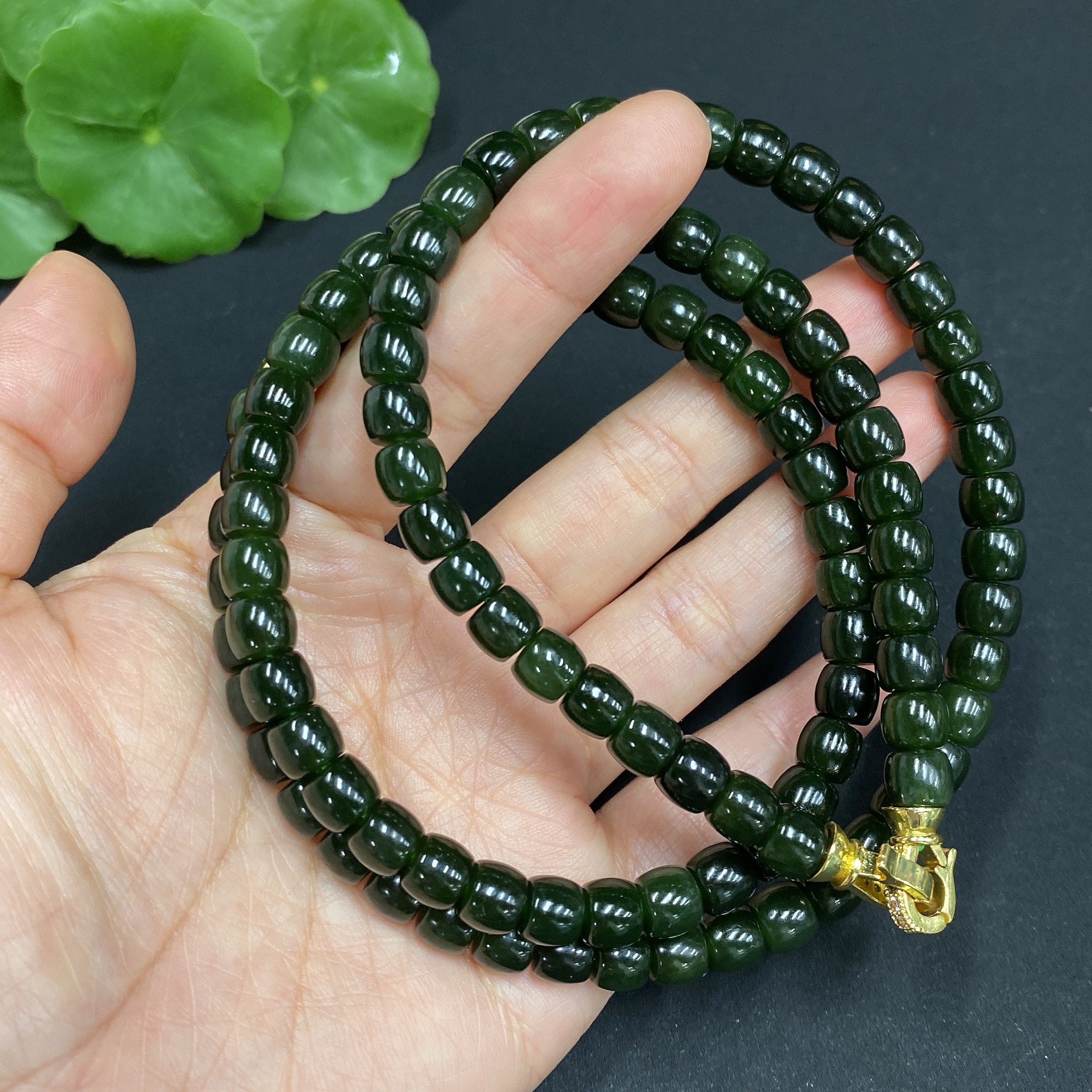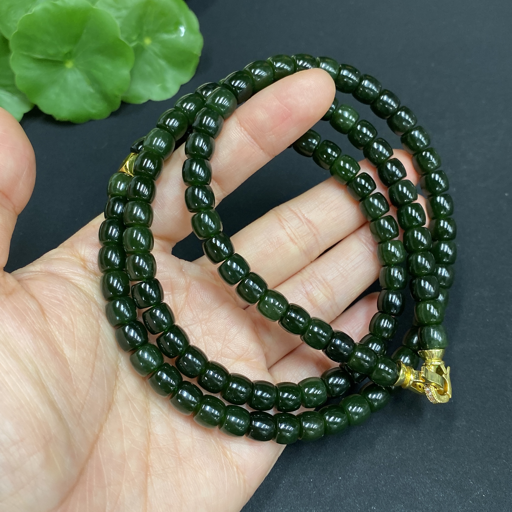 Hetian Jade Bead Necklace Approx. 6.6mm Non-gold Inlaid Total Weight Approx. 62.3g