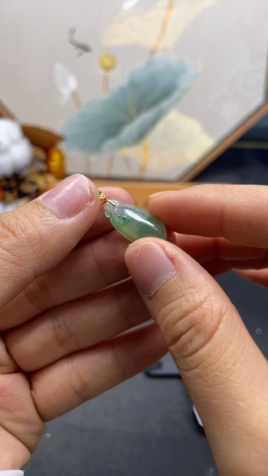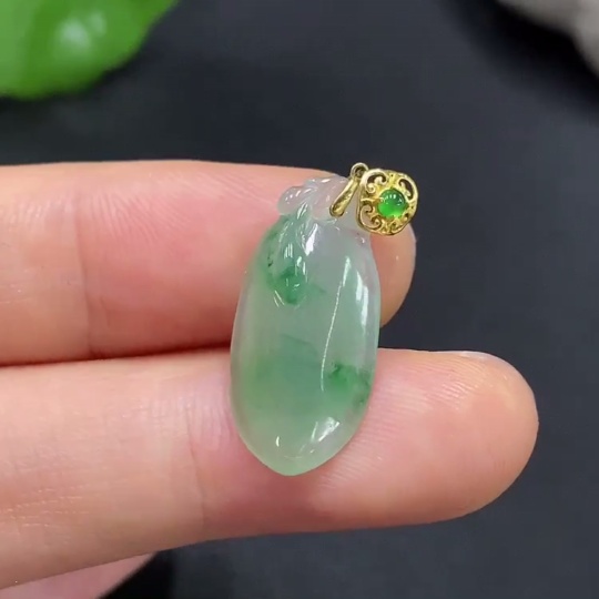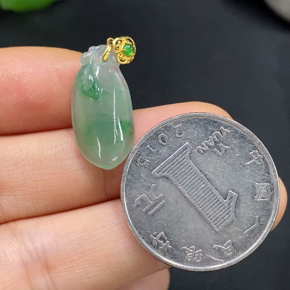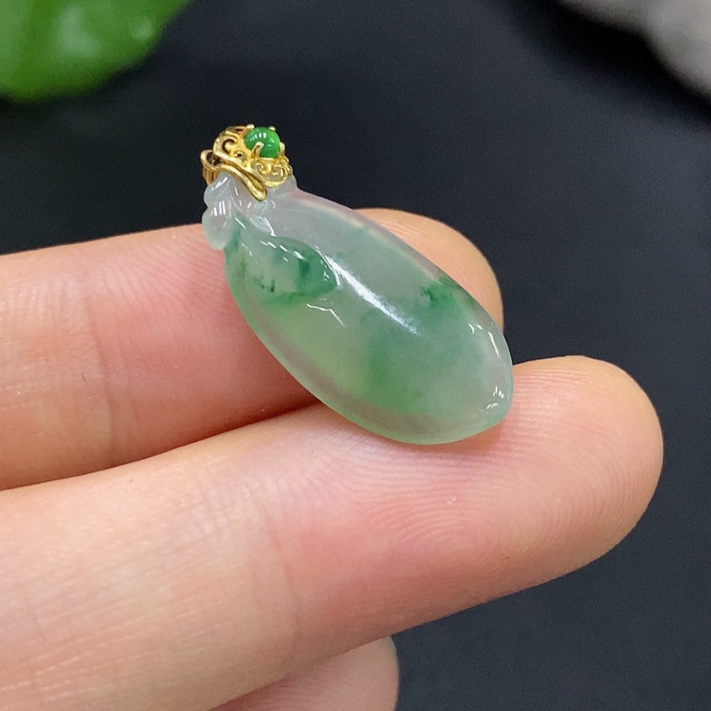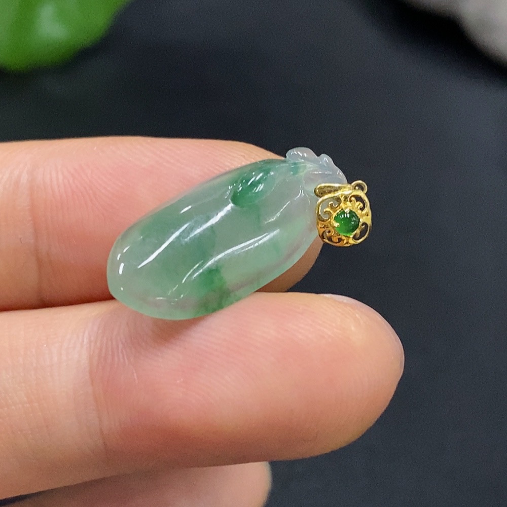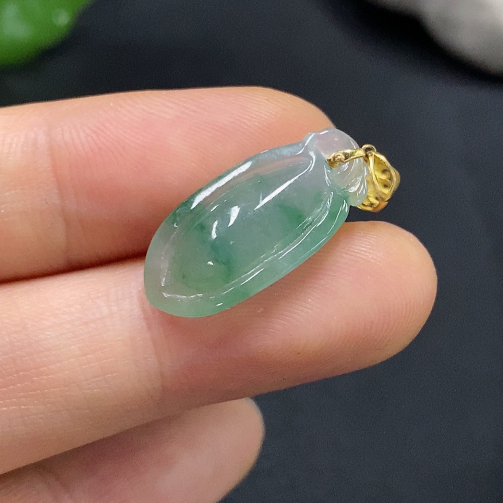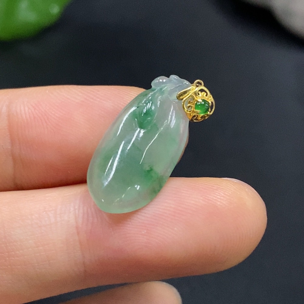 Jadeite Auspicious Gourd Pendant 18k Total Weight Approx. 1.57g