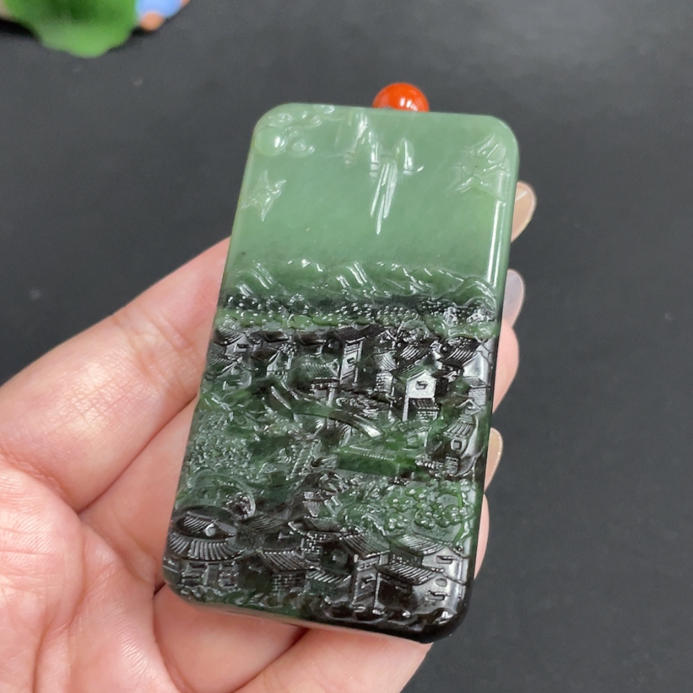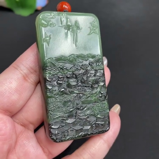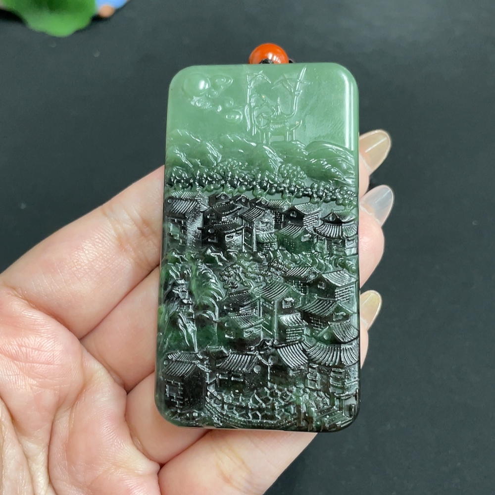 Hetian Jade Pendant Landscape Total Weight Approx. [with rope] 83.7g