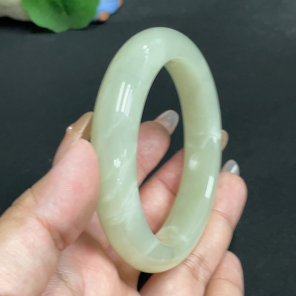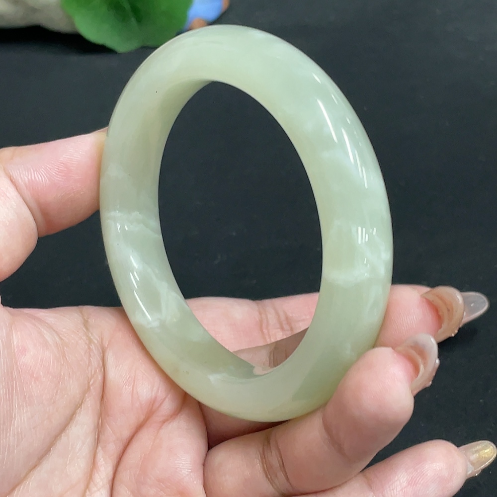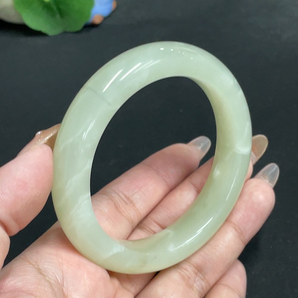 Hetian Jade Round Bracelet, Size 56.9, Total Weight Approx. 66g
