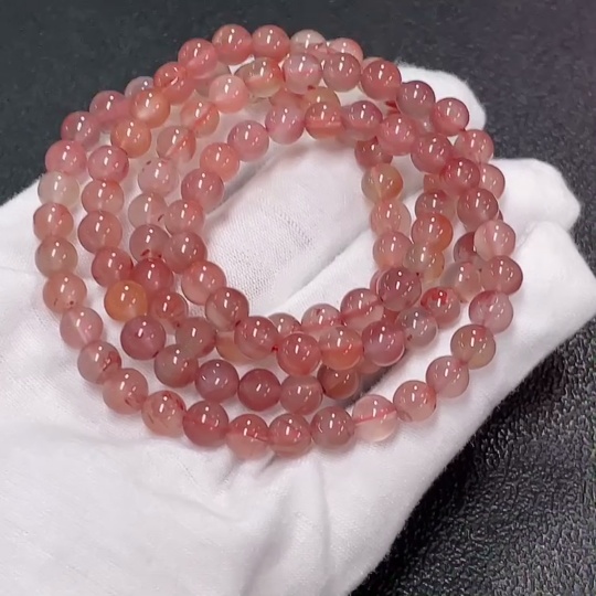 South Red Agate Bead Strand with Visible Organic Matter, Total Weight Approx. 34.24g, Size About 6mm
