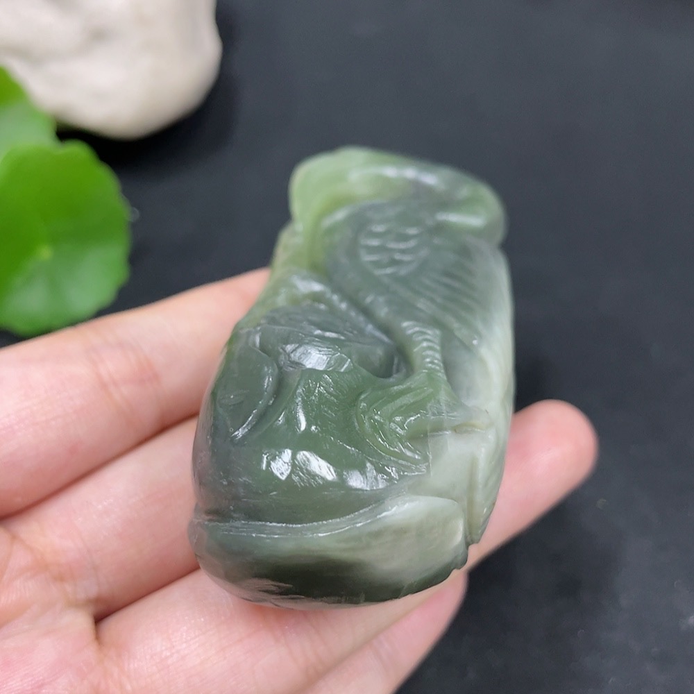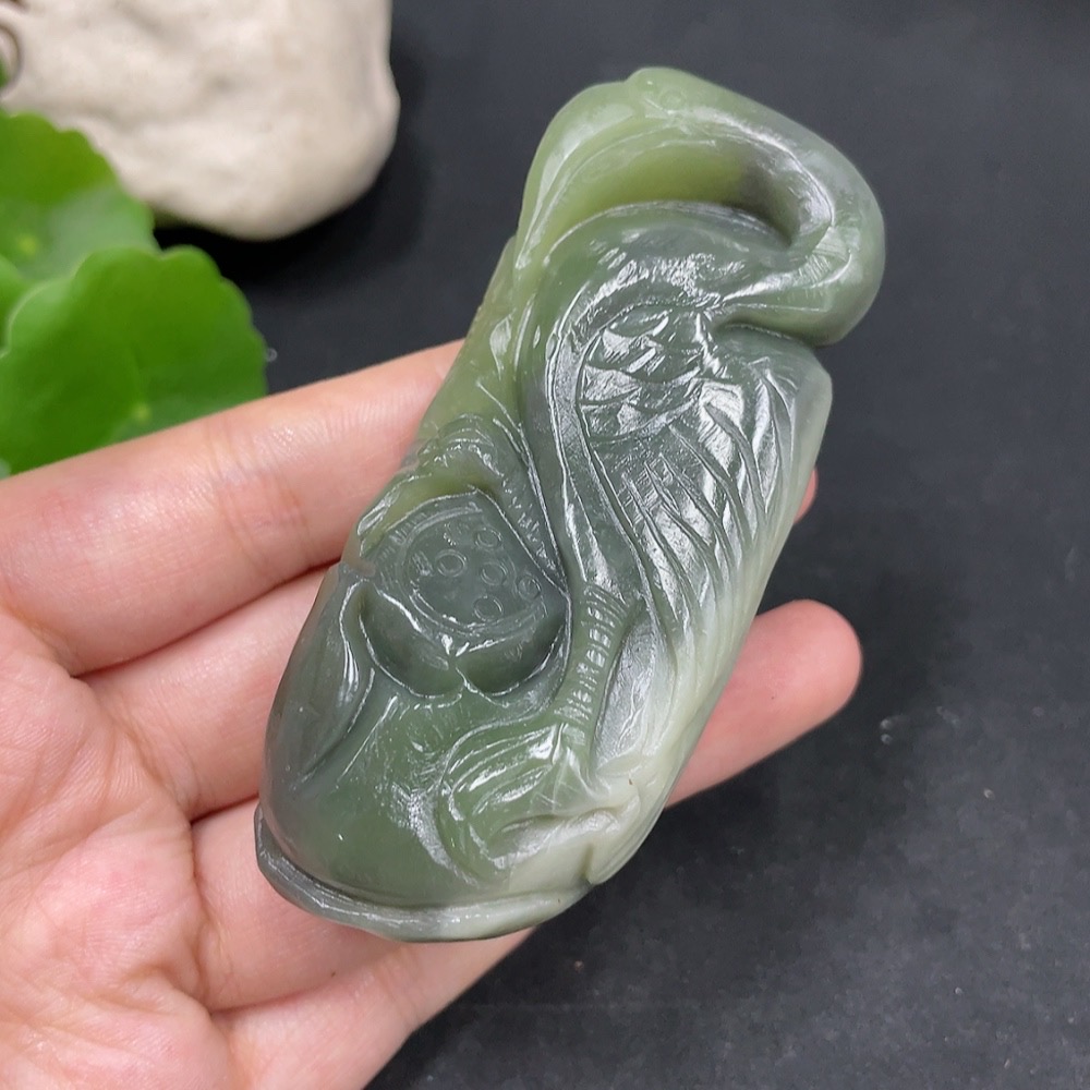 Hetian Jade Handheld Carving - Crane, Total Weight: Approx. 107.9g