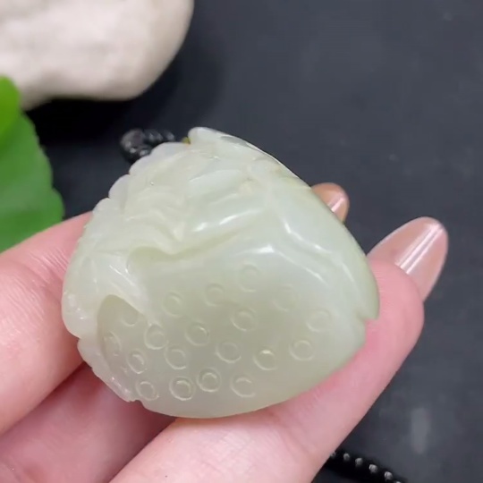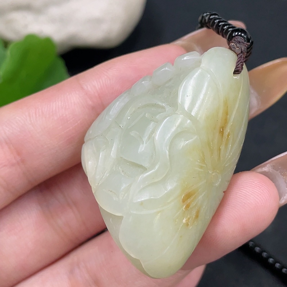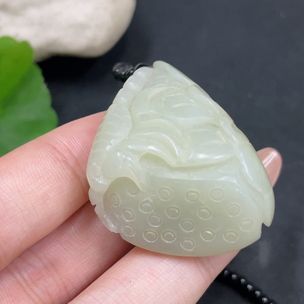 Hetian Jade Pendant Lotus Pod with Undetermined Skin Color Origin, Non-Hetian Jade Chain Included, Total Weight Approx. 46.3g (Including Chain)