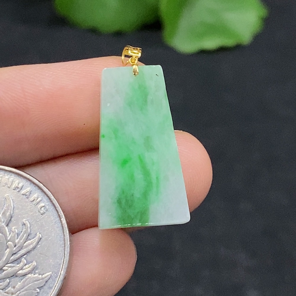 Jadeite Plain Pendant 18K Gold Total Weight Approx. 1.75g