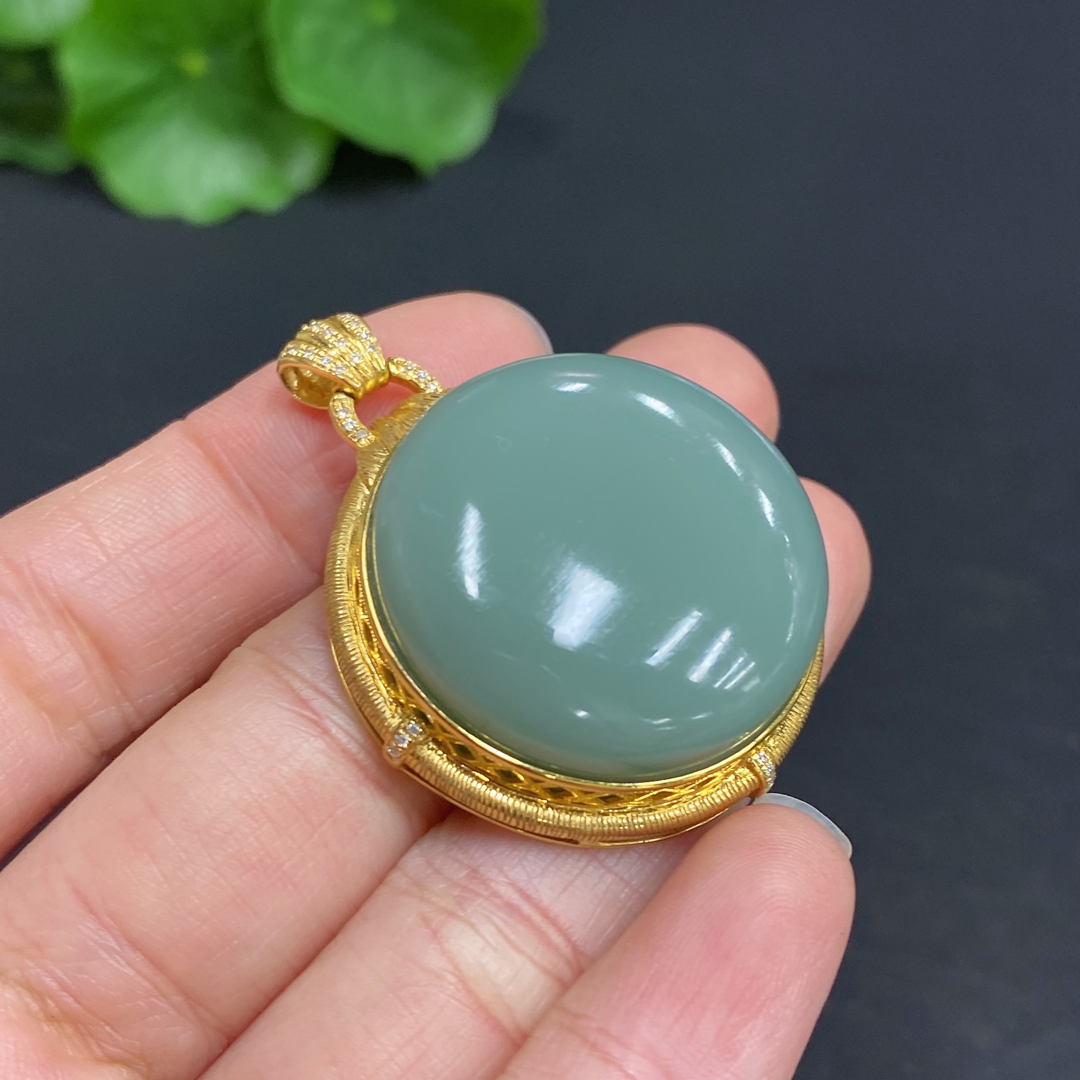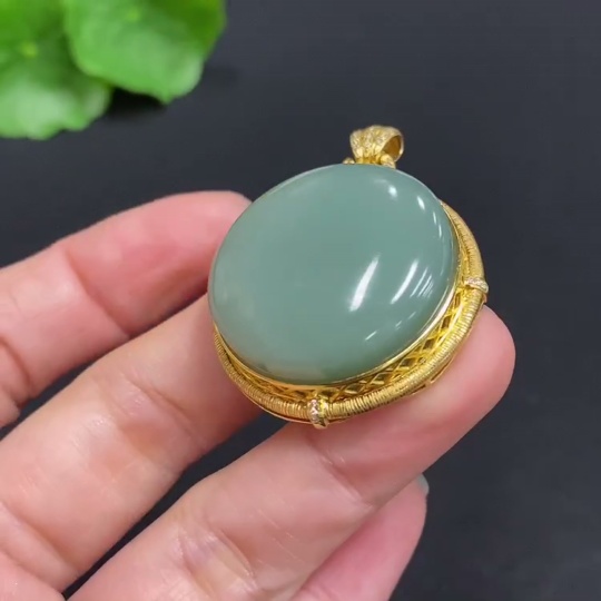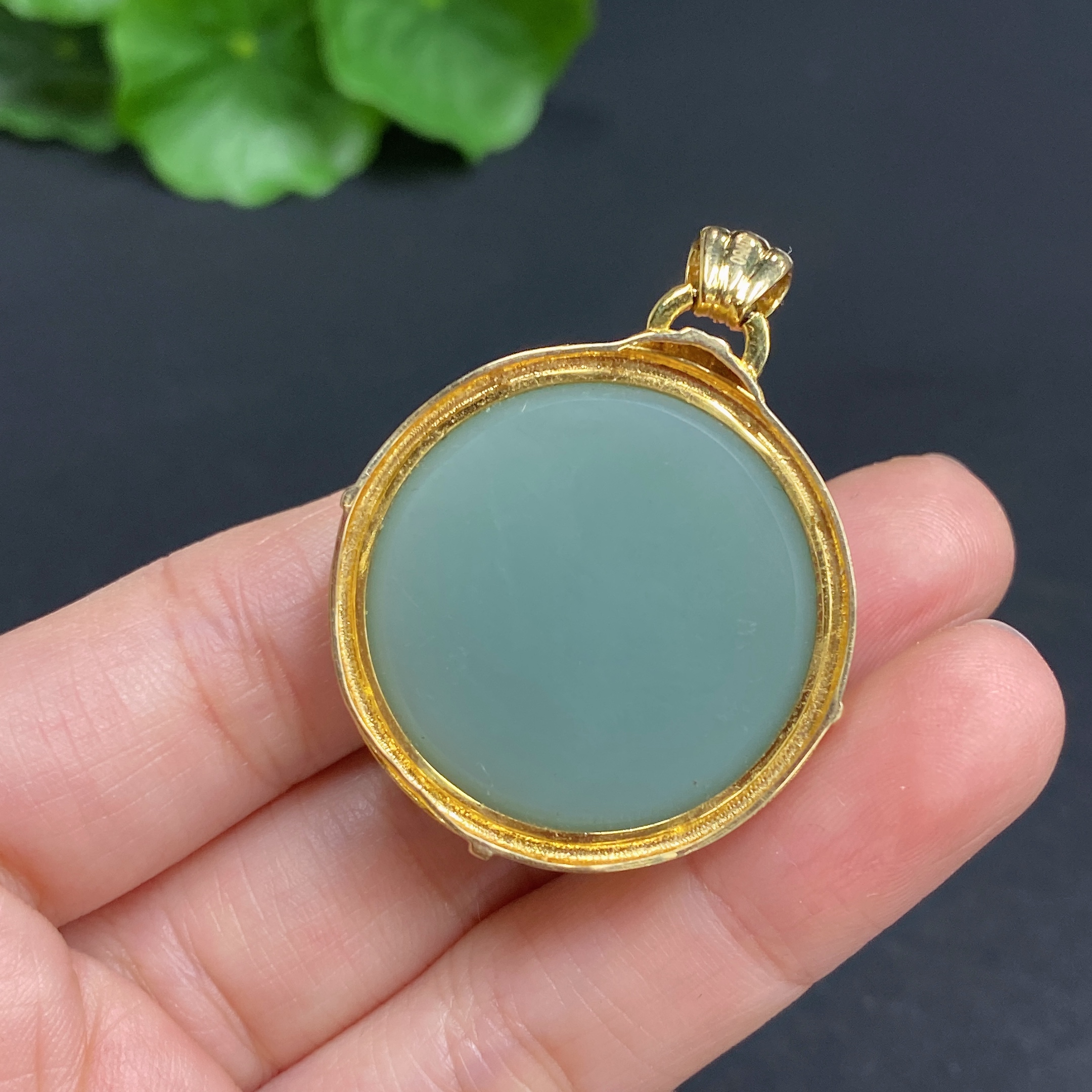 Hetian Jade Inlaid Plain Pendant 18k Gold Total Weight Approx.18.2g